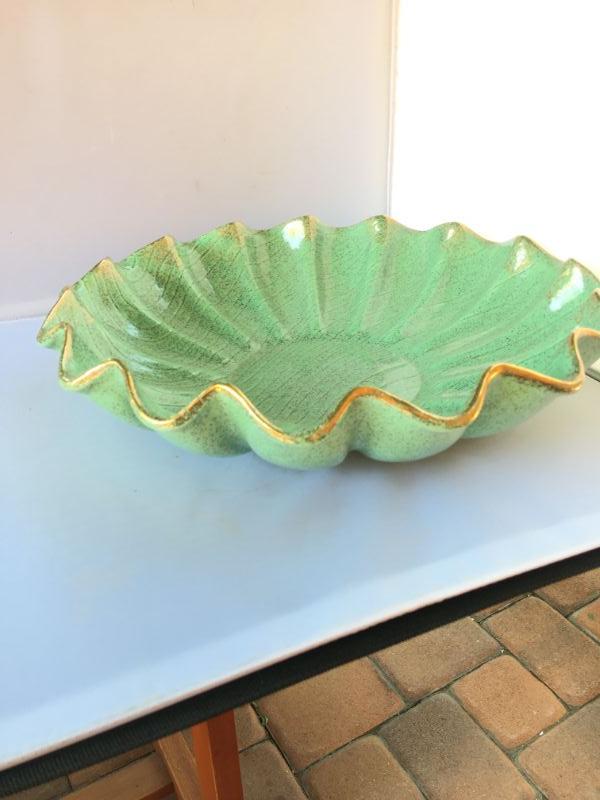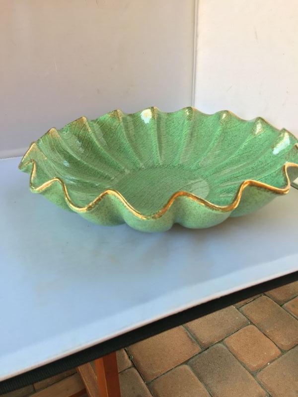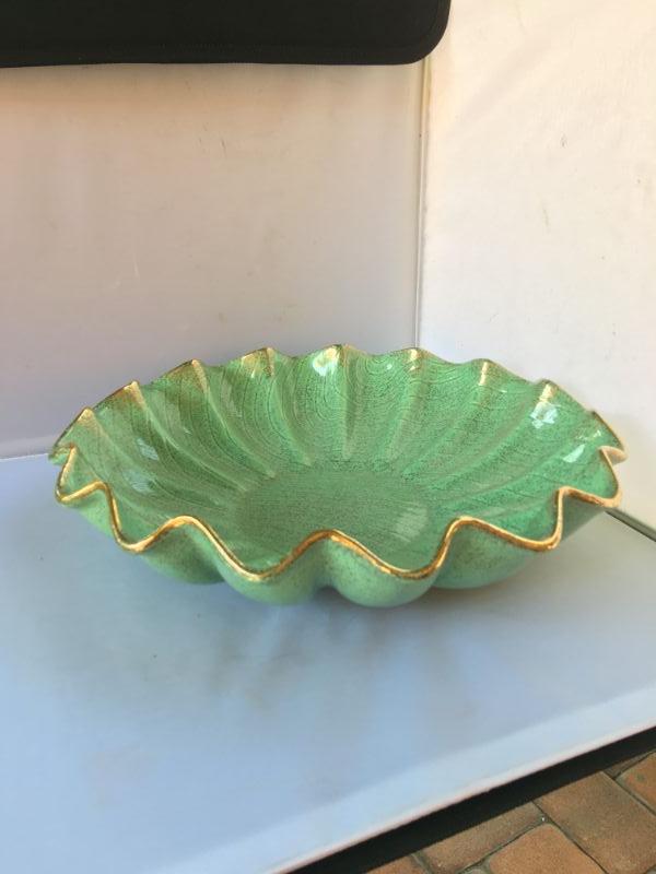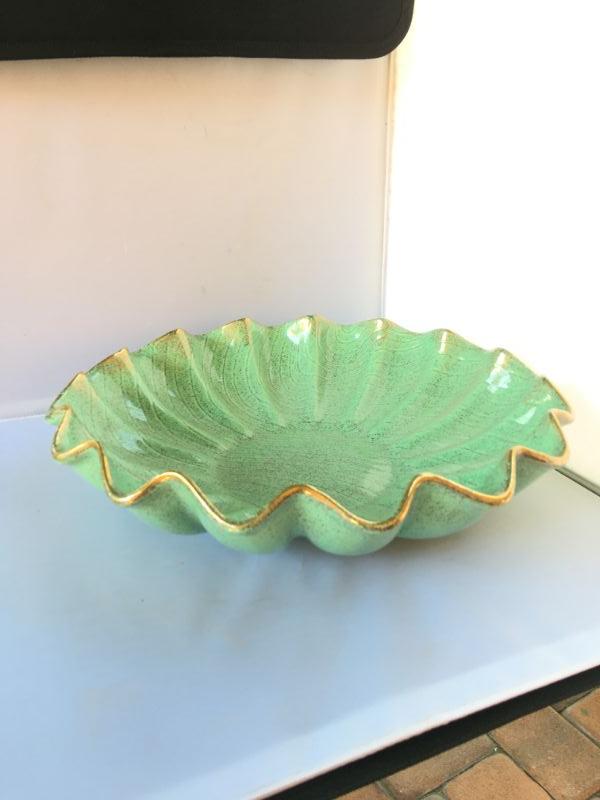 Vintage Large Ruffled Ceramic Bowl with Gilded Edges