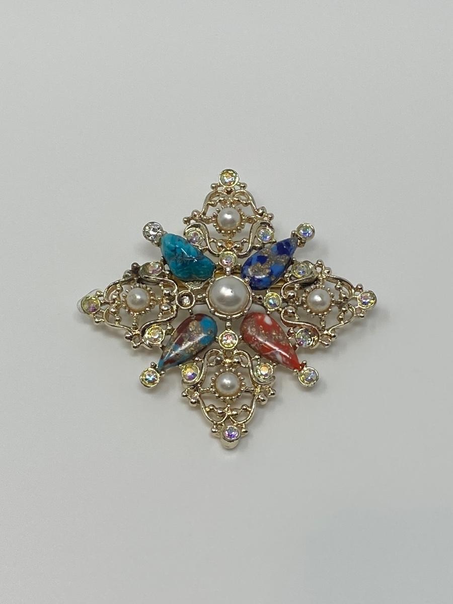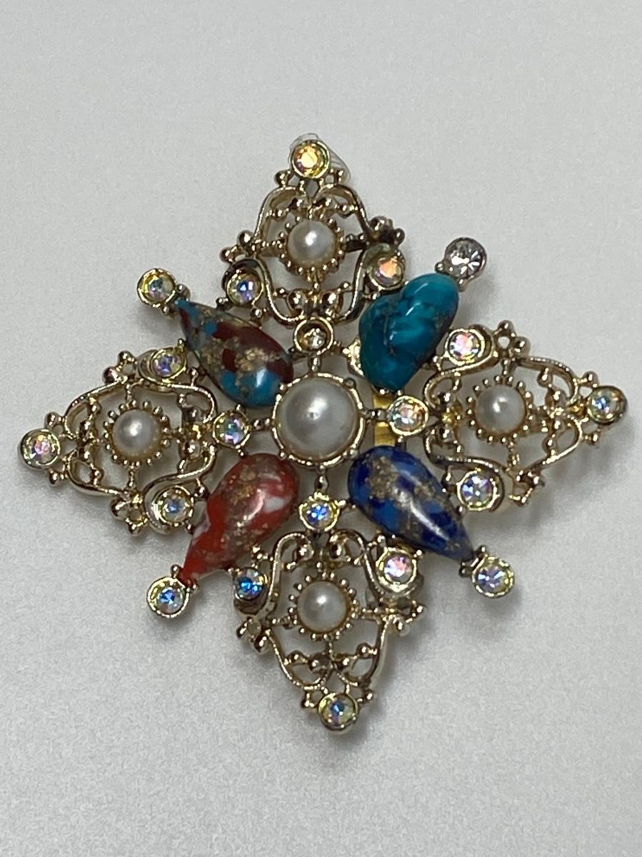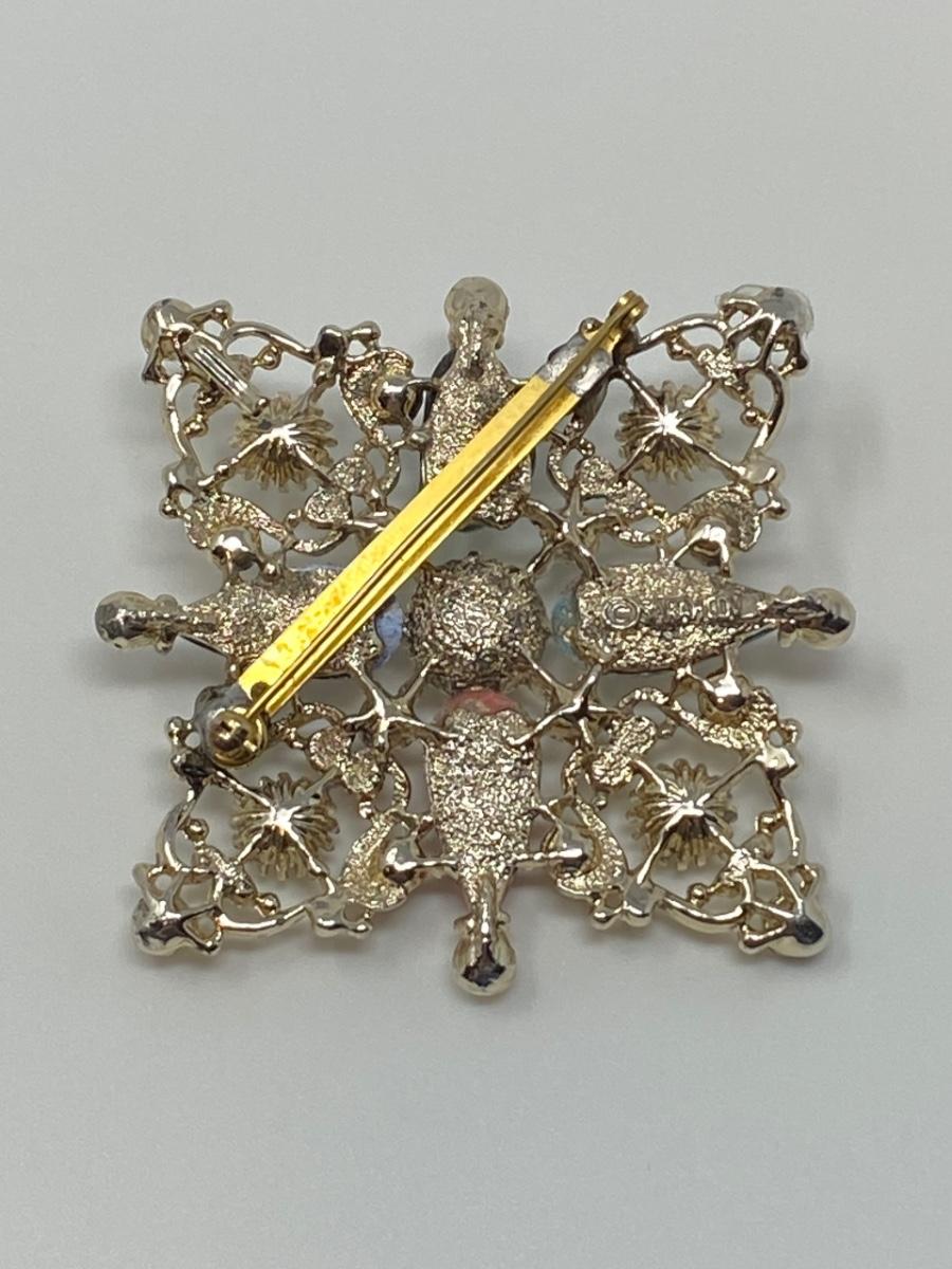 Vintage Large 1970s Sarah Coventry Galaxy Pin/Brooch with Multicolor Confetti Pearl Rhinestone Maltese Cross. Marked/Signed Sarah Cov. 2" L x 2" H