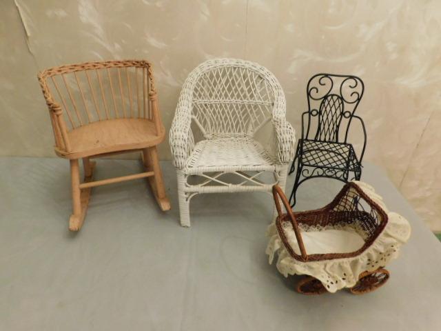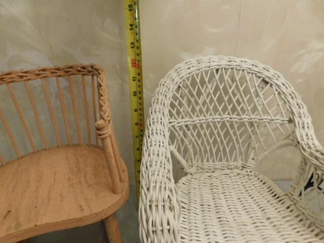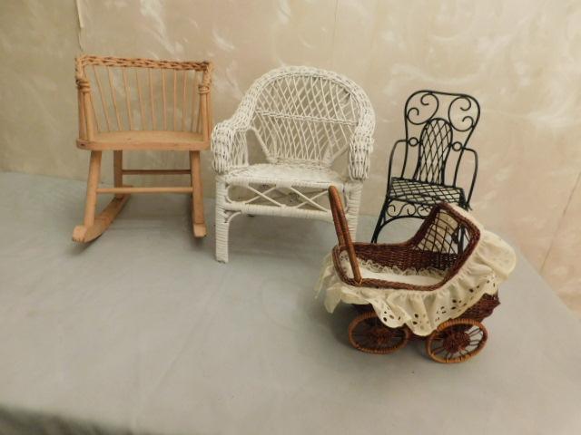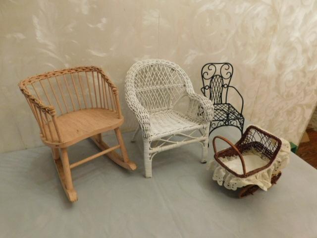 Vintage Large Scale Wicker and Wrought Iron Doll Furniture 12" avg.