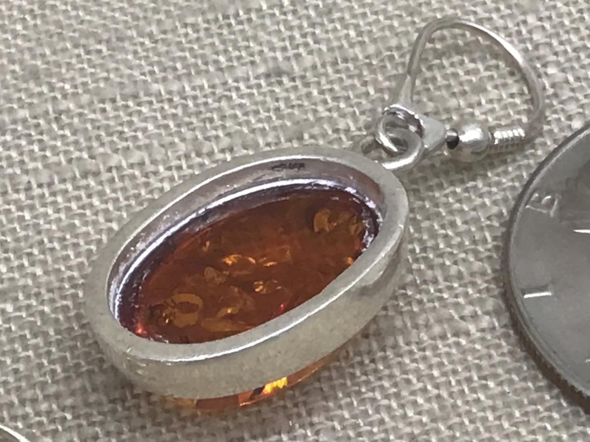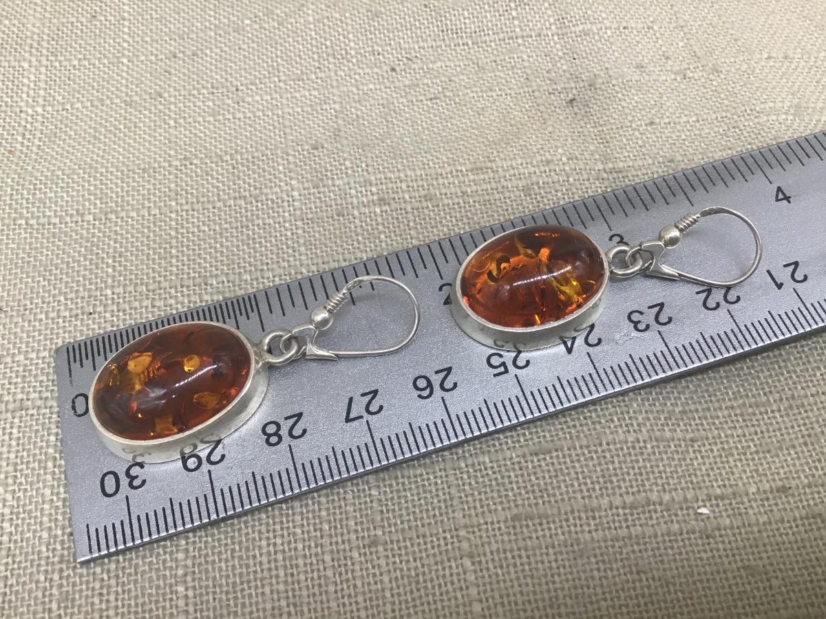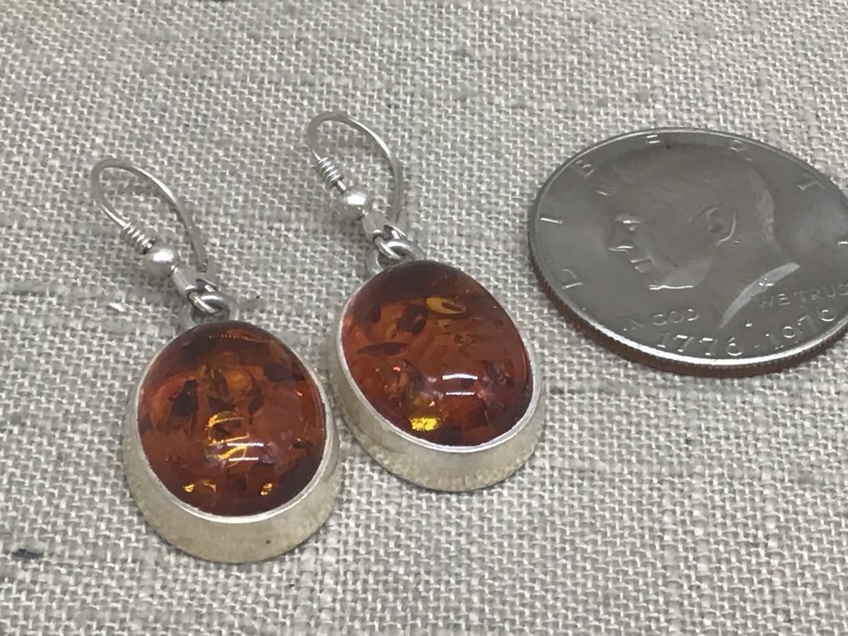 VINTAGE Large STERLING SILVER LARGE AMBER DROP EARINGS-