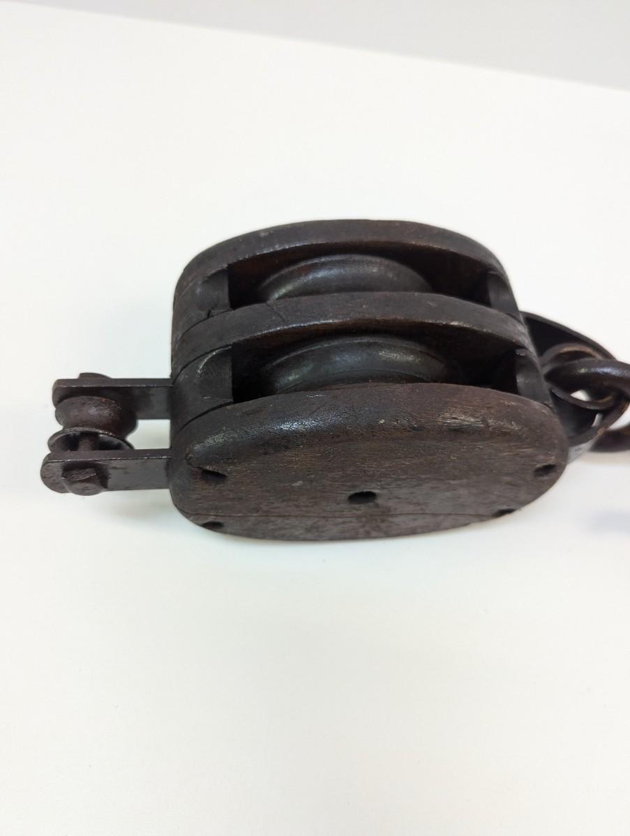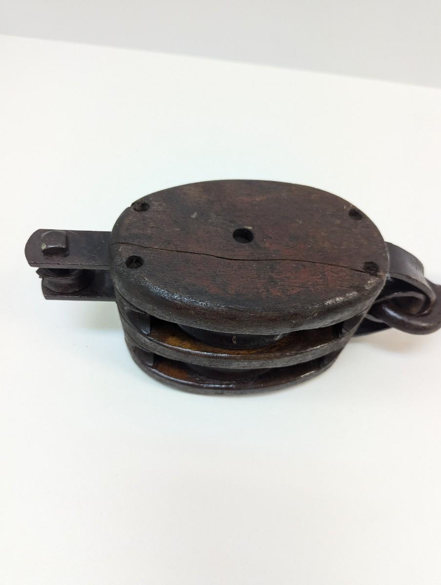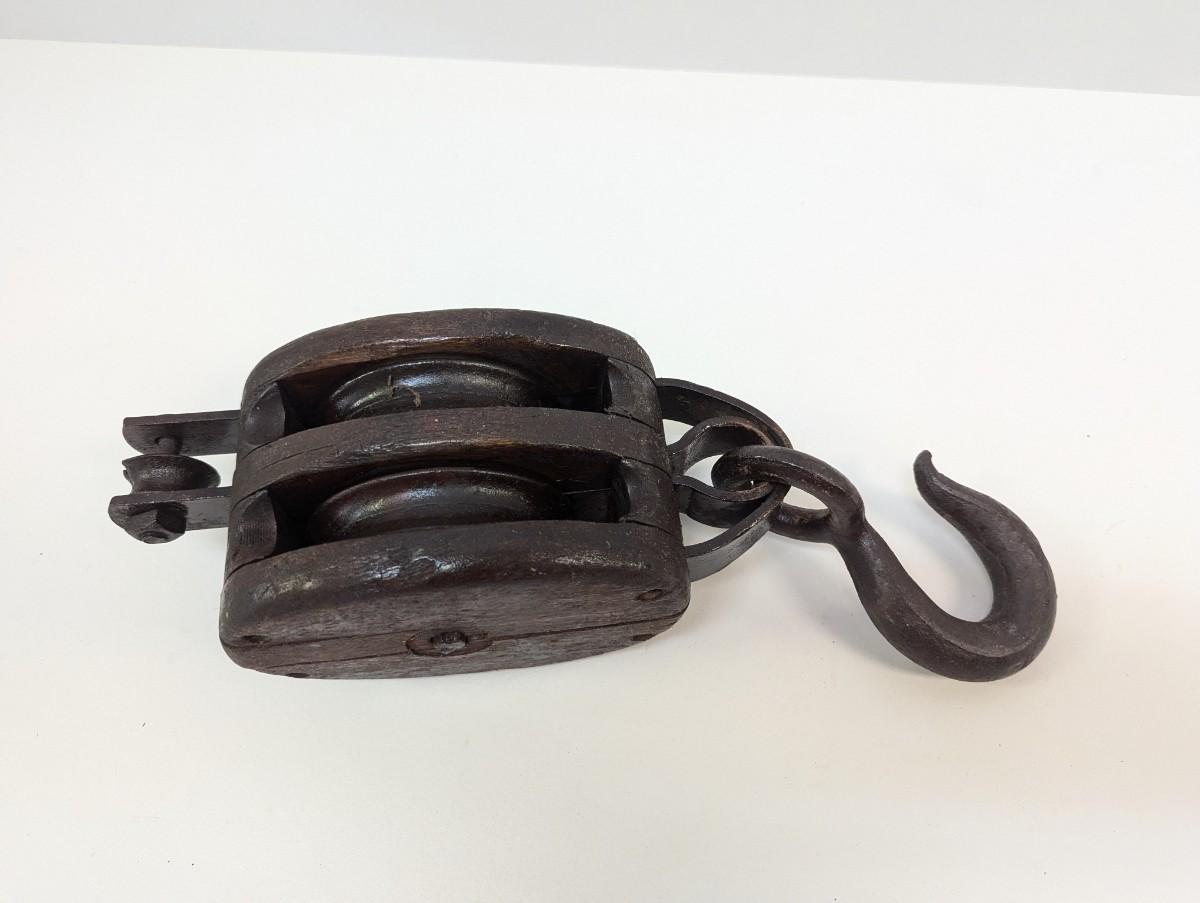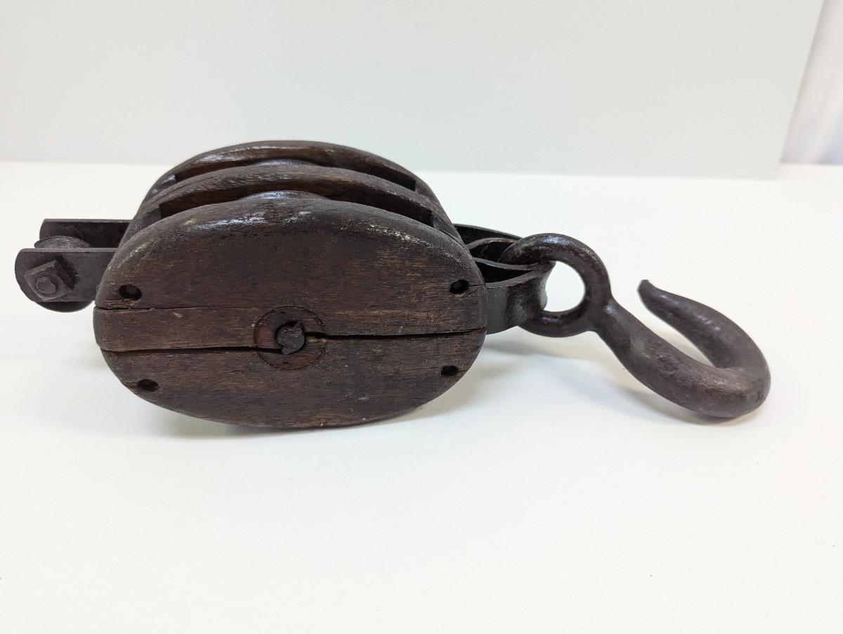 Vintage Large Wood Block & Tackle Pulley With Hook