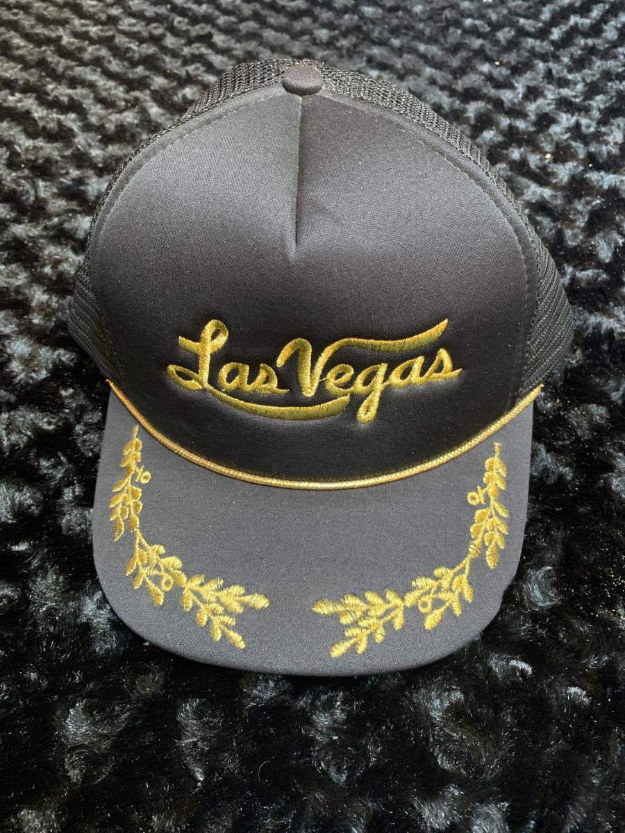 Vintage Las Vegas Nevada Tourist Black Gold Leaf & Lettering Hat Cap Snapback