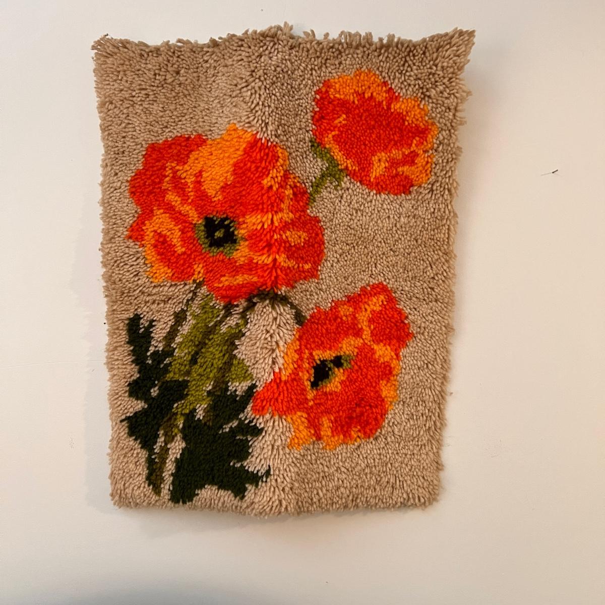 20”x25” latch hook shag rug, wall hanging.