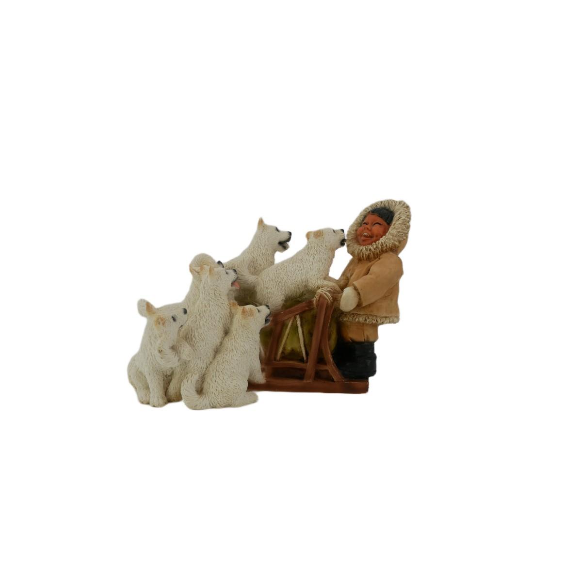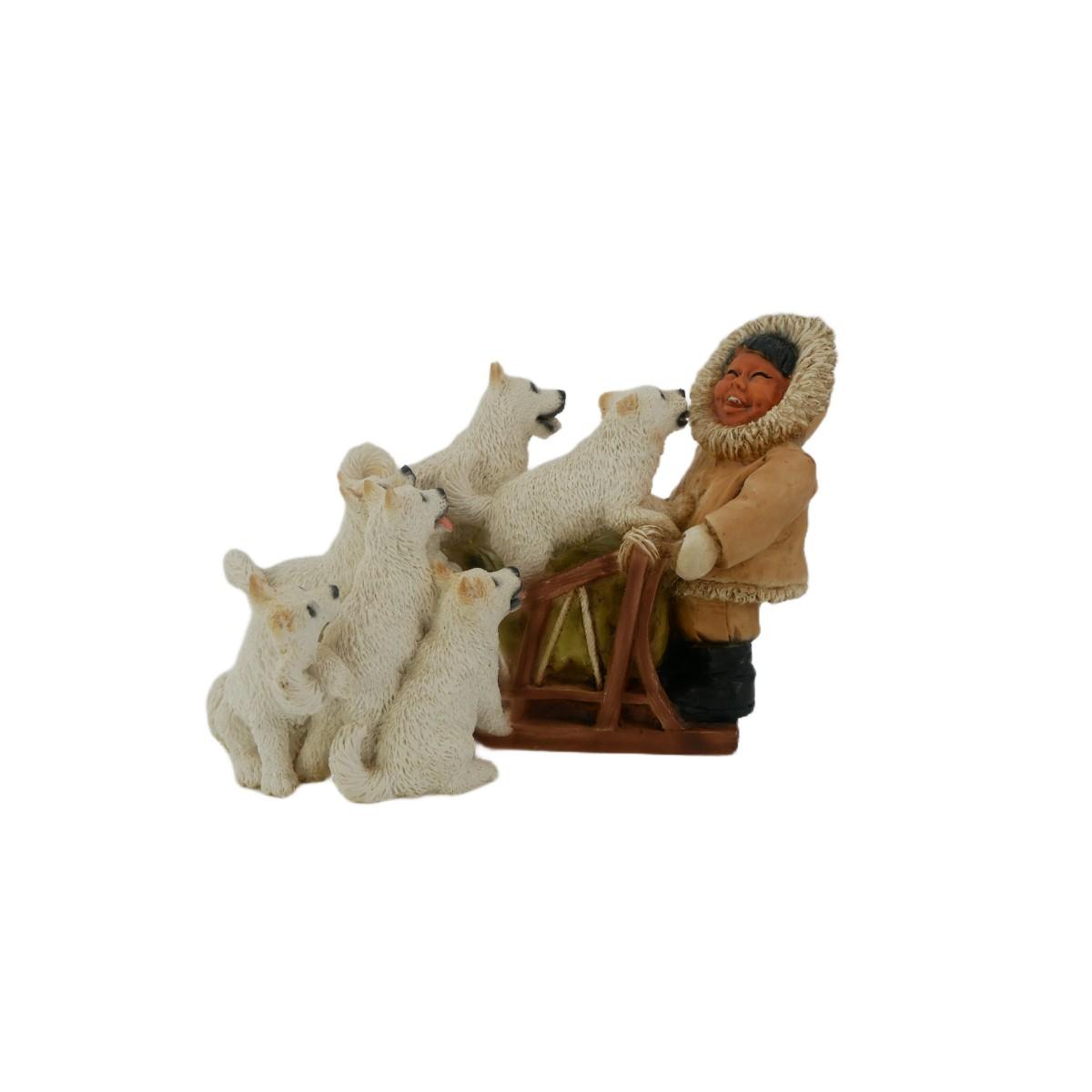 Vintage 1995 laughing eskimo with dogs figurine by Castagna. Made in Italy and signed "Castagna 1995". No issues found, excellent condition! Measures L 6.25" x H 4.25" x W 3". Weighs 1lb 5 oz. (C78)