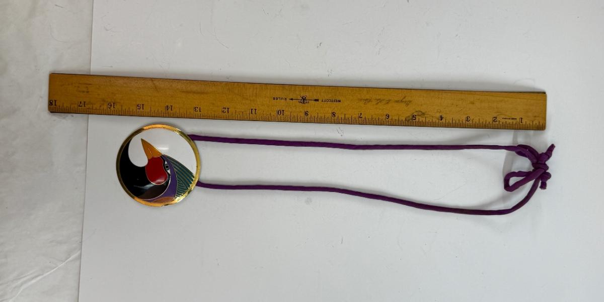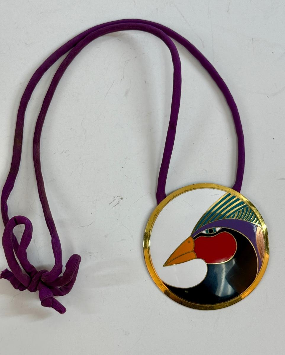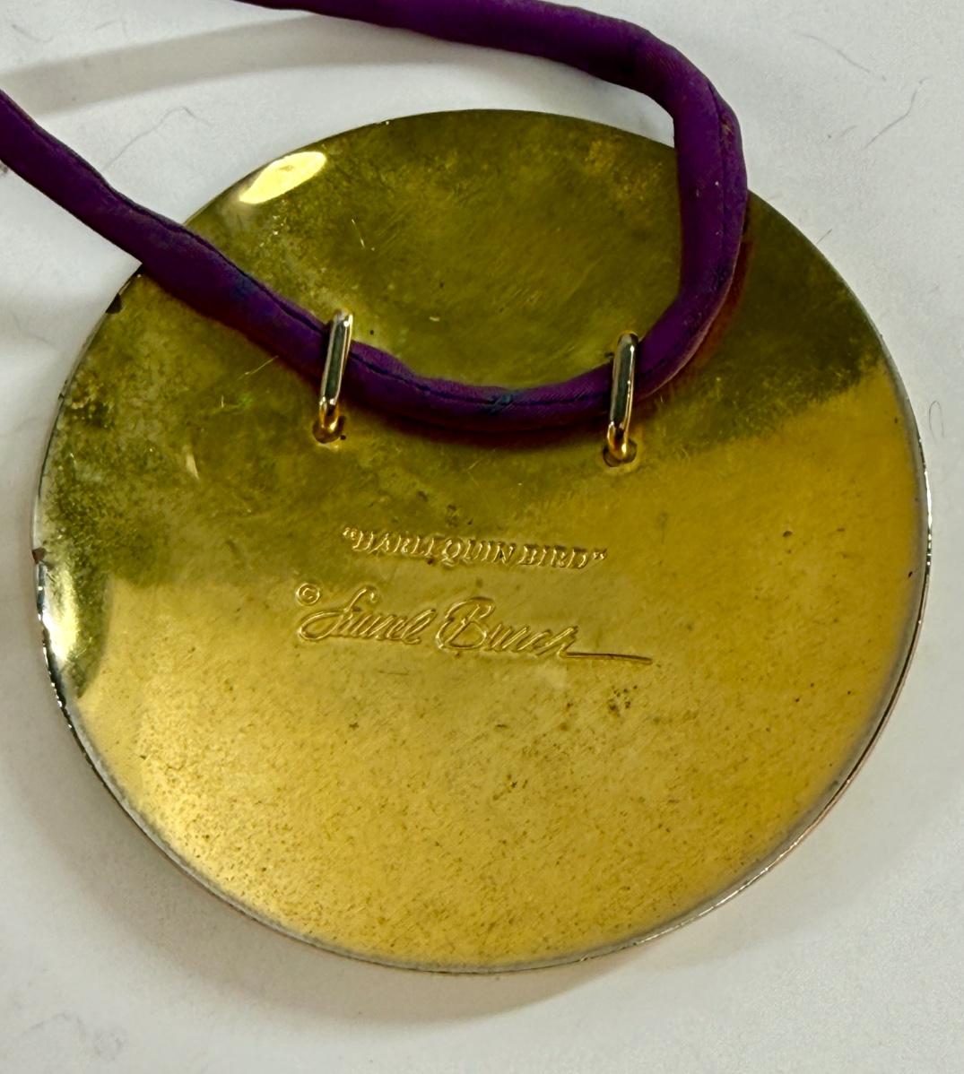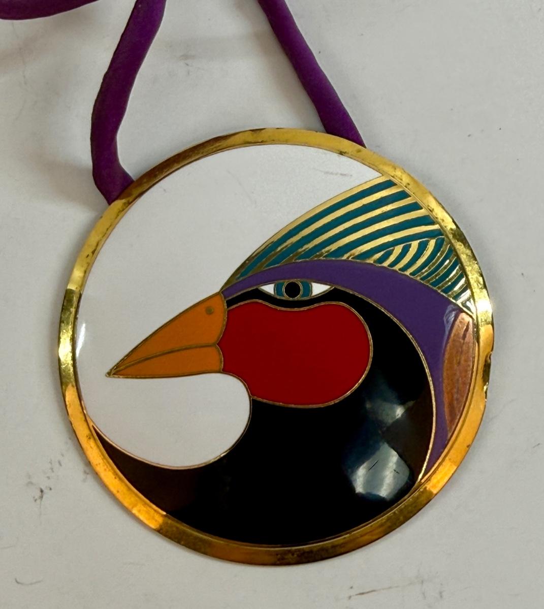 Vintage Laurel Burch Harlequin Bird Large Pendant Necklace