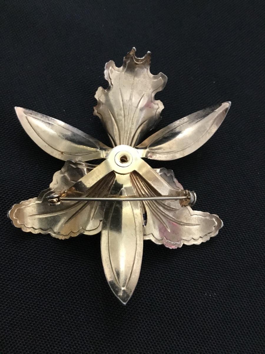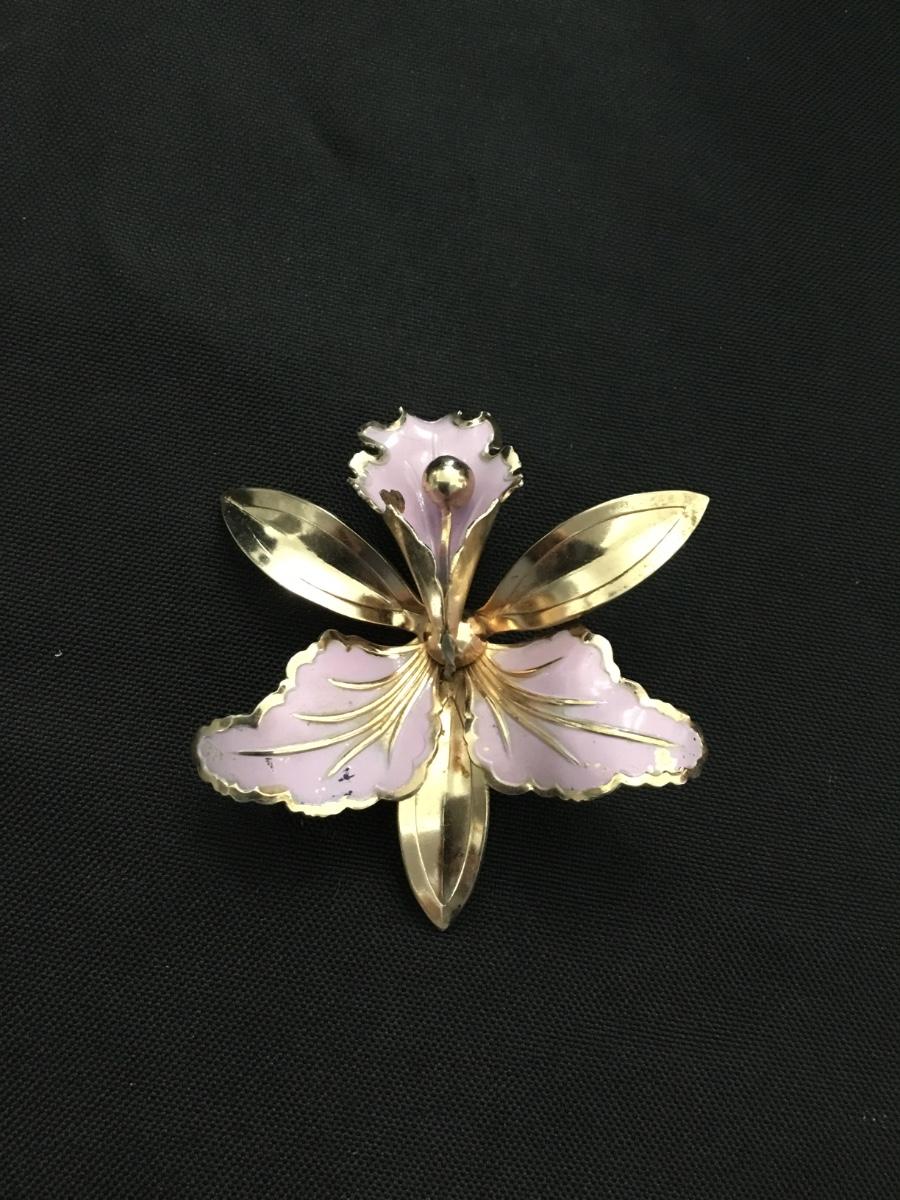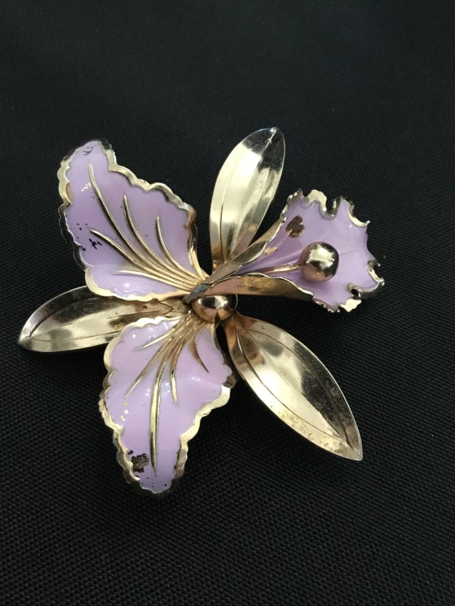 Vintage, Lavender enamel and gold, orchid, brooch