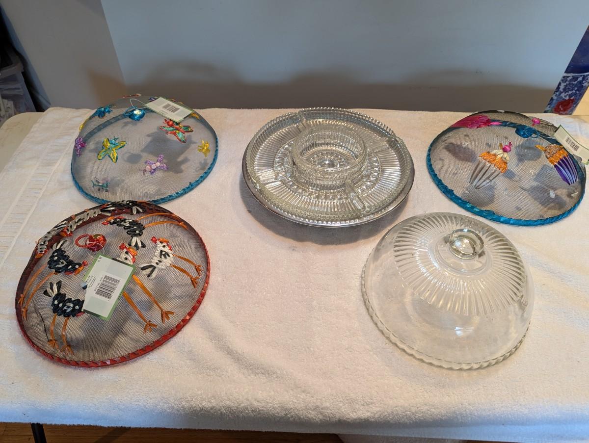 Vintage Lazy Susan Party Platter & Mesh Food Covers
