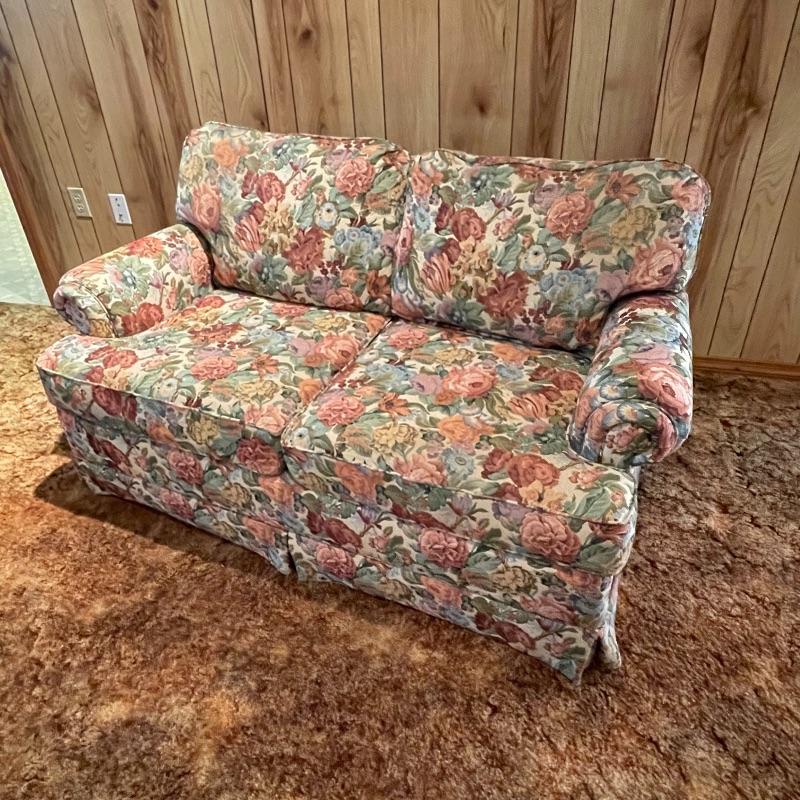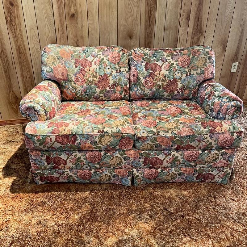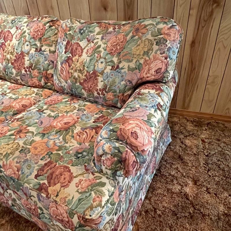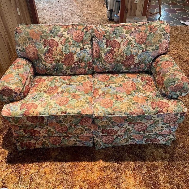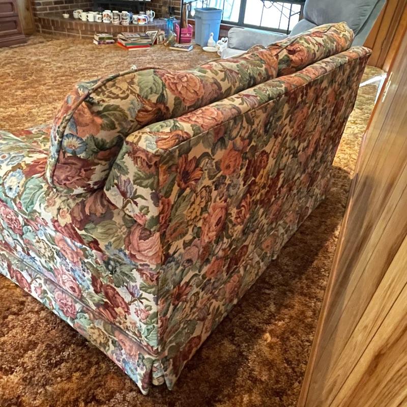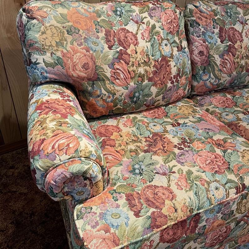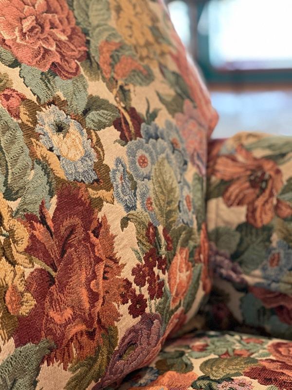 Perfect reupholster project or How about a nice Slipcover. "Perfect Bones" Floral tapestry.