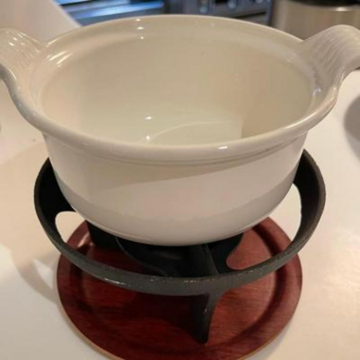 Vintage Le Creuset Mini Fondue Pot with Forks -Made in France