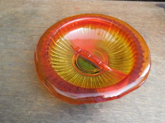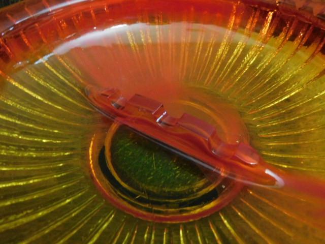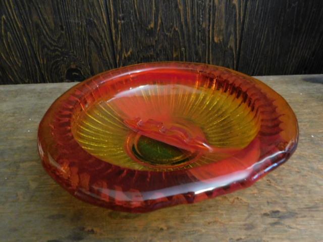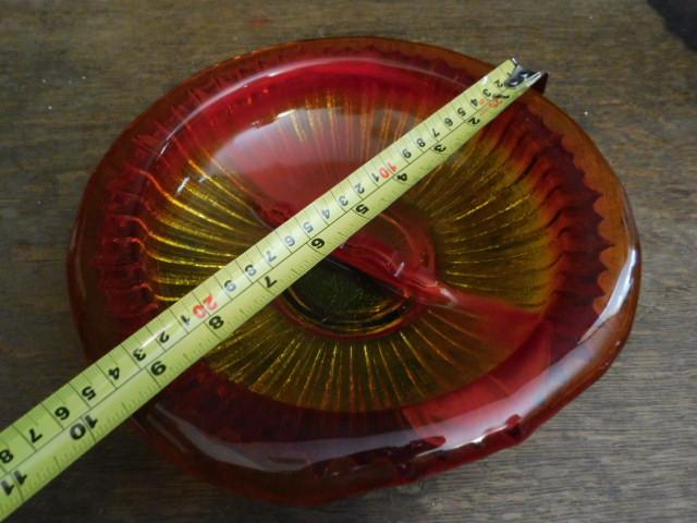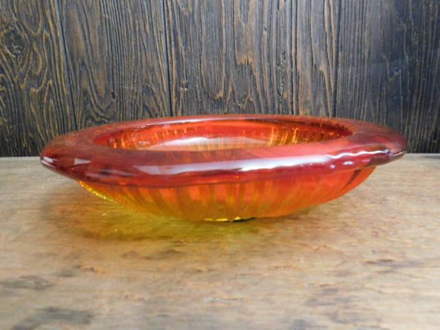 Vintage LE Smith (?) Amberina Large Glass Ashtray 9"