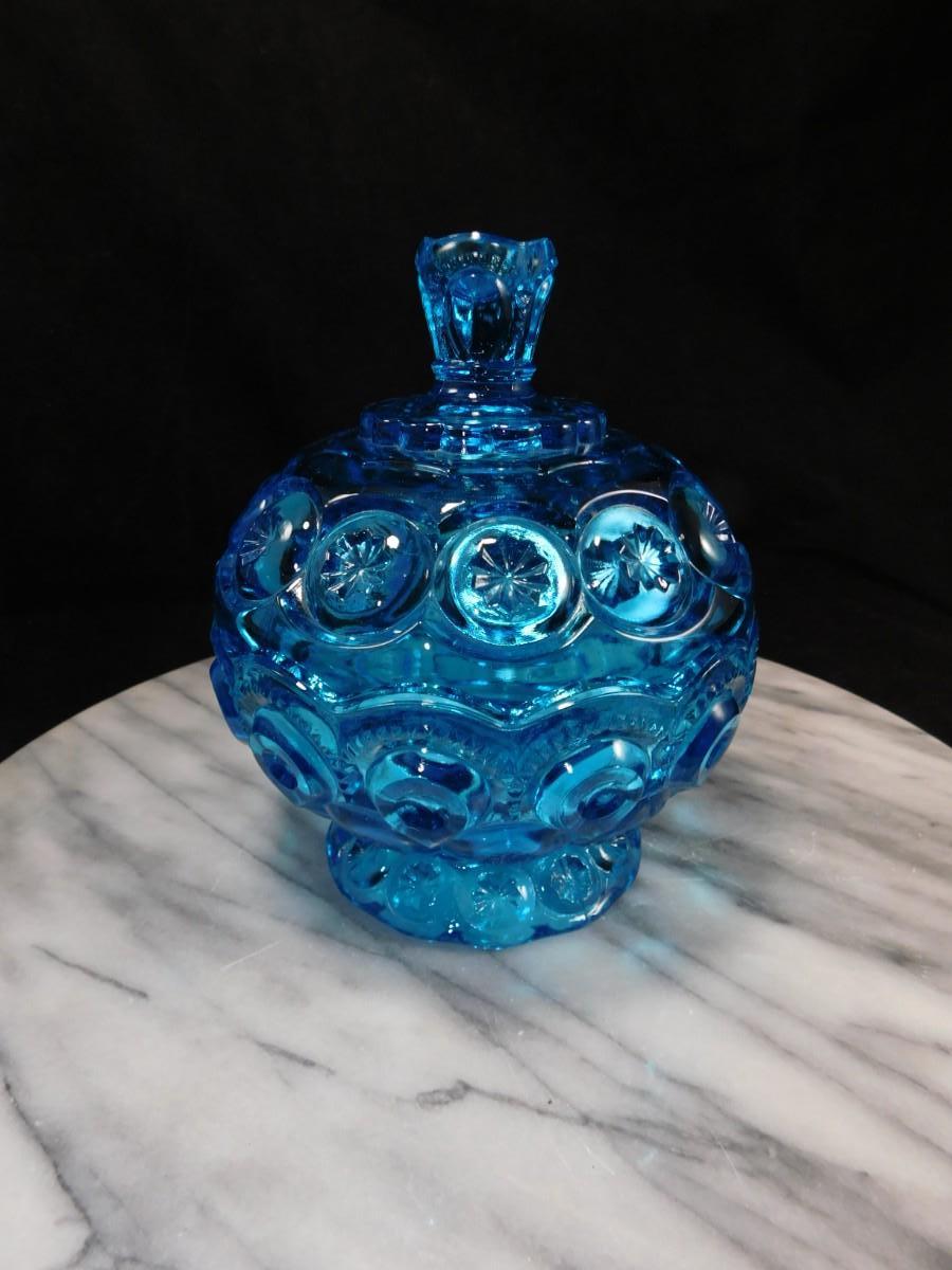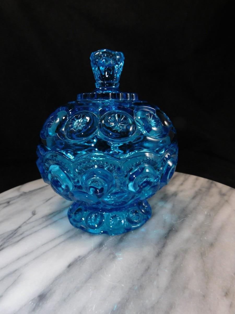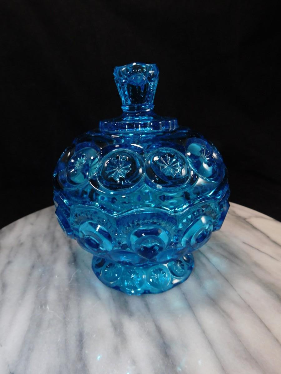 Vintage L.E. Smith Azure Moon & Stars Covered Candy Dish 5.75” Tall