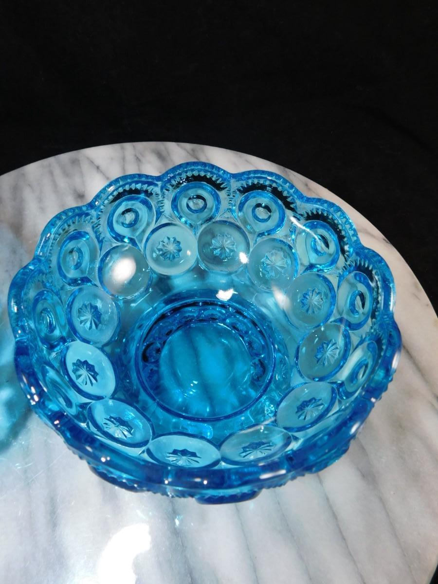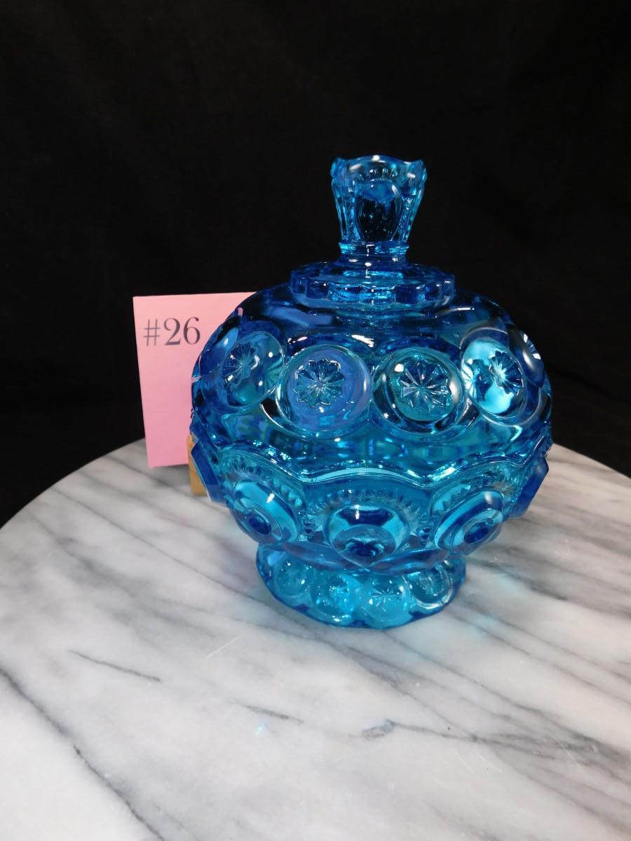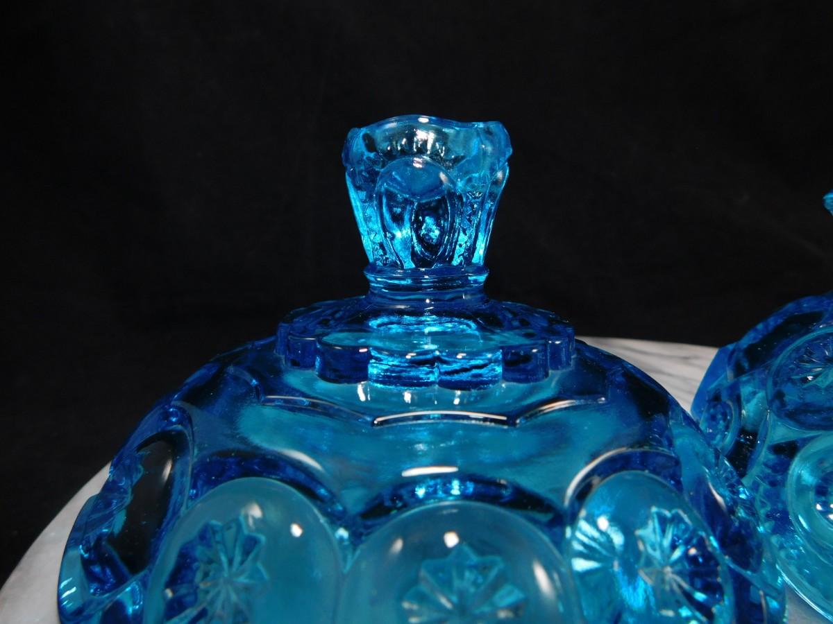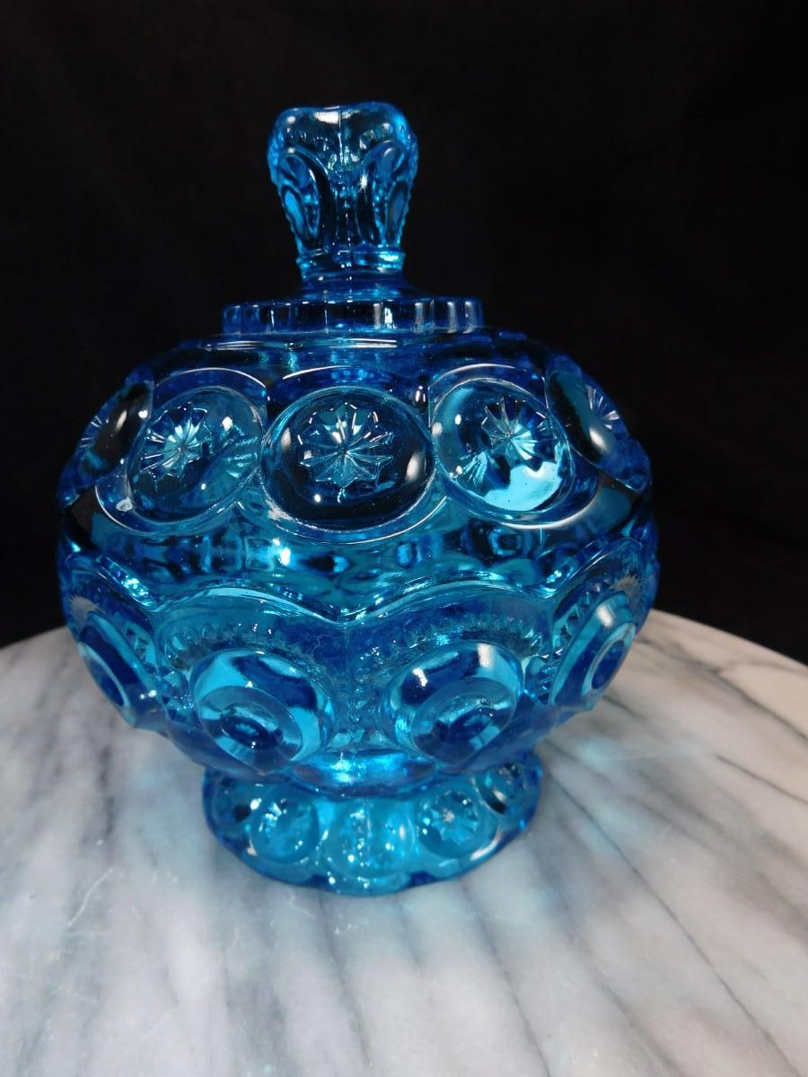 Vintage L.E. Smith Azure Moon & Stars Covered Candy Dish 5.75” Tall