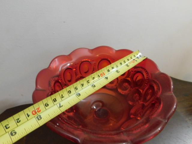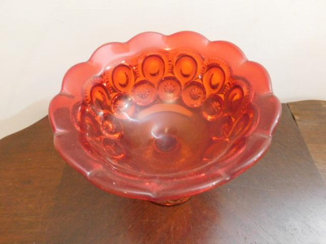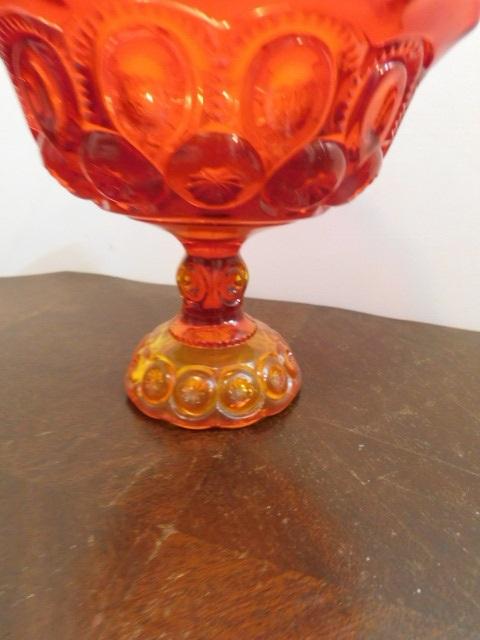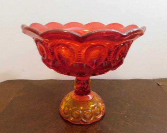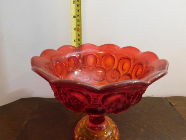 Vintage LE Smith Moon and Stars Amberina Compote Dish 7"