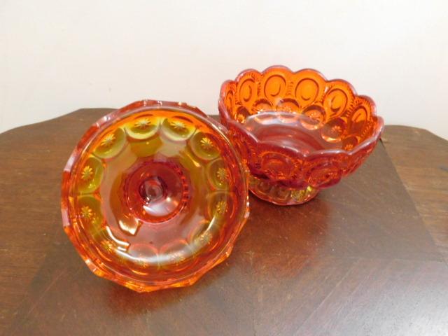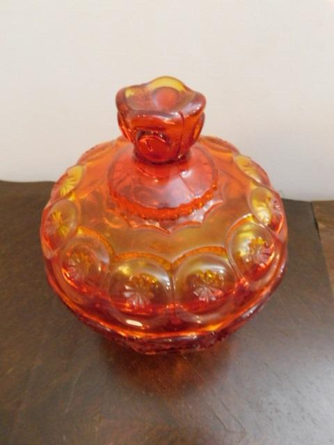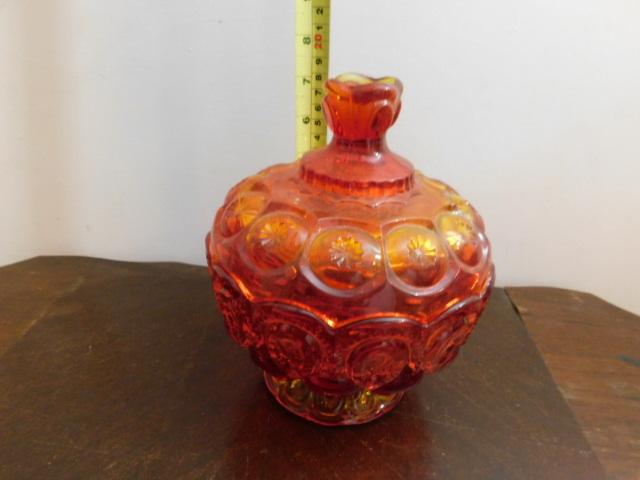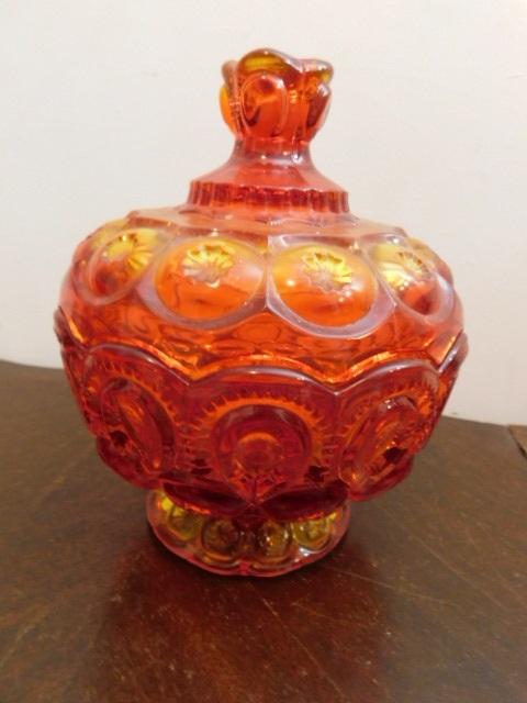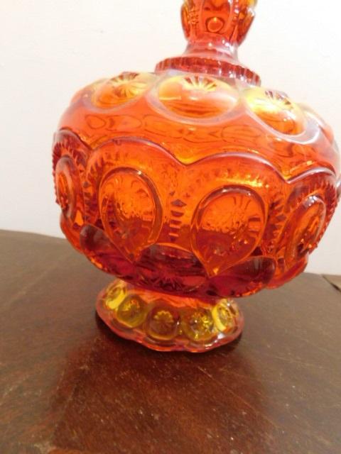 Vintage LE Smith Moon and Stars Amberina Lidded Candy Dish 7"