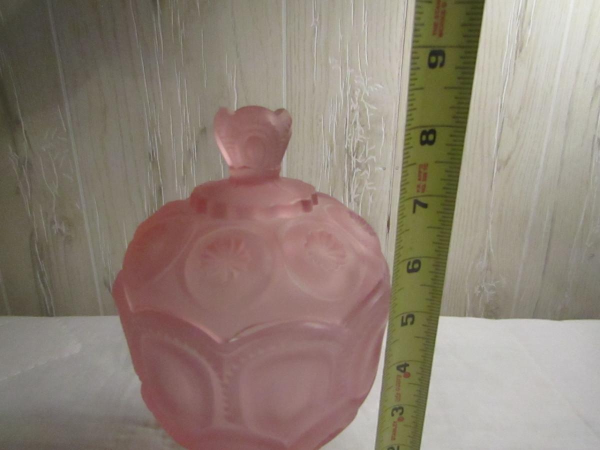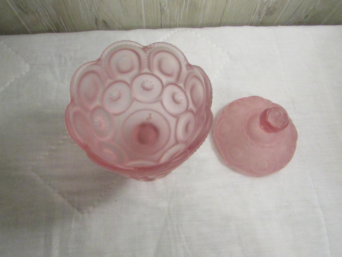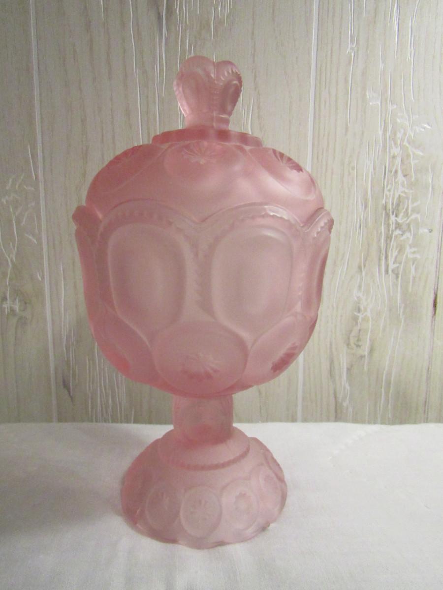 Vintage LE Smith Moon and Stars Pink Satin Frosted Glass Covered Compote- Approx 8 1/2 Inches Tall
