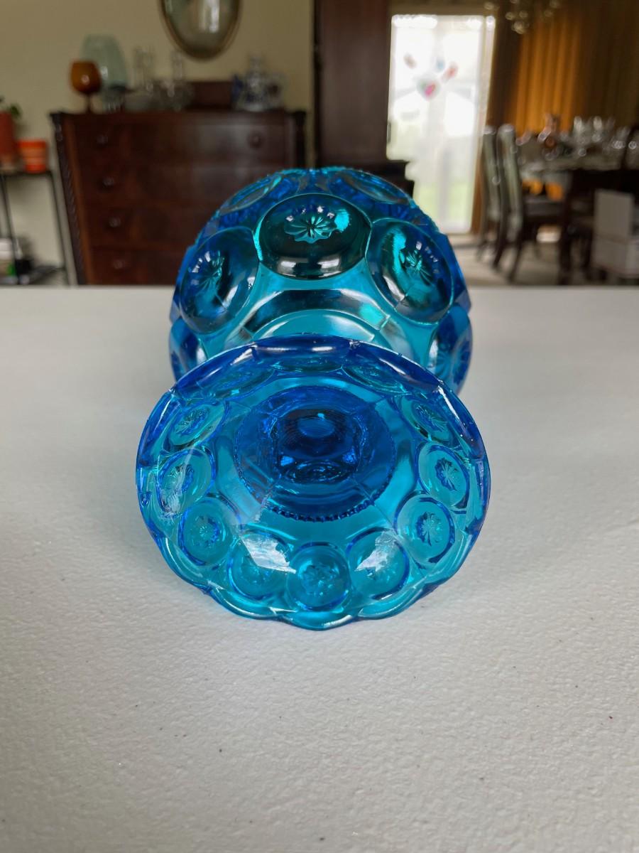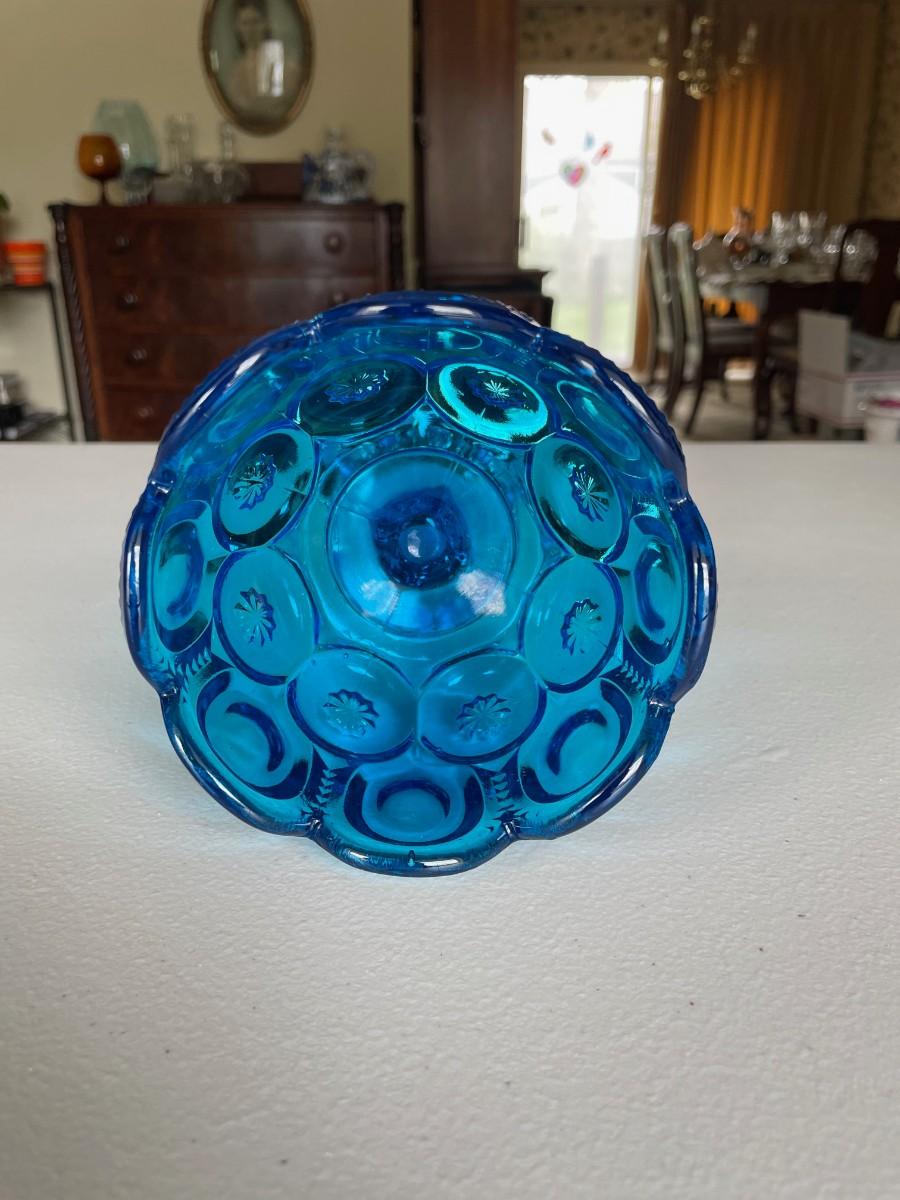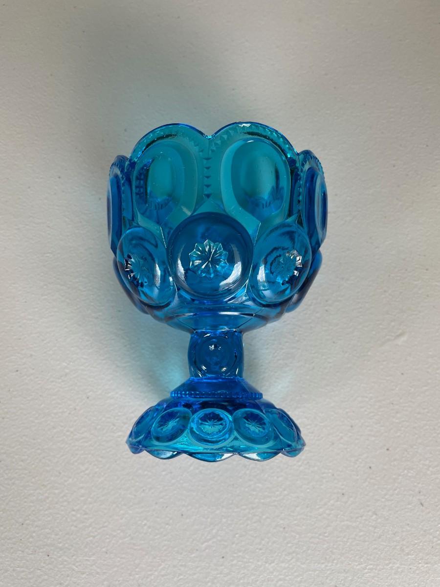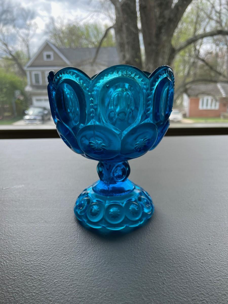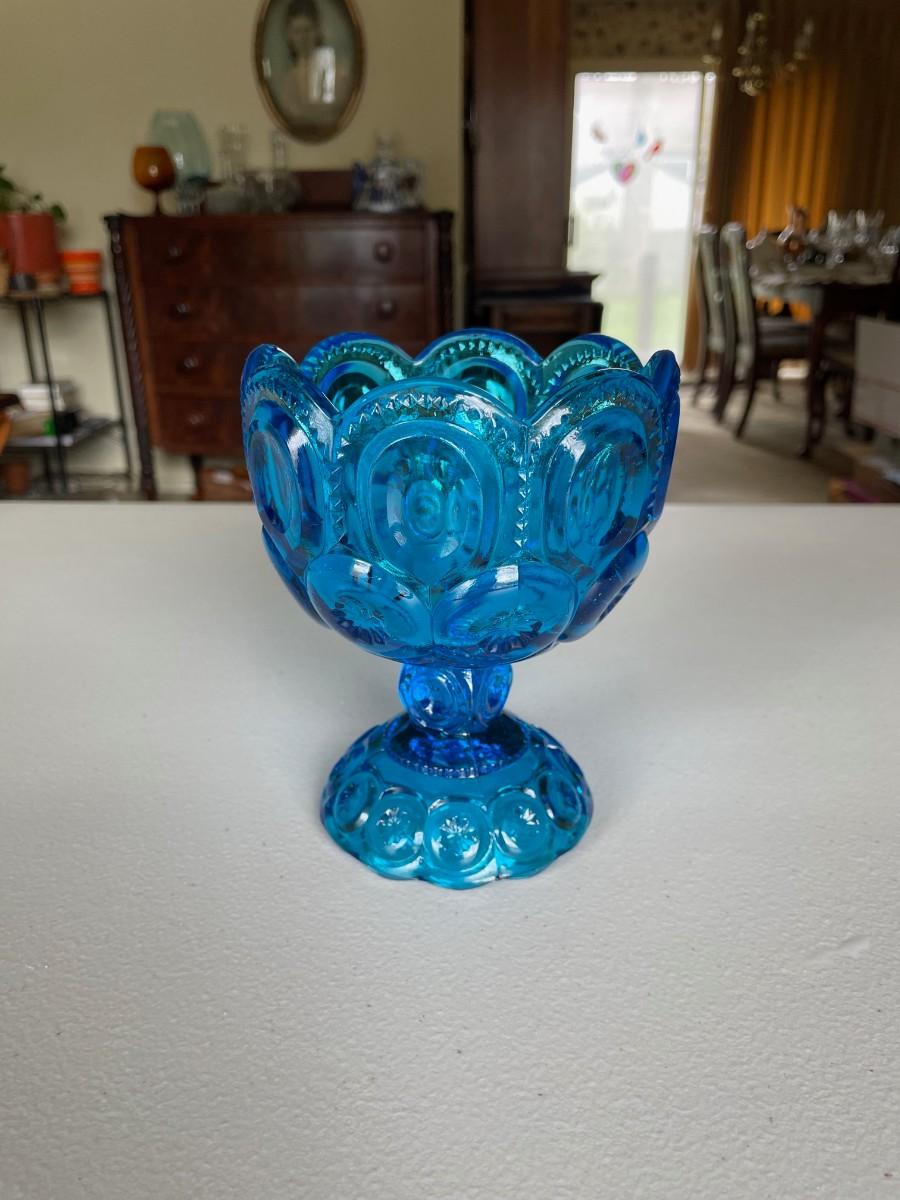 Vintage LE Smith Moon & Stars Aqua Blue Compote Footed Candy Dish