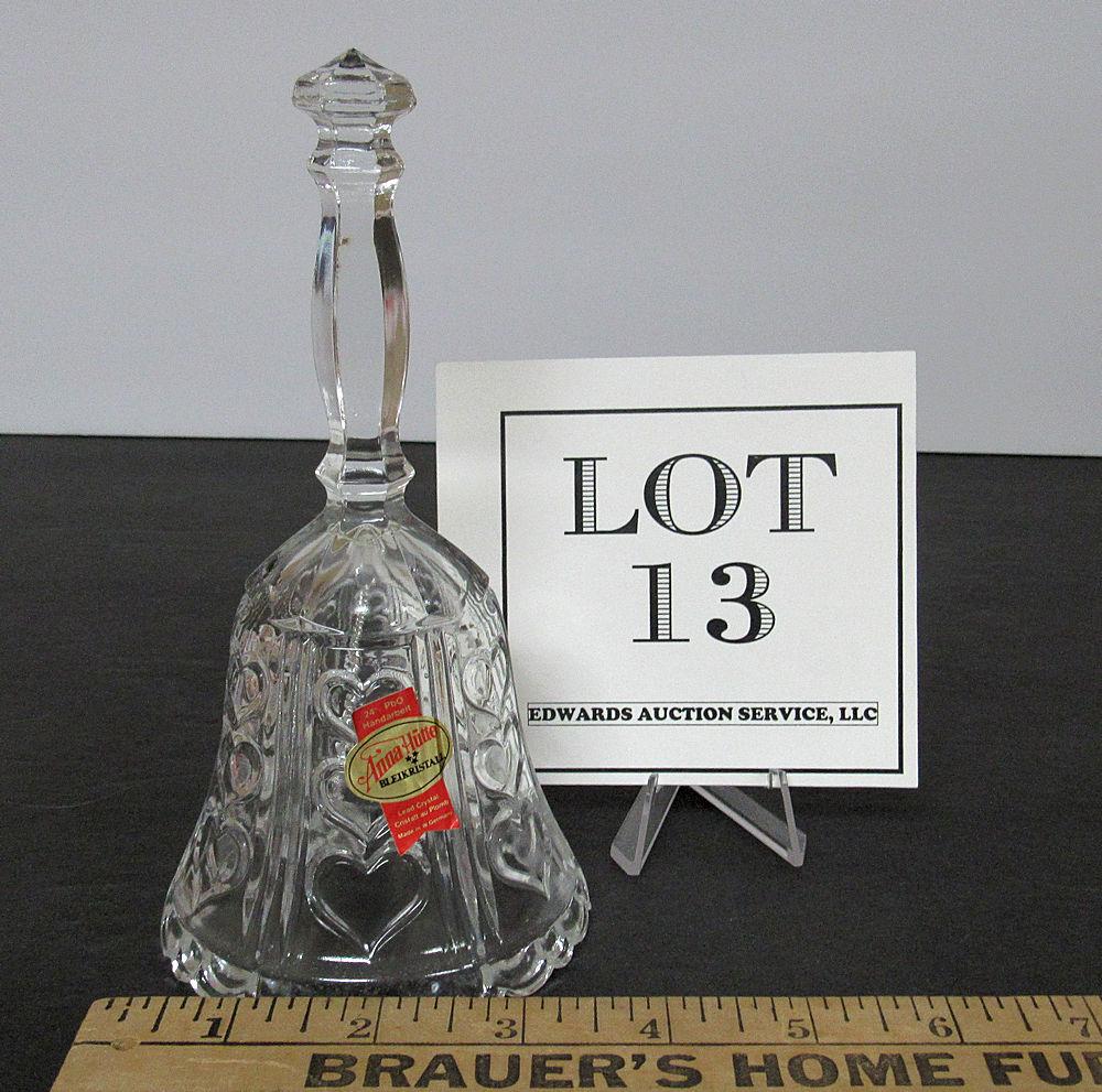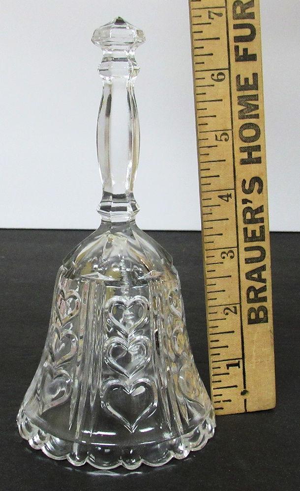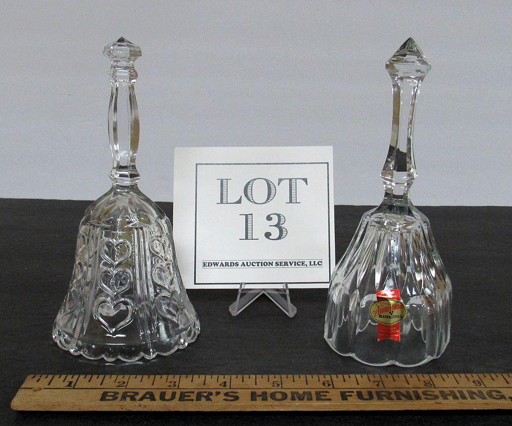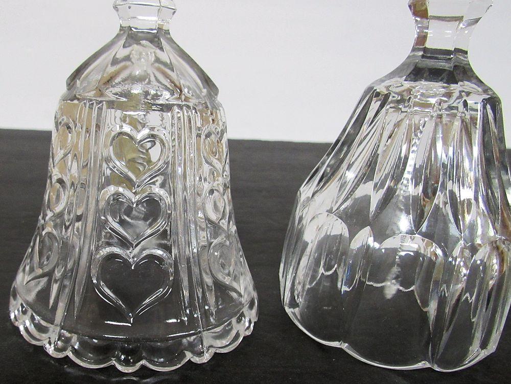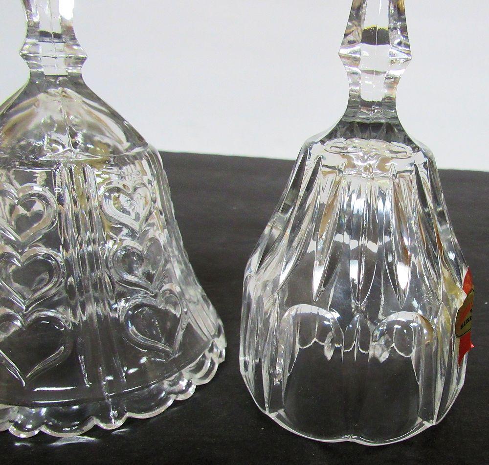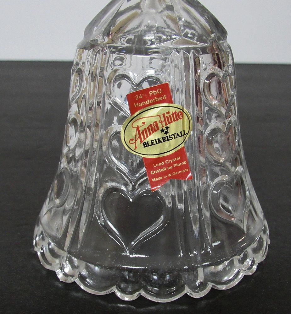 2 Vintage Lead Crystal Clear Bells, West Germany, Anna Hutte, Bleikristall, One With Hearts, One With Oblong Ovals