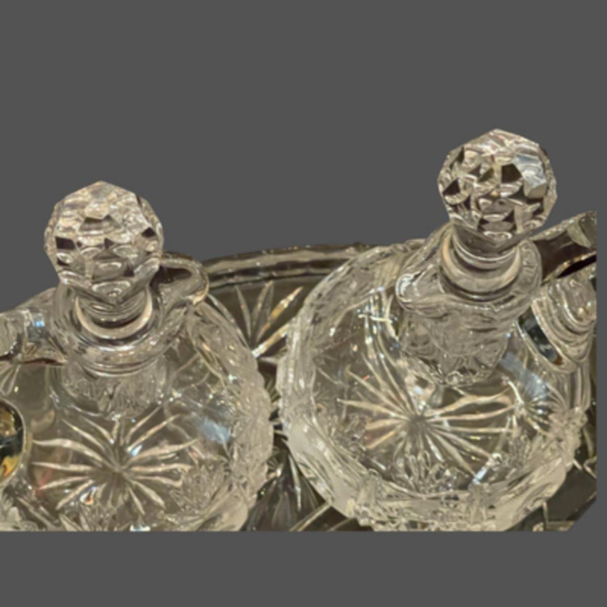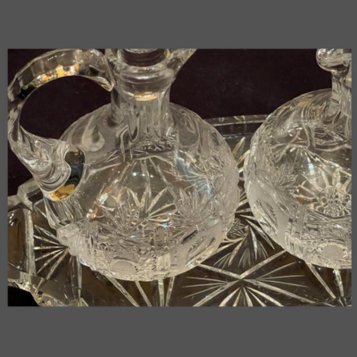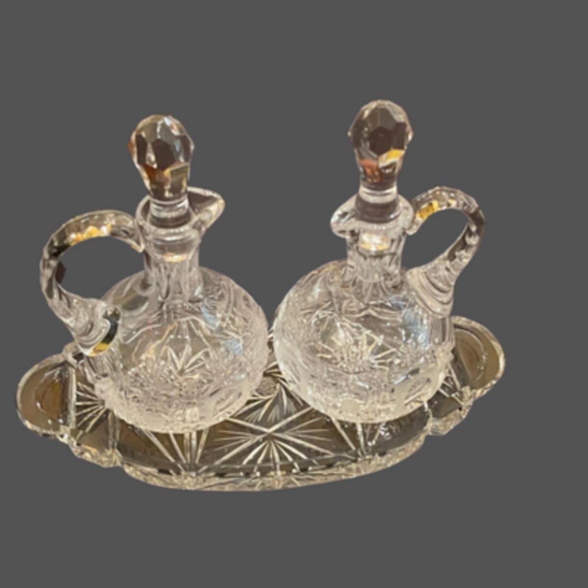 Vintage Lead Crystal Cut Cruet Set with Tray - 7" x 9"