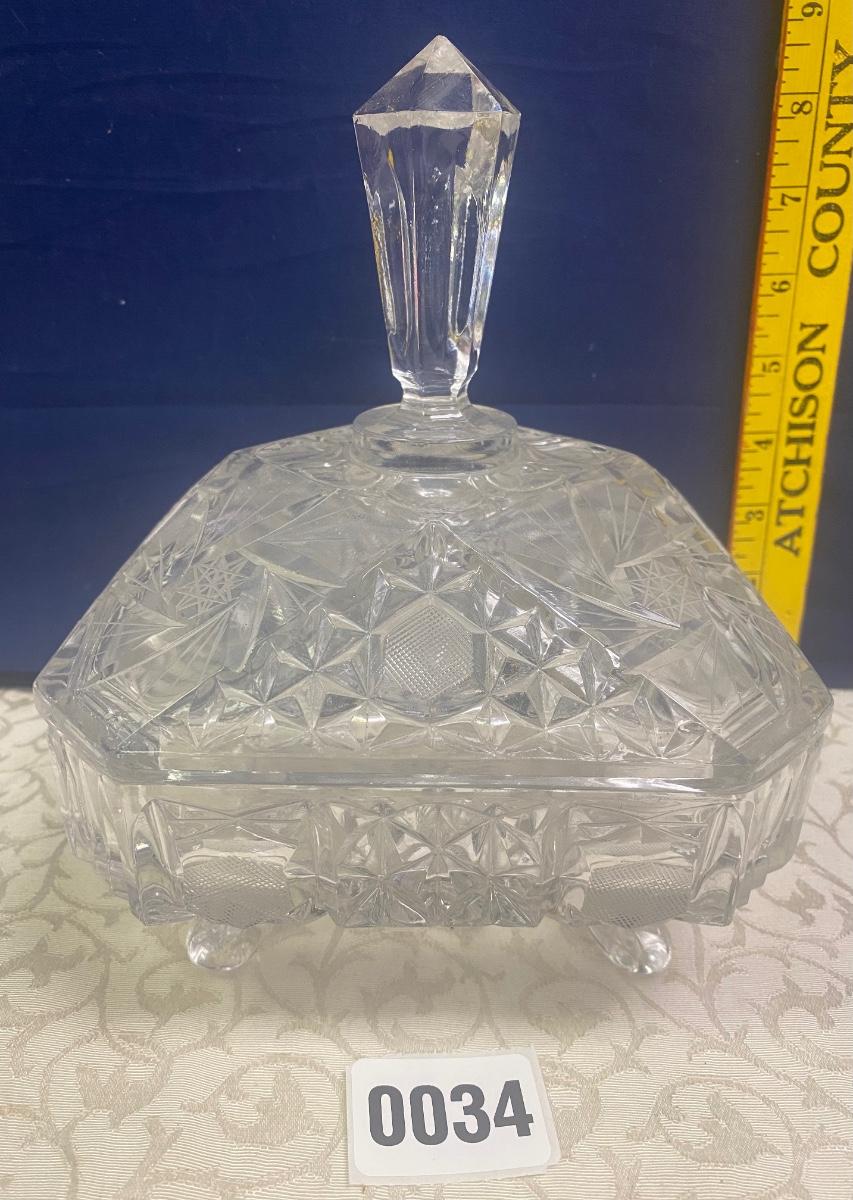 Vintage Lead Crystal pinwheel Footed Candy Dish