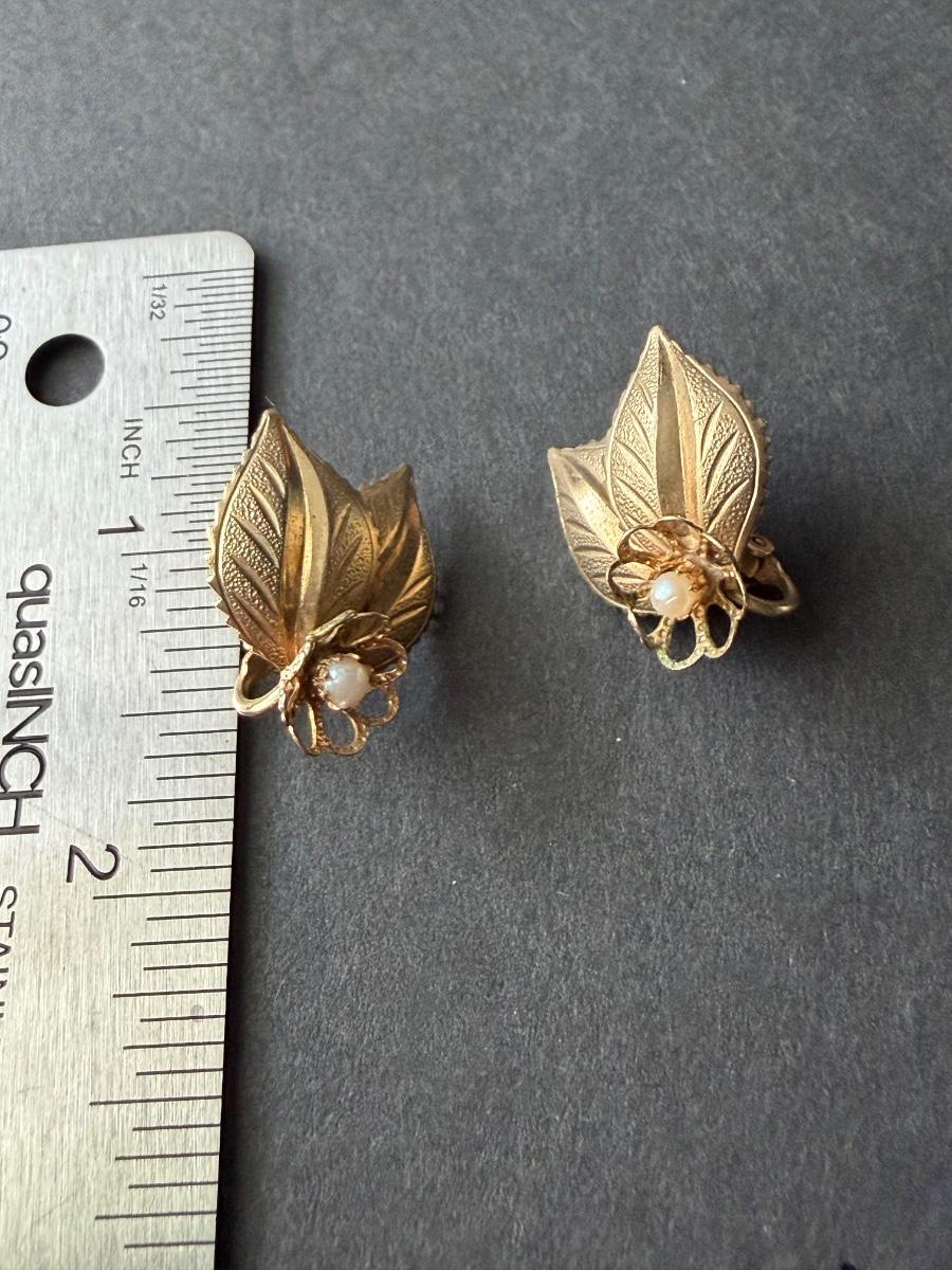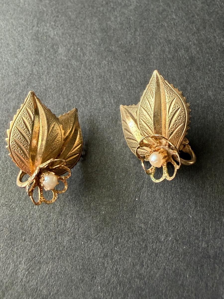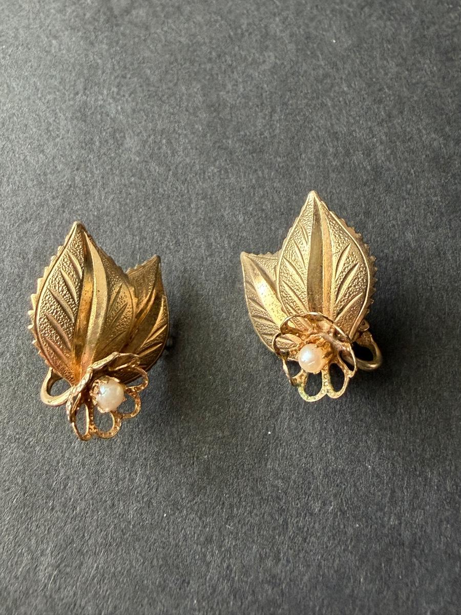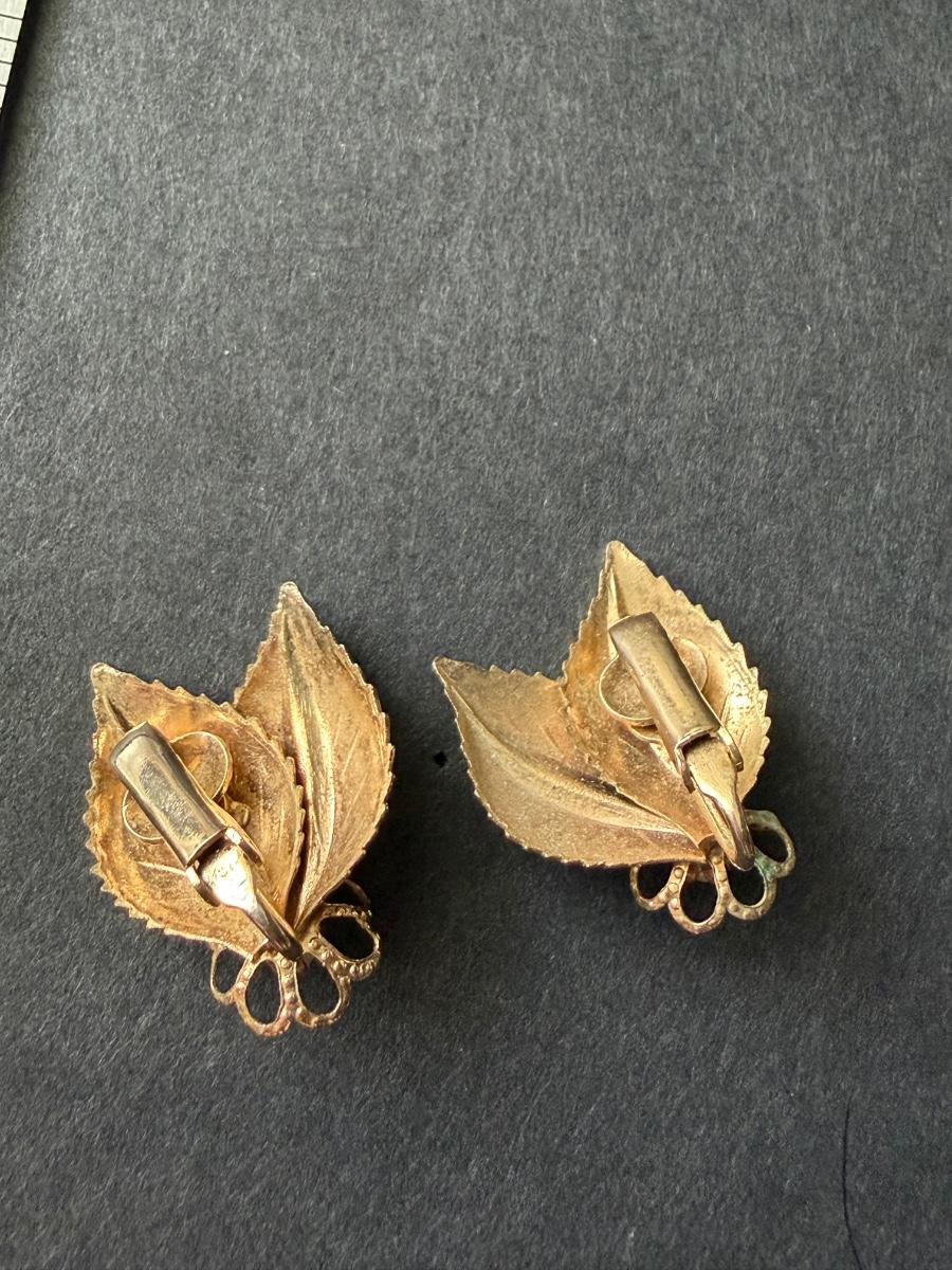 Vintage leaf gold tone clip on earrings