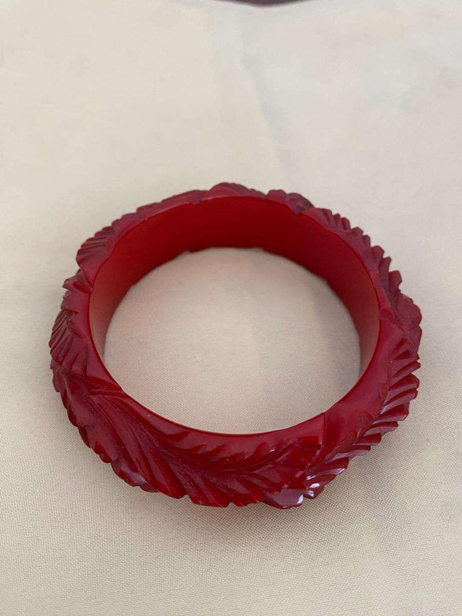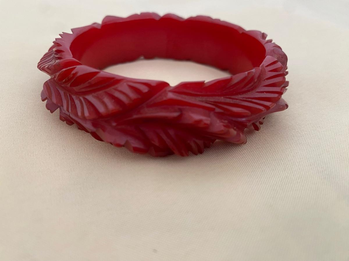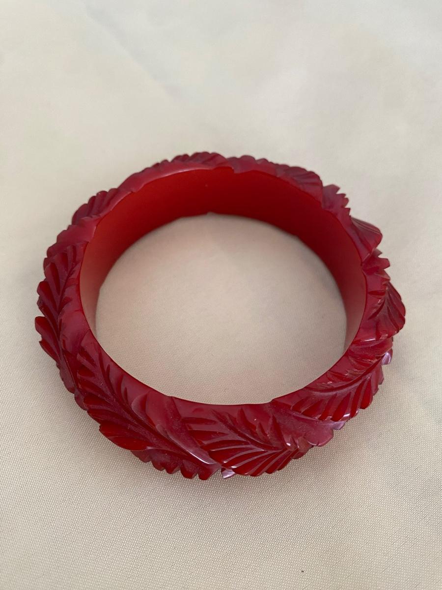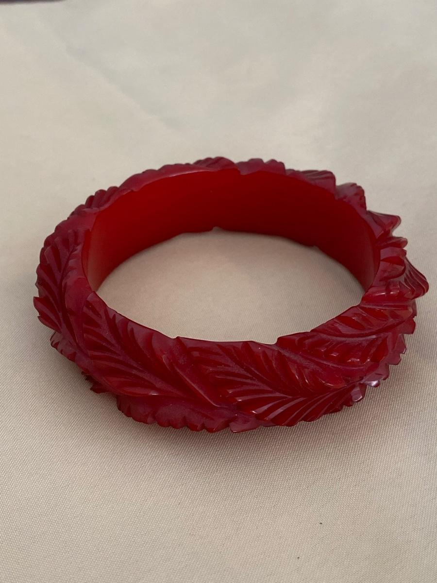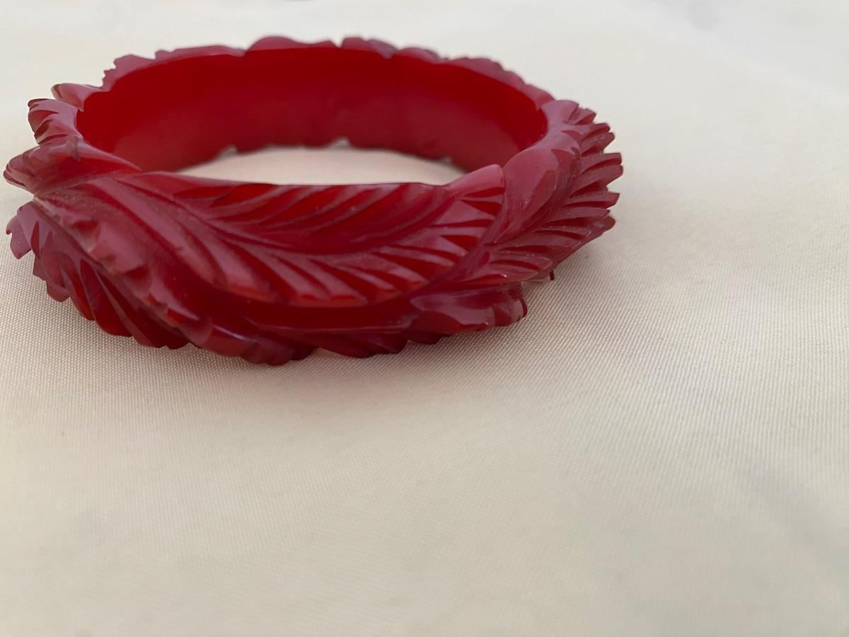 Lovely bakelite bangle bracelet, leaf pattern, excellent condition.