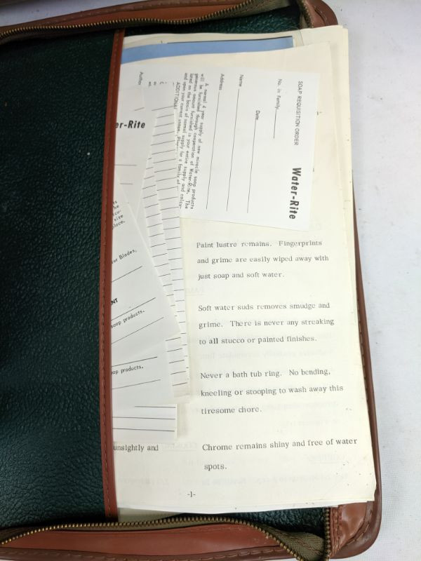 Vintage Leather Bag With Leather Binder With Water Softener Sales Info