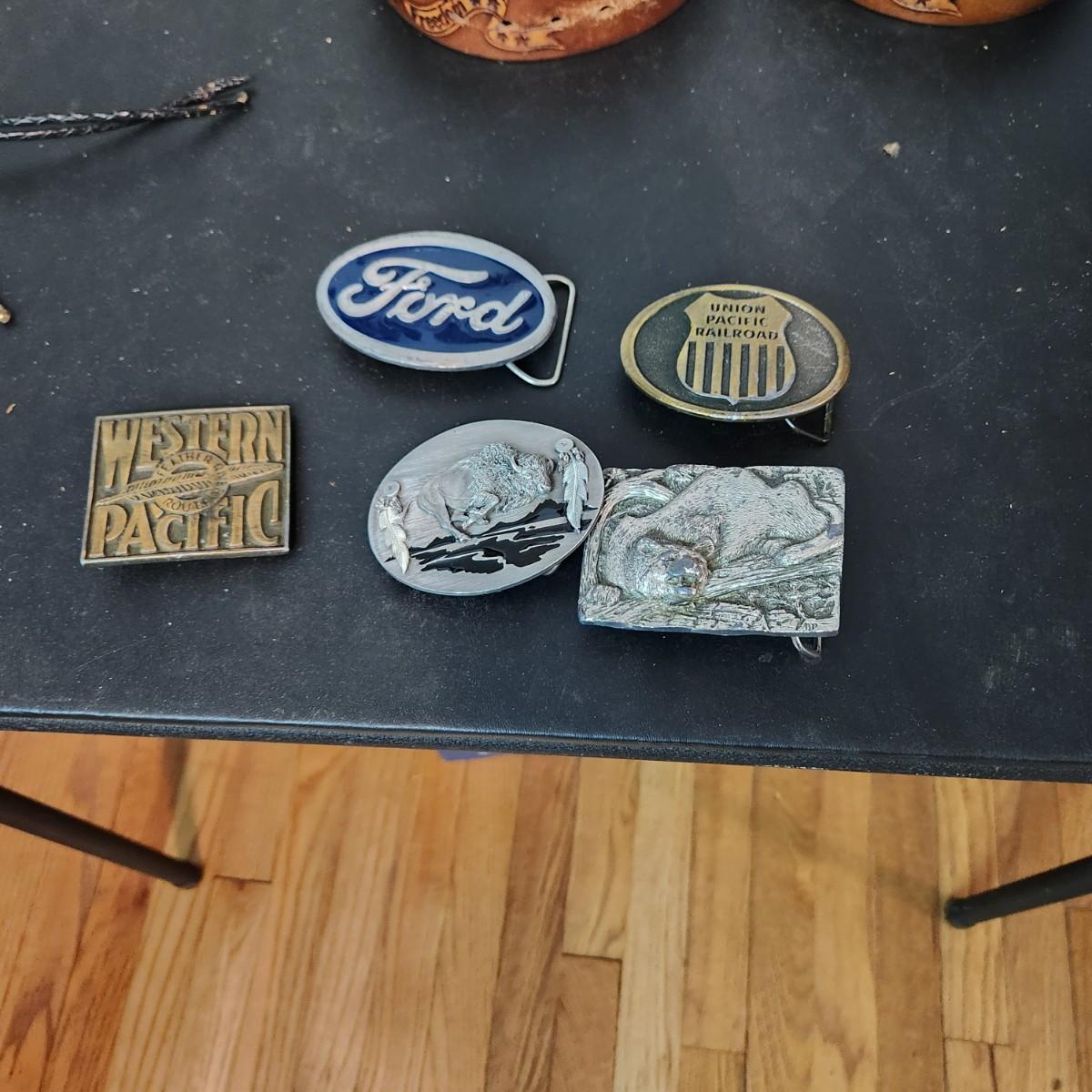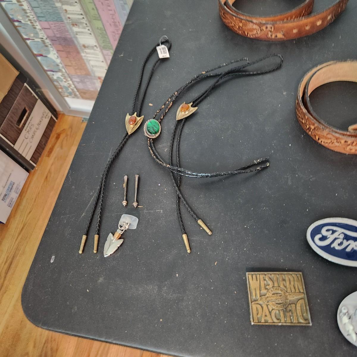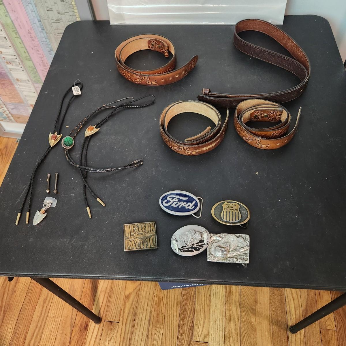 Vintage Leather Belts, Bolo ties , Ford, Union Pacific Railroad, Western Pacific ,Bison Buckle