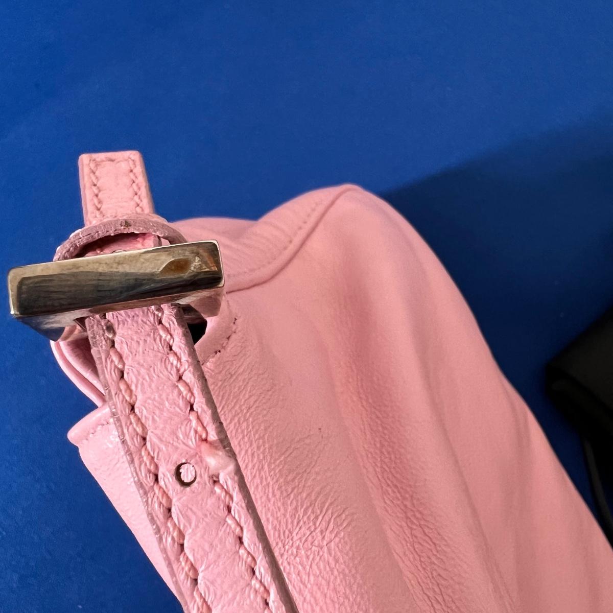 Color: pink gun metal tone hardware