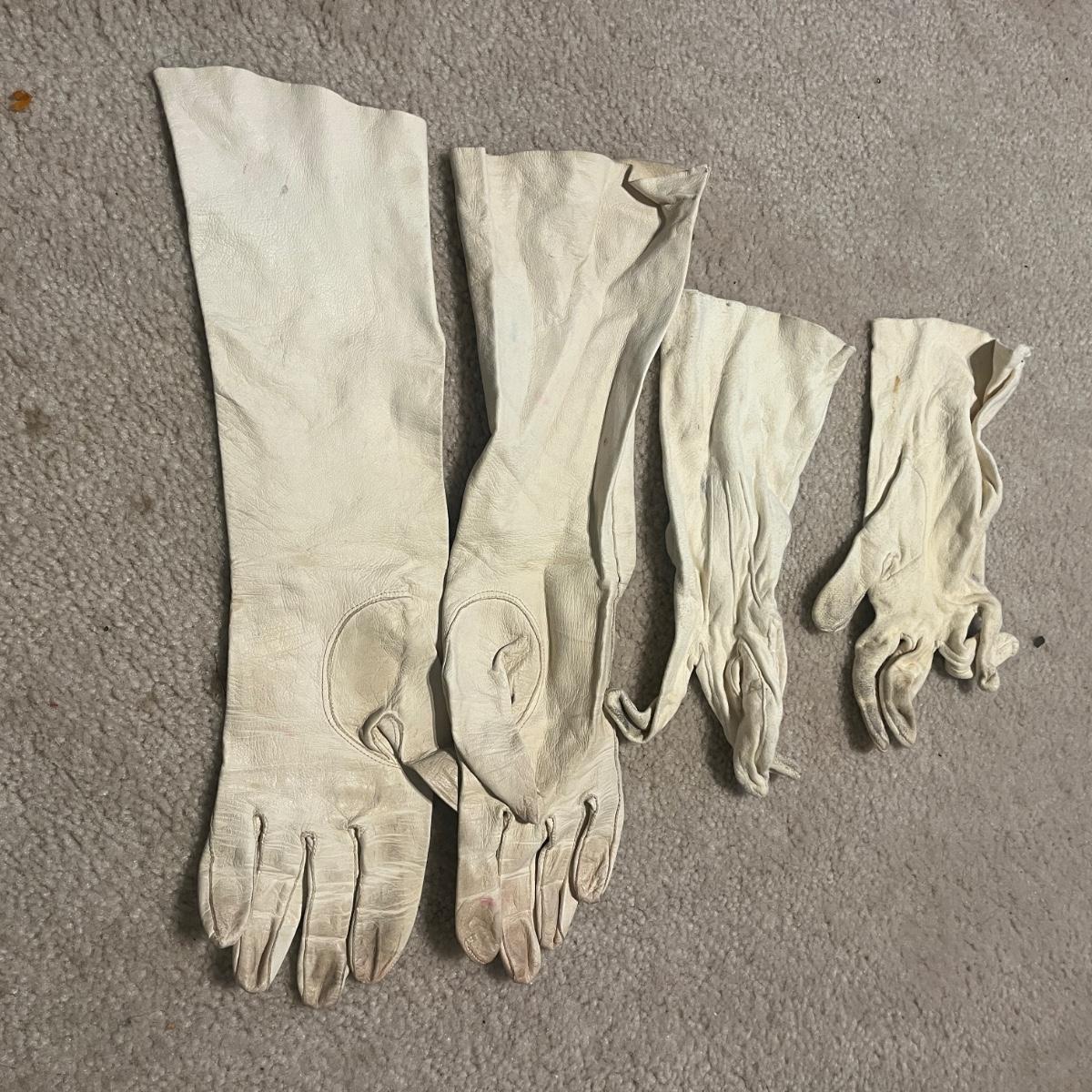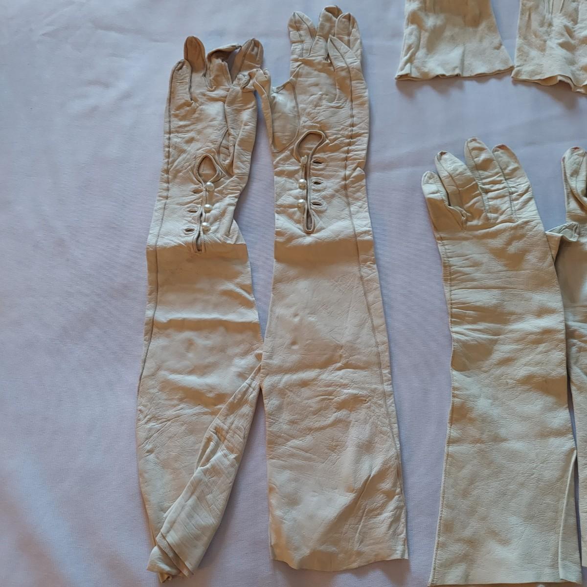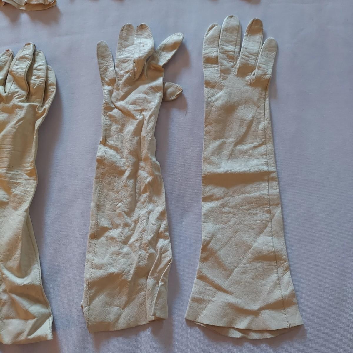 Twelve pairs of vintage leather gloves. Some have surface stains, especially on the white pairs. Shipping available