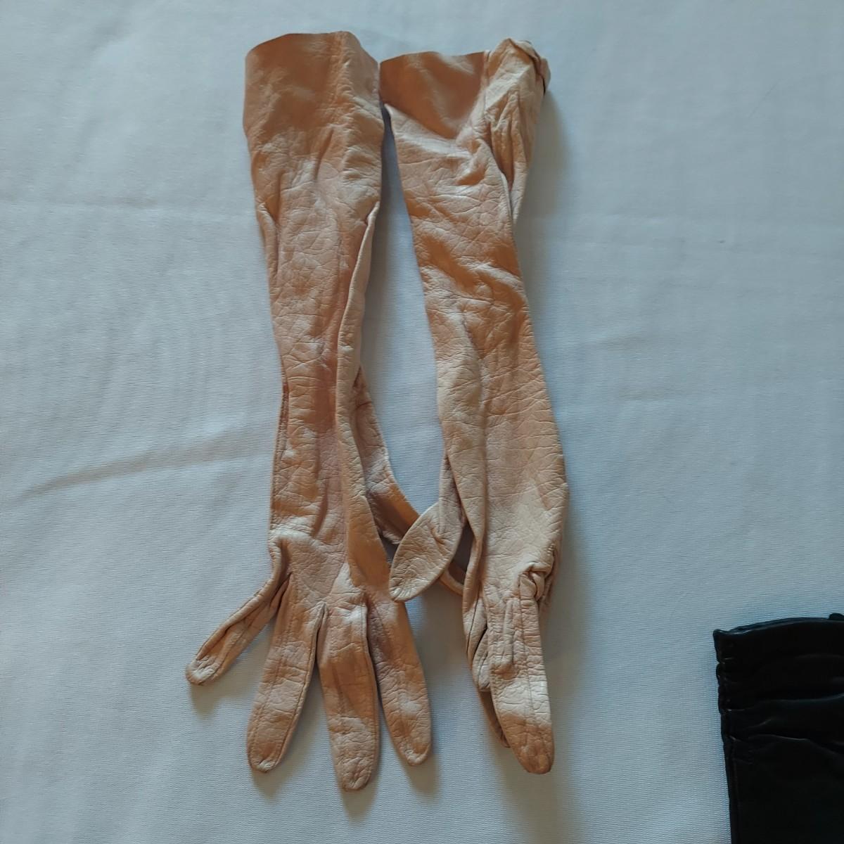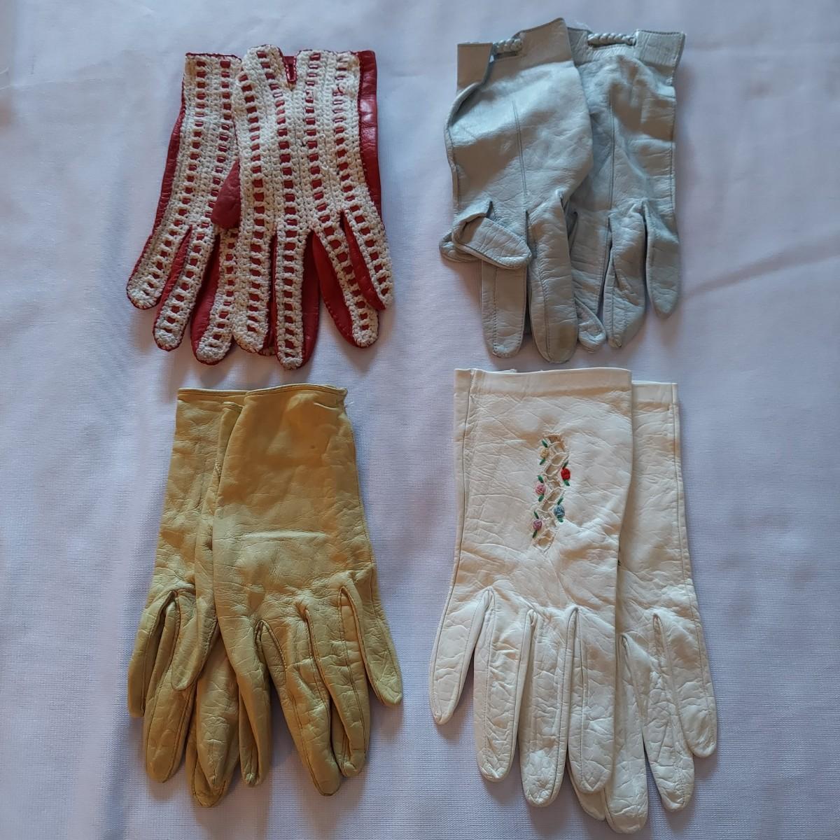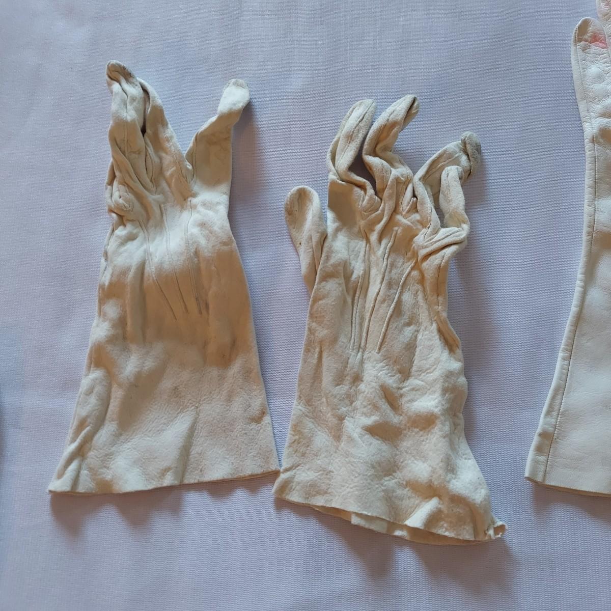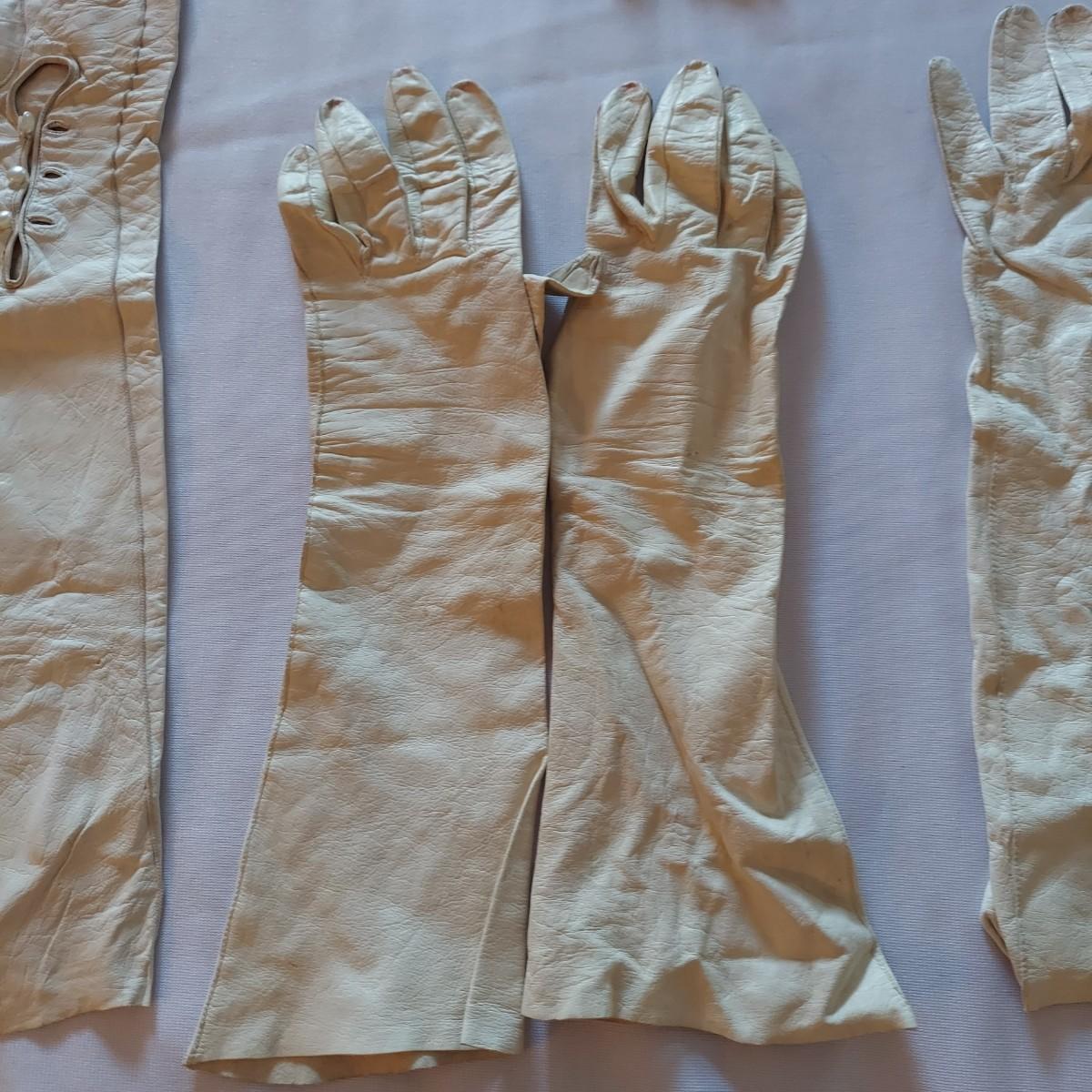 Twelve pairs of vintage leather gloves. Some have surface stains, especially on the white pairs. Shipping available