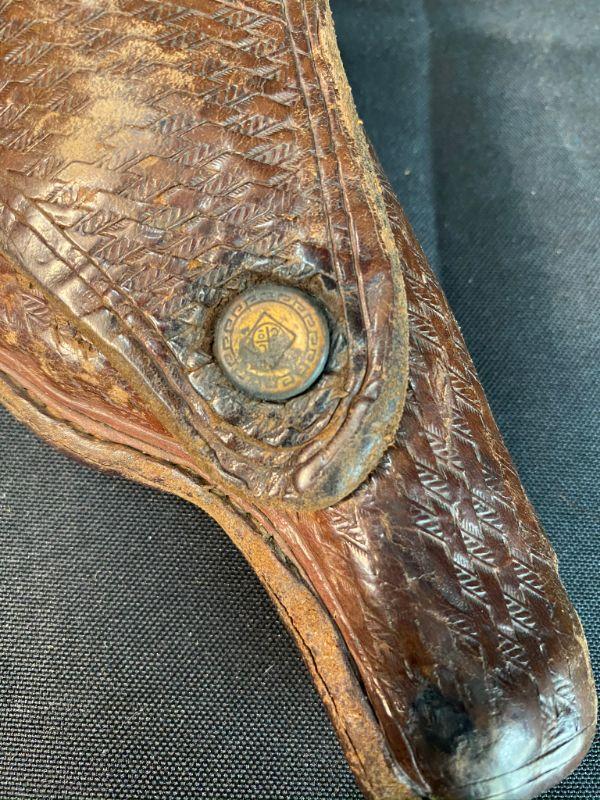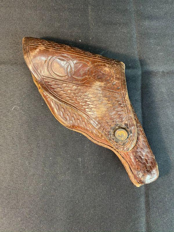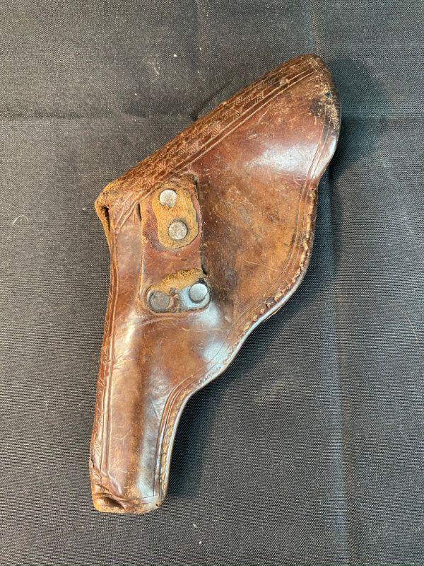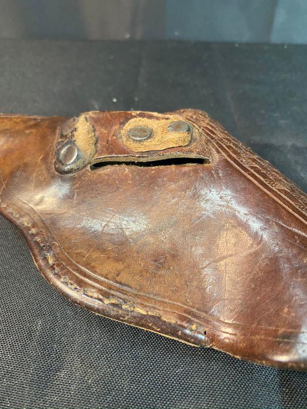 Vintage Leather Hand Gun Holder. Snaps closed. Has signs of wear.
