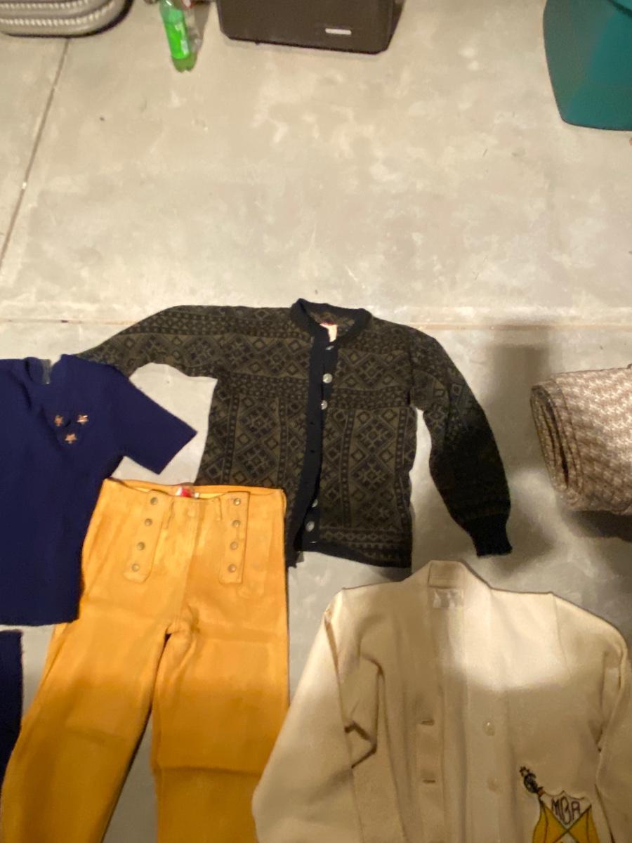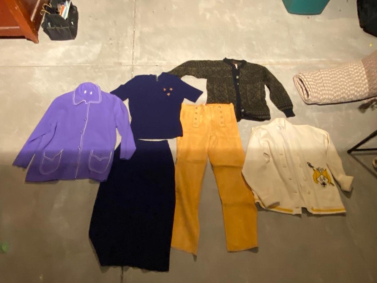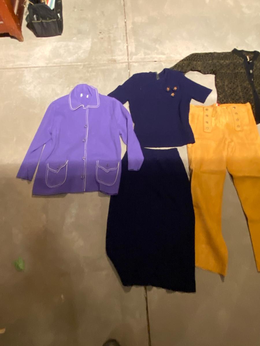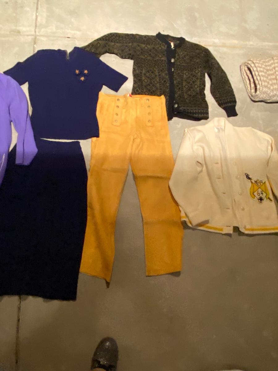 VINTAGE LEATHER PANTS, LETTER SWEATER AND OTHER VINTAGE CLOTHING