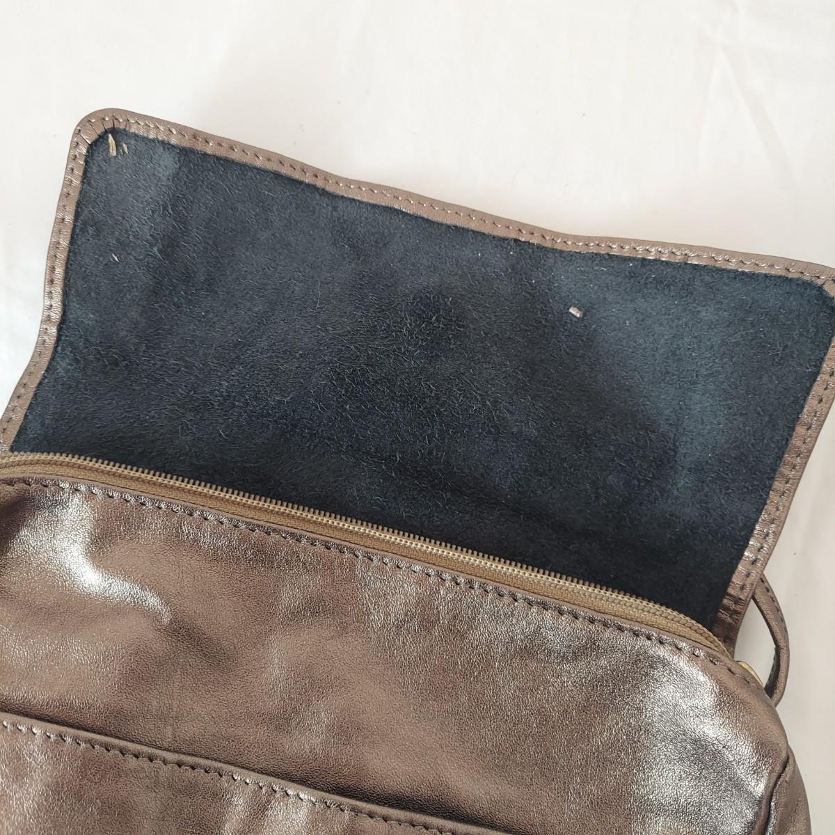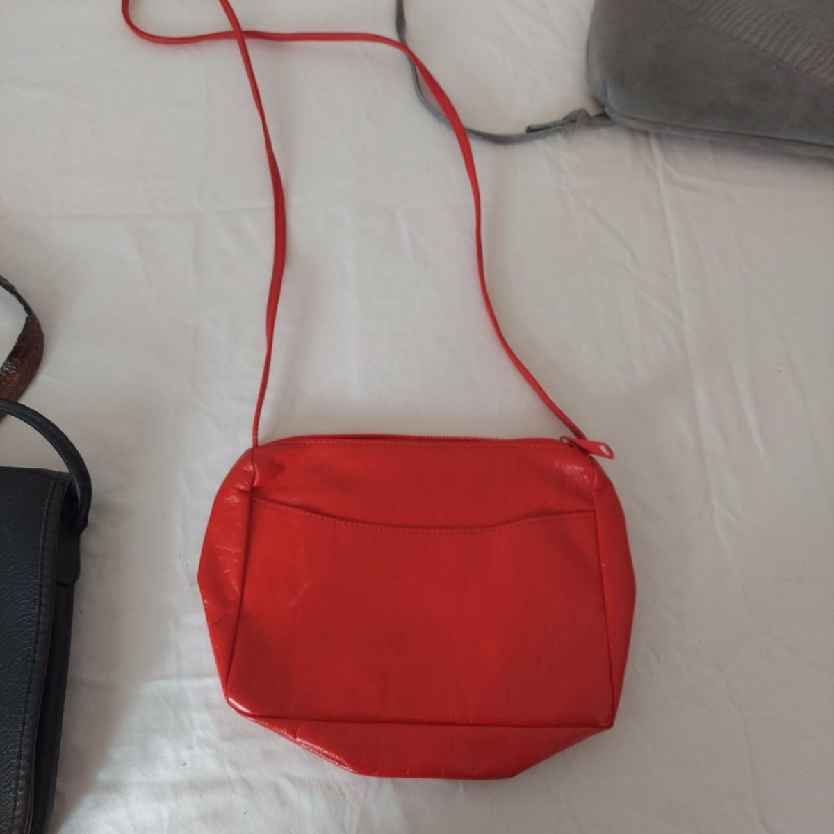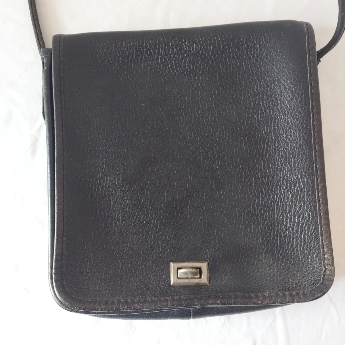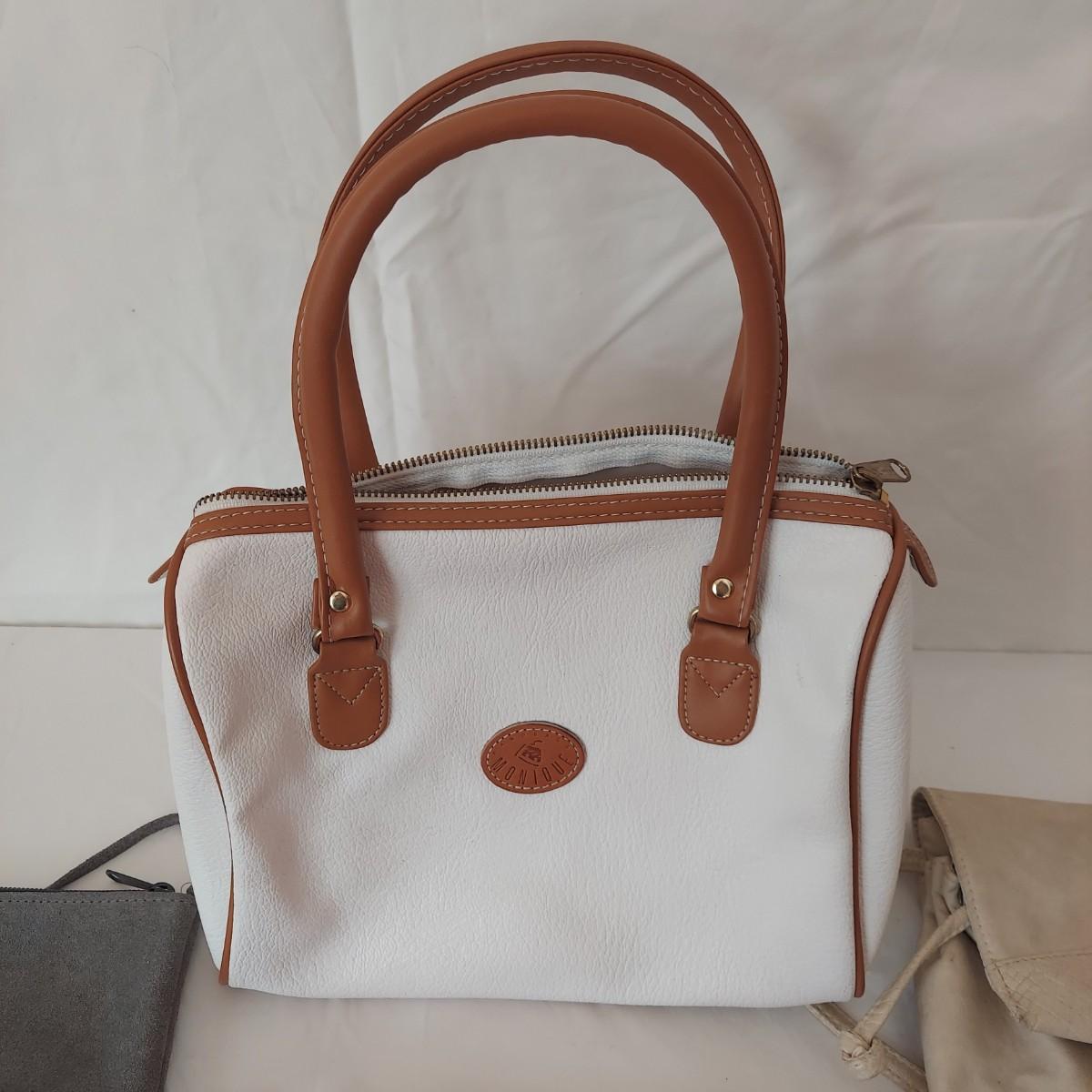 Lot includes 15+ vintage purses. Many are leather. The brown and white top handle bag measures 10" x 6” x 9"H not including handles. Please see photos for brands, materials and other details. Shipping available