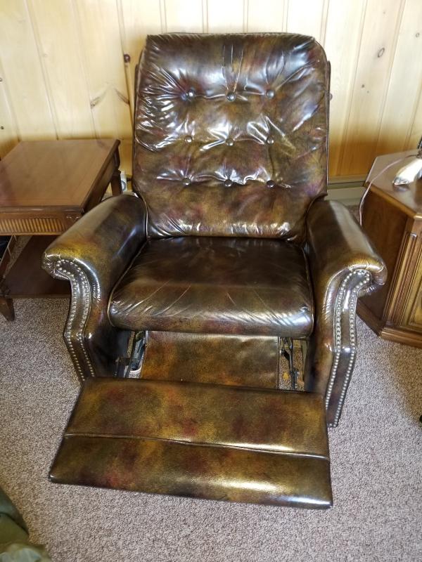 Overall great shape I don't see any tears, reclines by leaning back. We can help load.