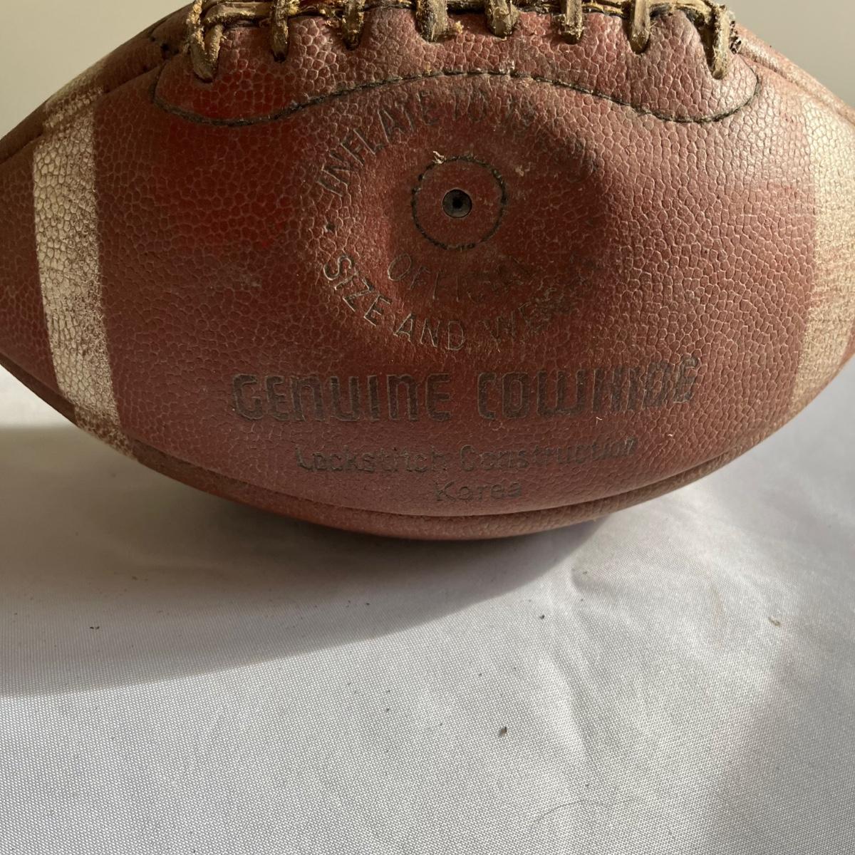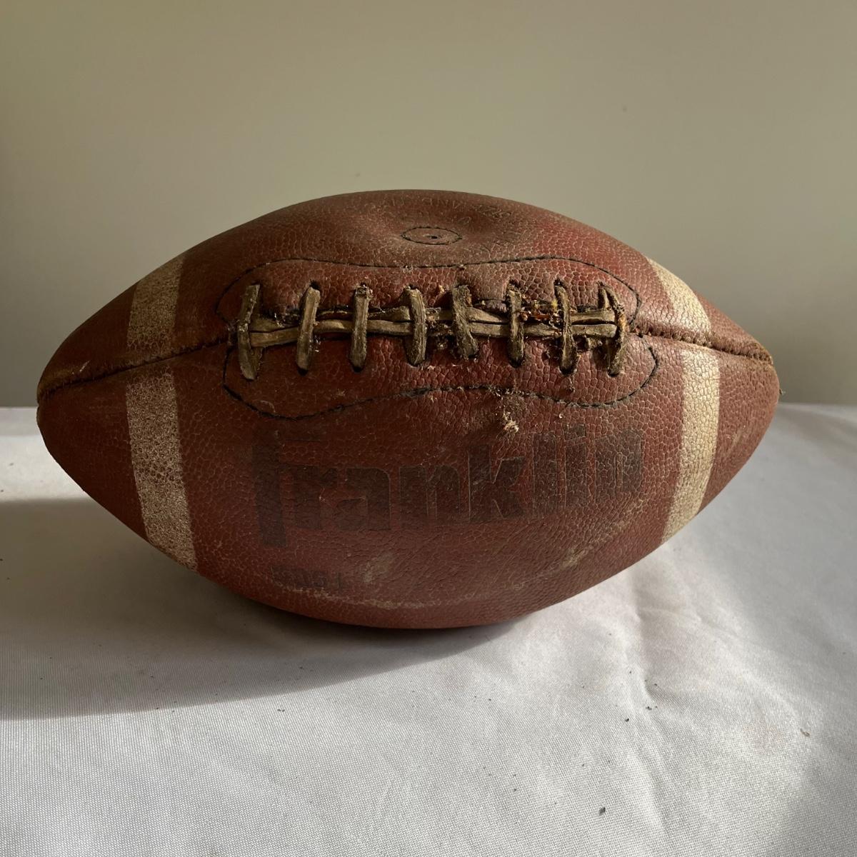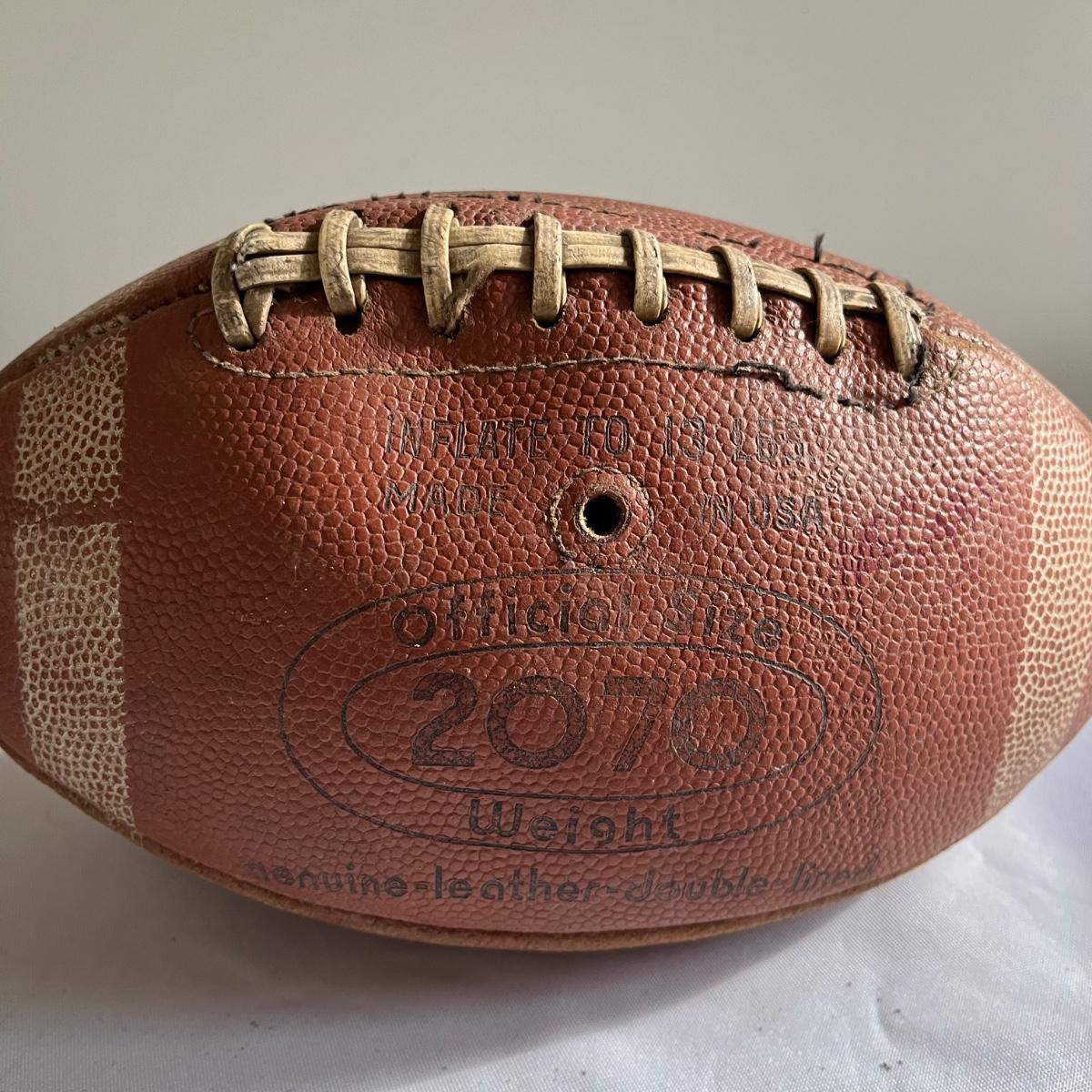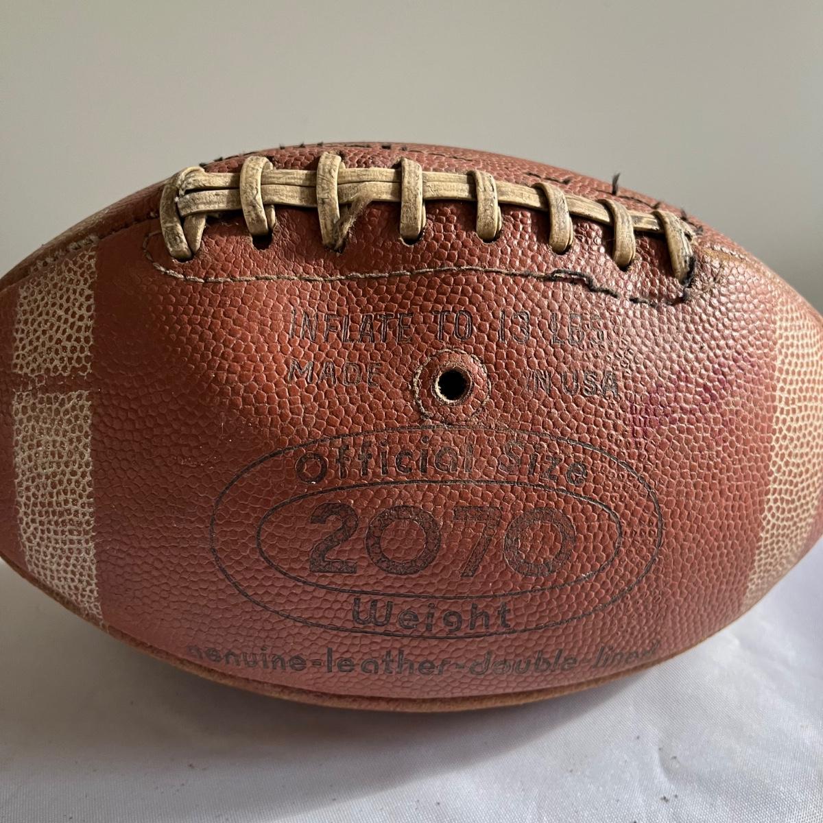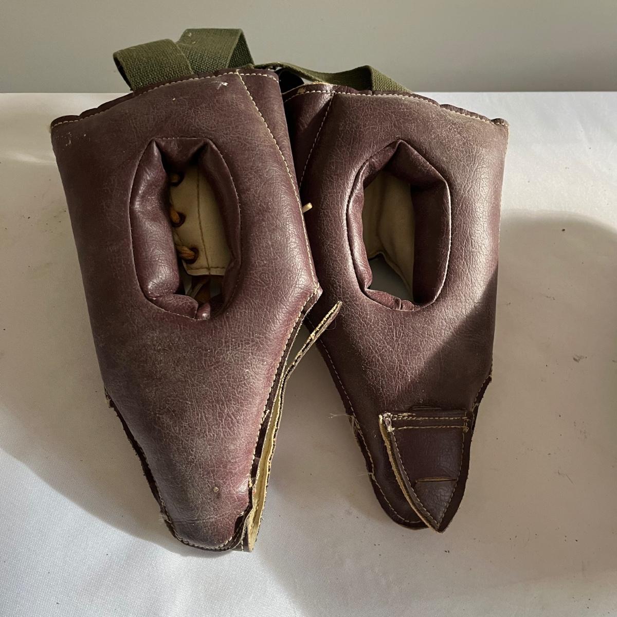 These vintage items include a pair of AAU boxing gloves, Everlast head protector, Billy Sims football and a Franklin football. All items are leather and show their age.