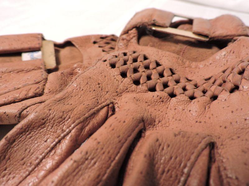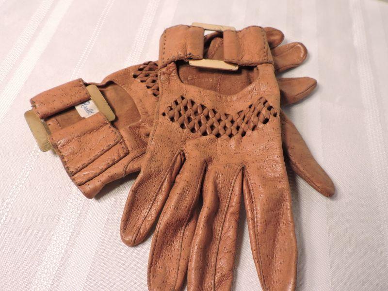 Beautiful tan leather driving gloves from 50-60's.. About a small-medium, **Please read Terms and Conditions before placing a bid. Pick up is Sunday, September 15, 2019 from 11am to 4pm and Tuesday, September 17 from 4pm-7pm in Sicklerville. All sales are final. All sales are as is, where is. Please review all photos. Any props included in photos are not included in listing. All measurements are approximate.
