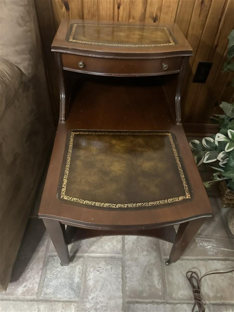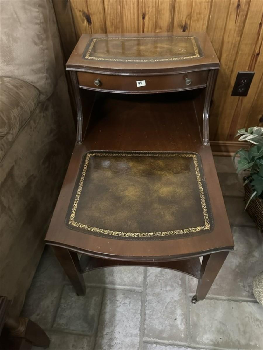 44 Vintage Leather Top Step Side Table