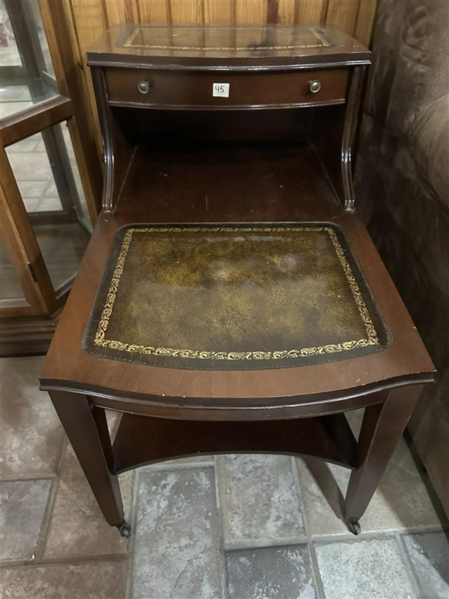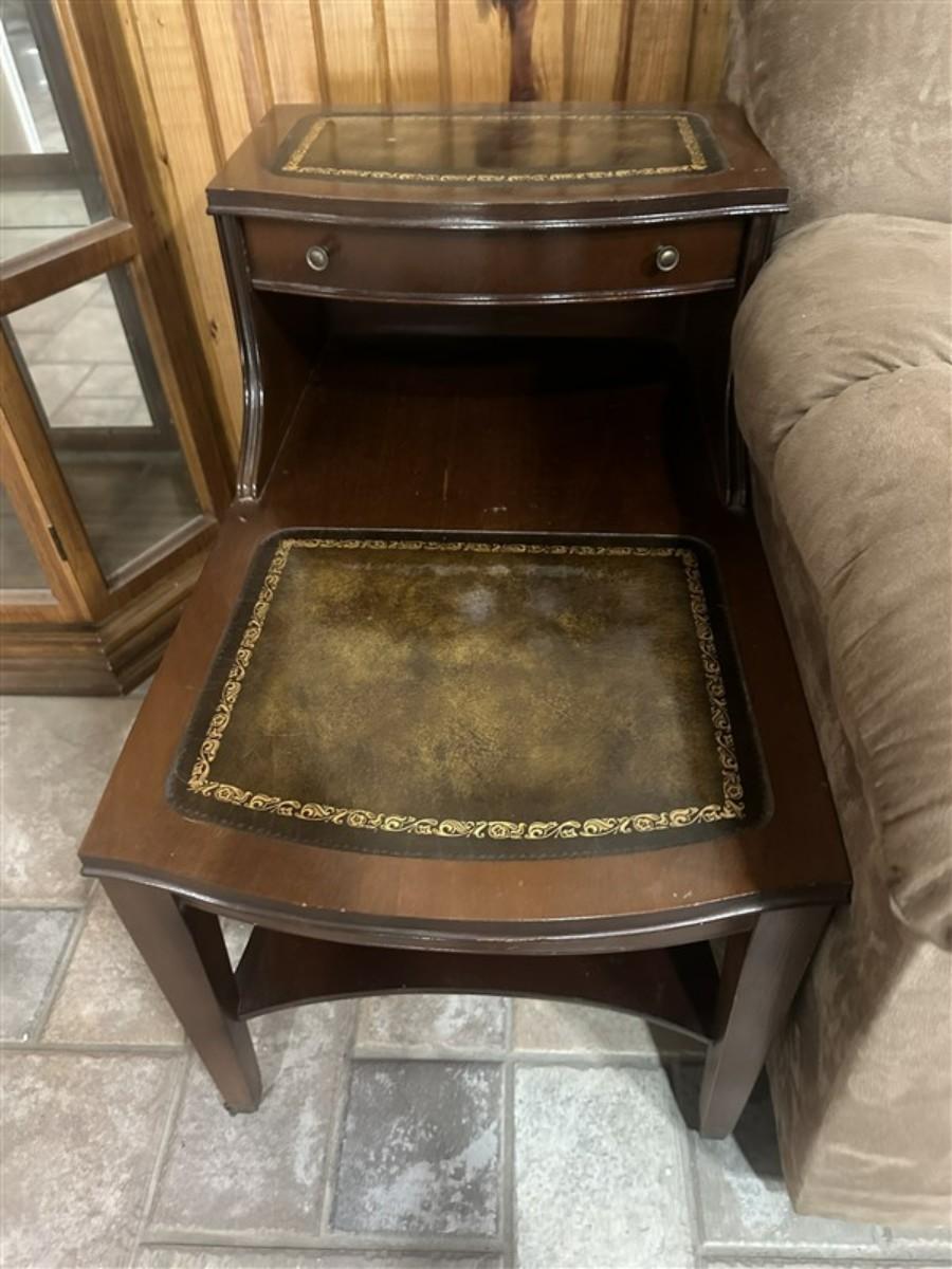 45 Vintage Leather Top Step Side Table