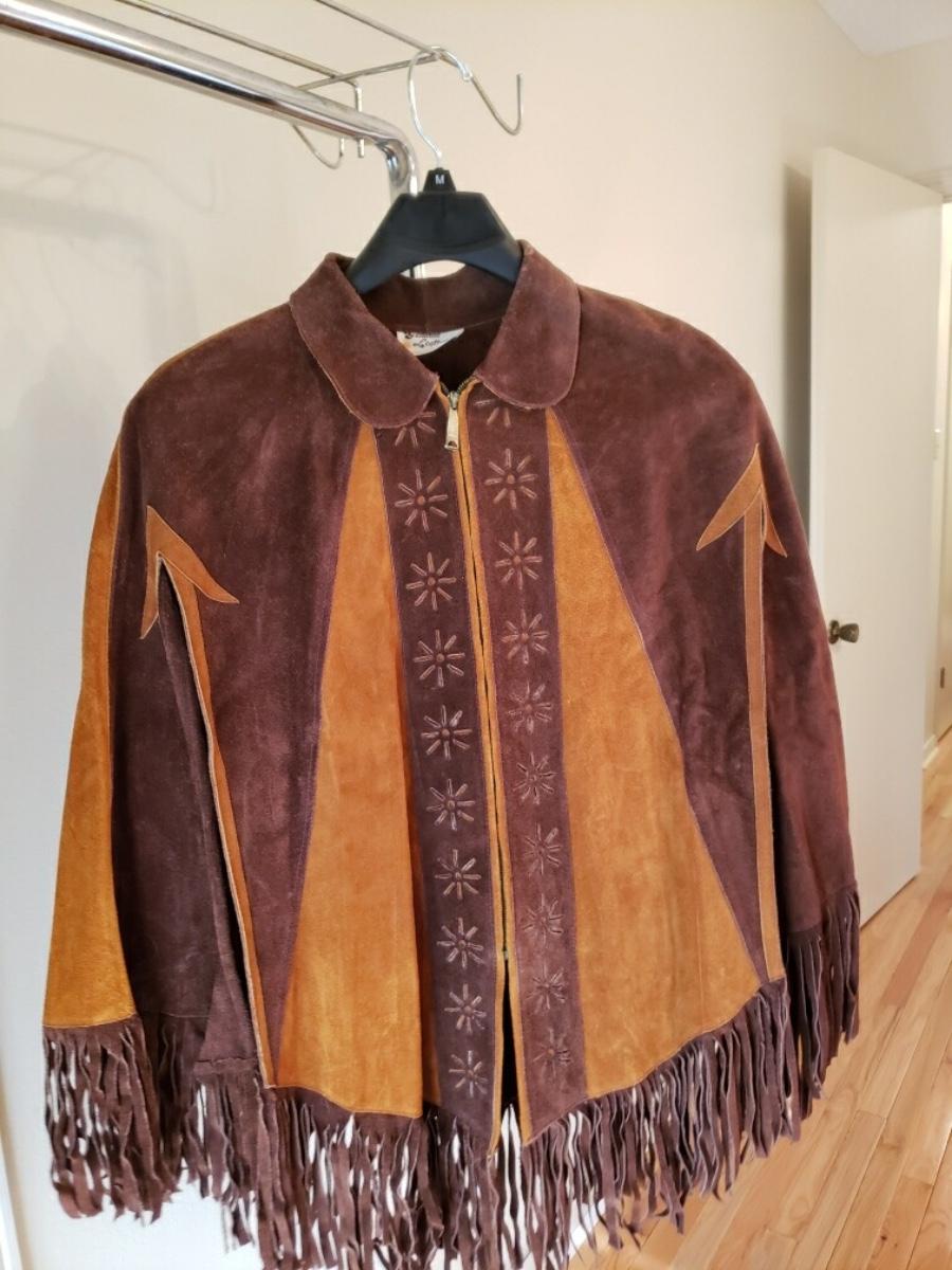 Vintage Leather/Suede Fringed Poncho. Approximate Size M.
