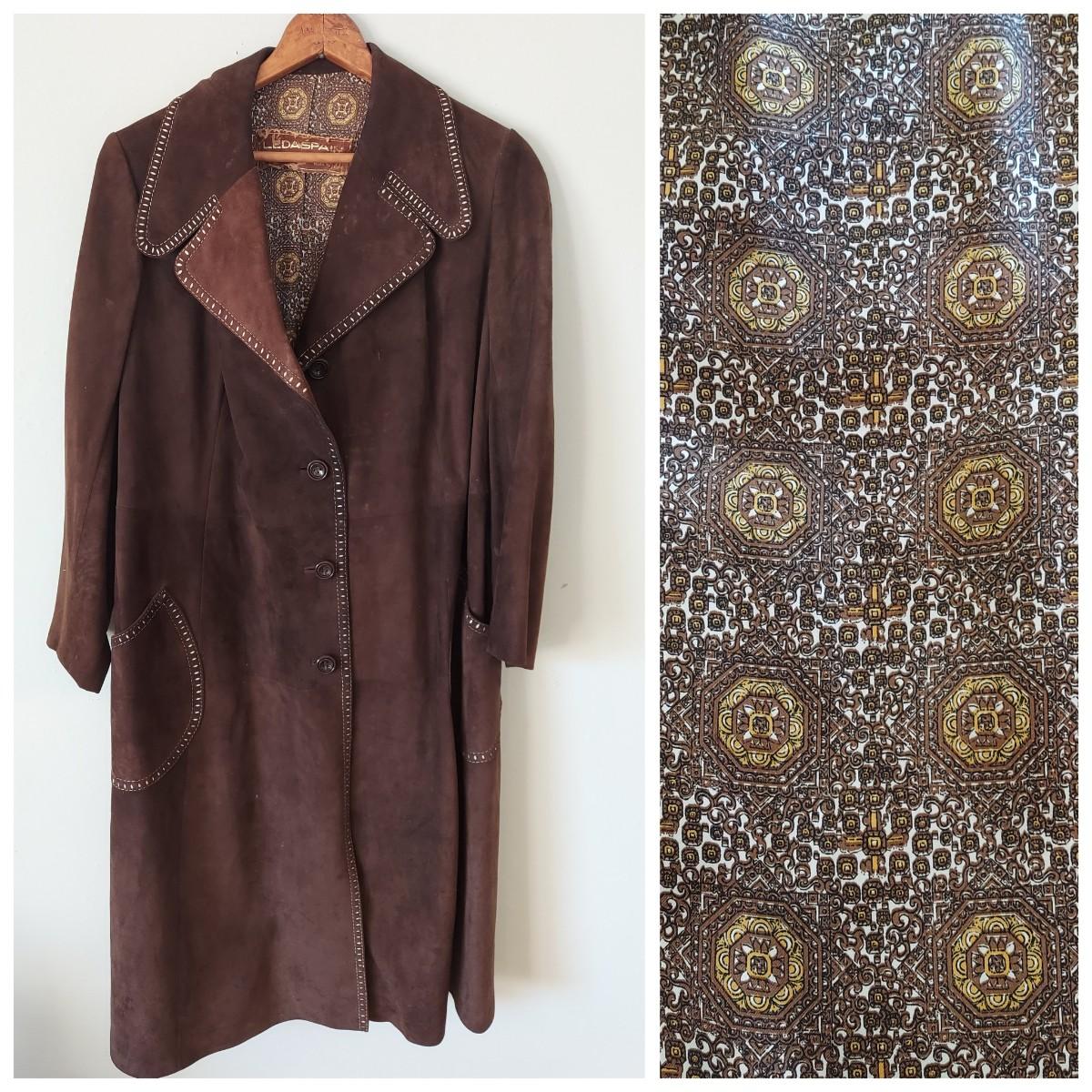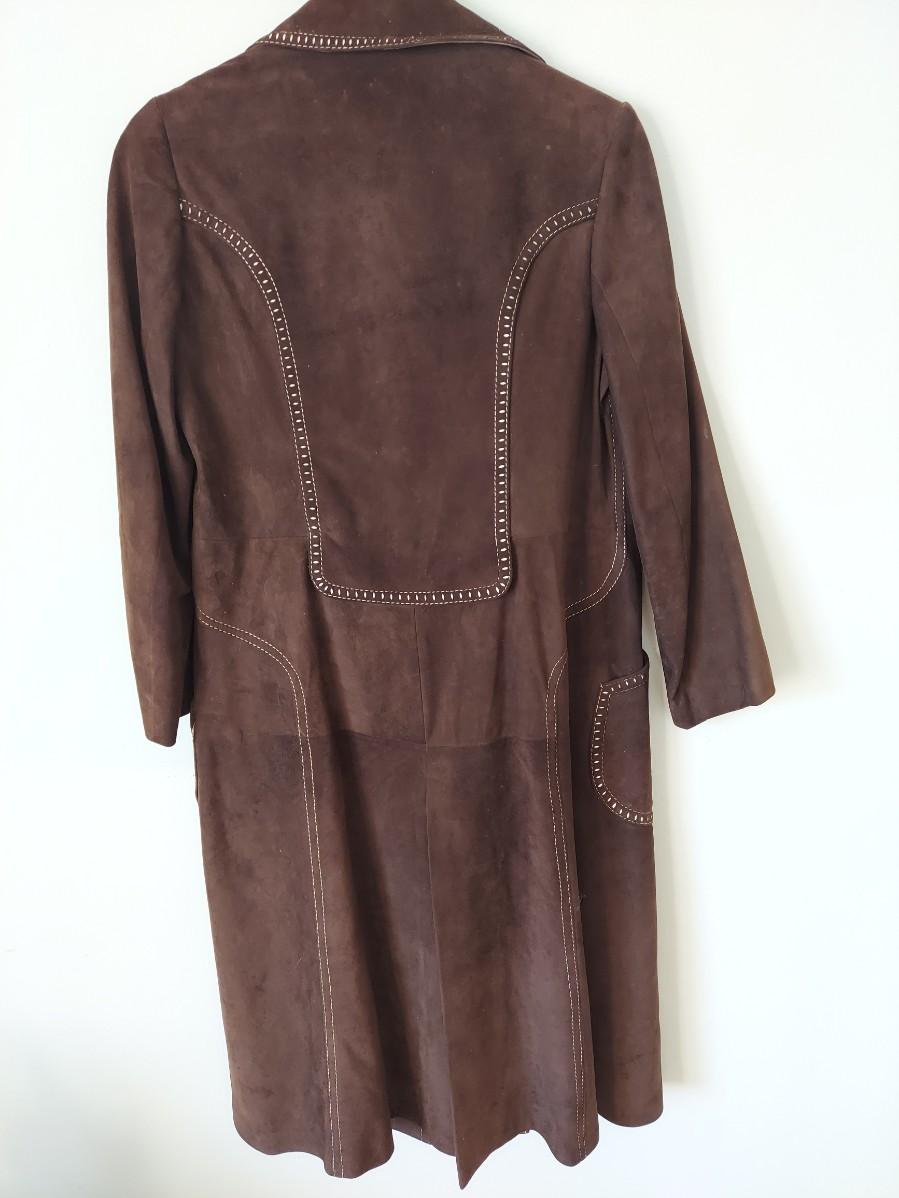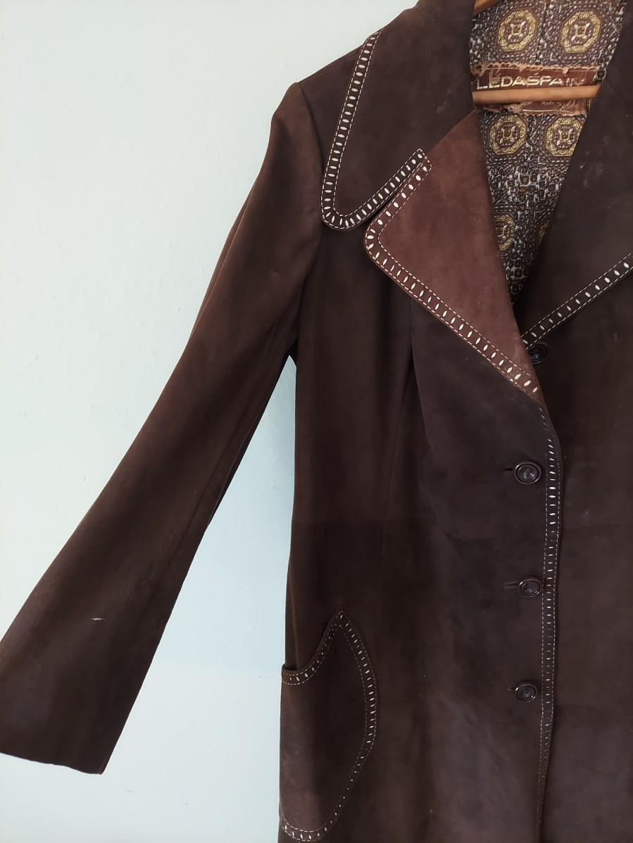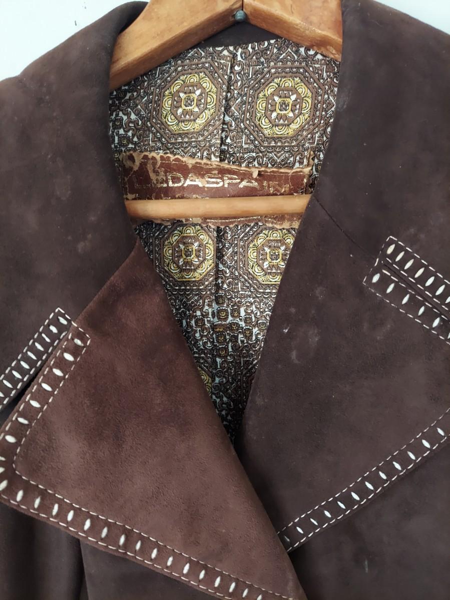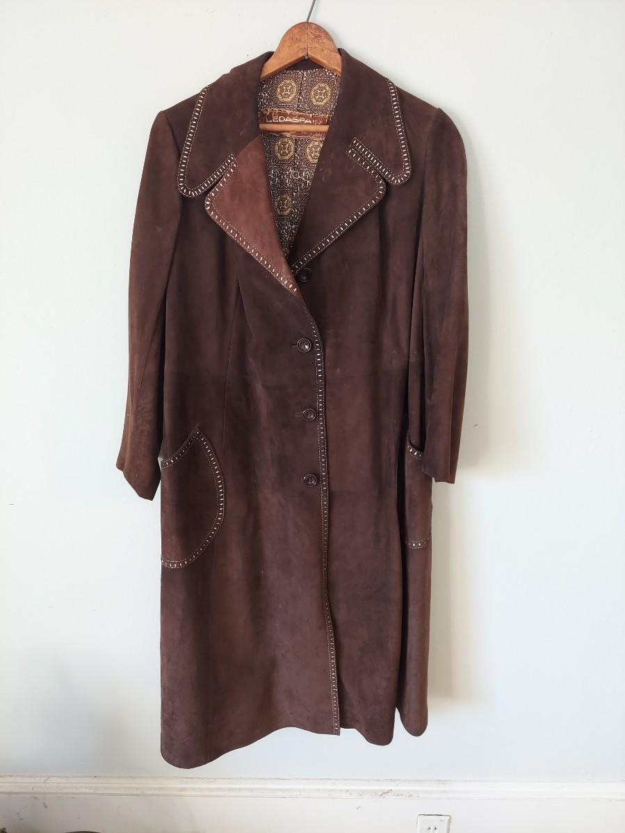 Soft suede jacket that appears to be from the 70s. Tag marked Leda Spain by Gropper. No size tag. Fits approximate small-medium. Also includes a vintage Sears Roebuck faux fur coat in a similar size. The suede coat has a small tear near a pocket. The faux fur has condition issues due to age including arm pit wear in the lining. Both could use a good cleaning. See photos for details. Shipping available