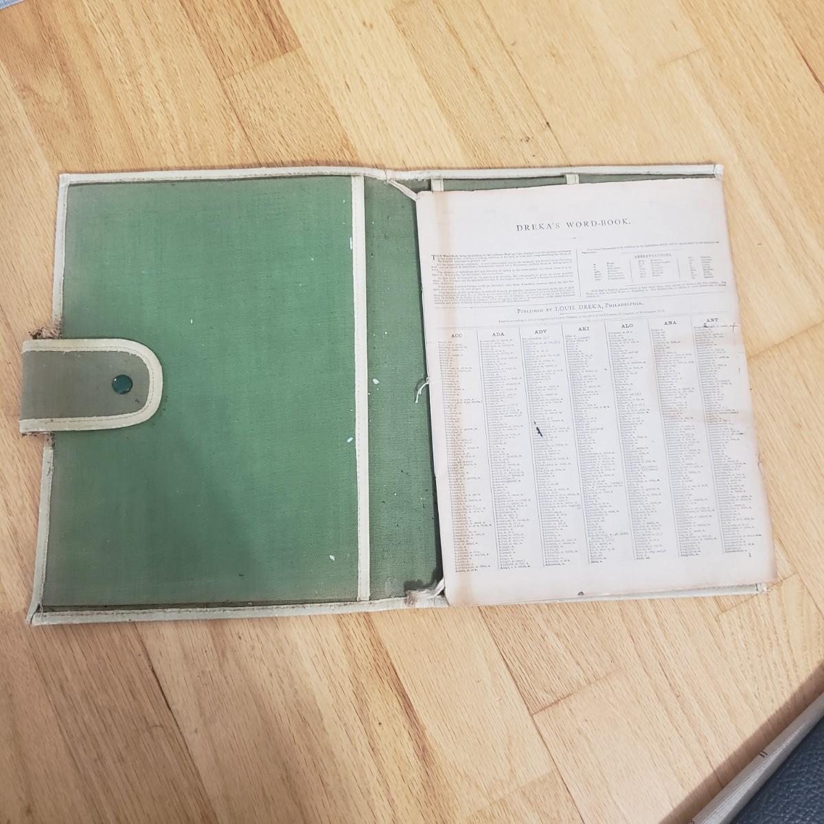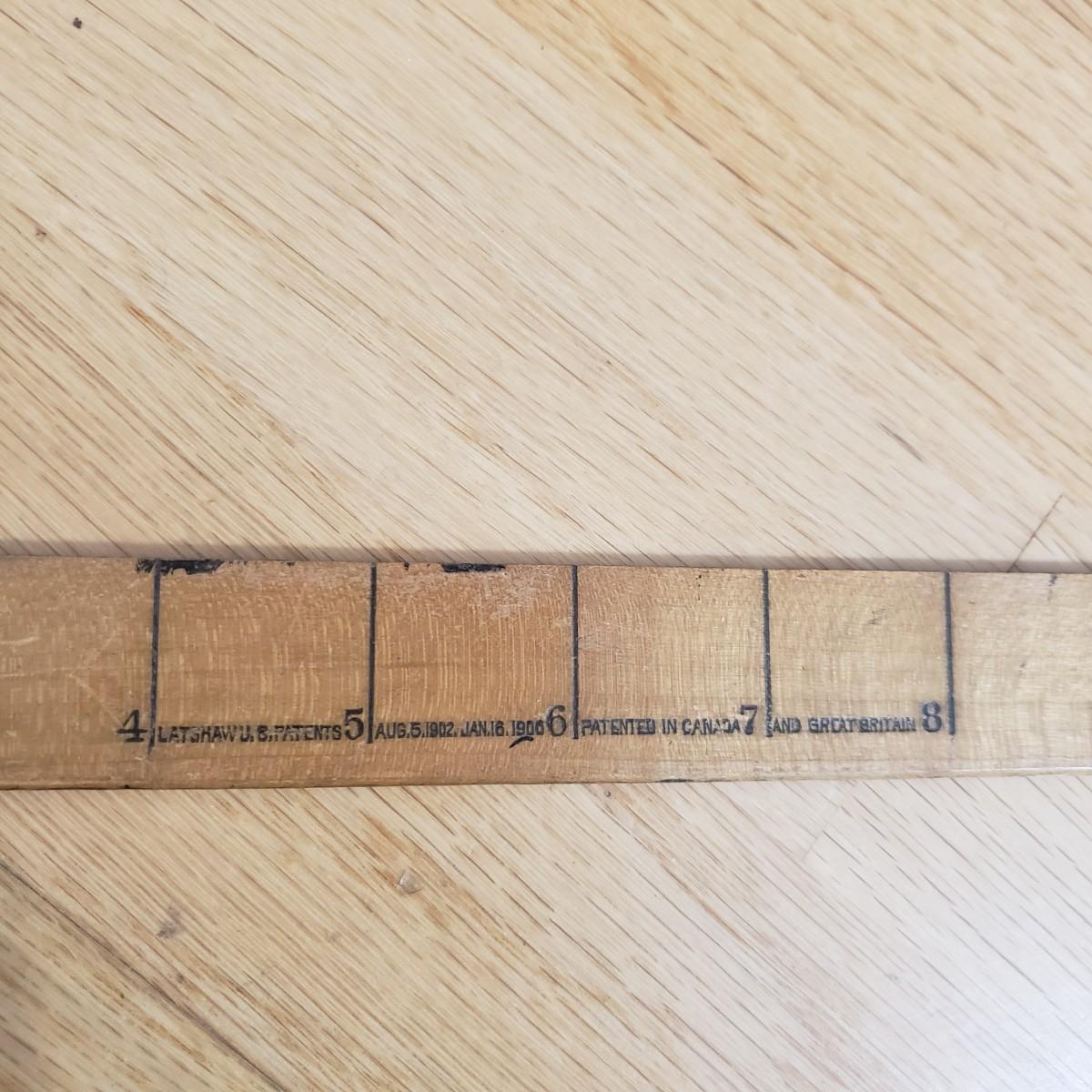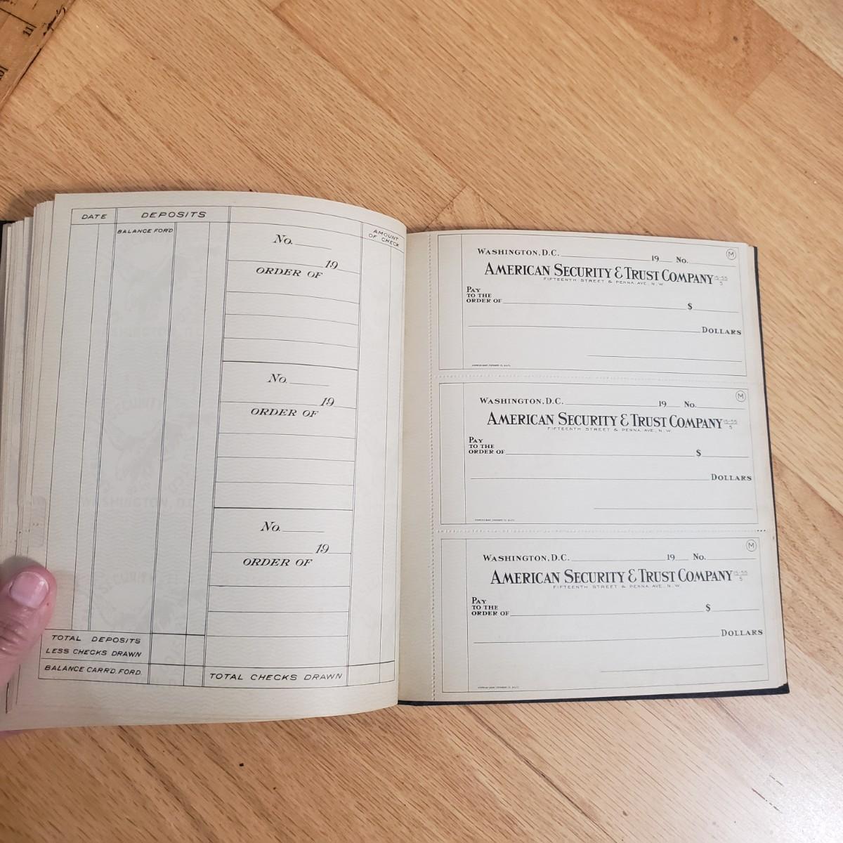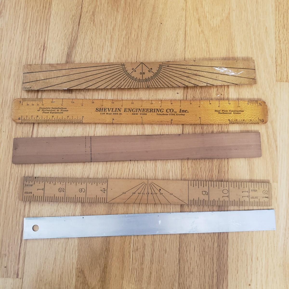This vintage lot has an American Security and Trust Company, Washington D.C Main Office checkbook. The dates are from the late 1930's. There are two lined notebooks; the grey larger one measures 12" x 8". There is a brass eraser and pencil sharpener, as well as various wood, metal and one plastic magnifying ruler. The standalone wooden ruler appears to be very old. There are patent dates on it from 1908, from Canada and Great Britain.