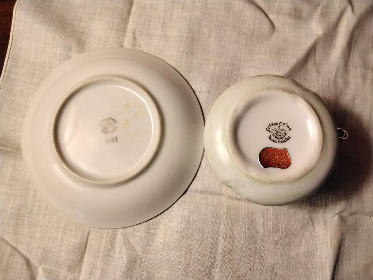Cup: Height: 2.75", Diameter: 2.75" Saucer: Diameter: 6" No cracks or chips or repairs of any kind. Tier 2.