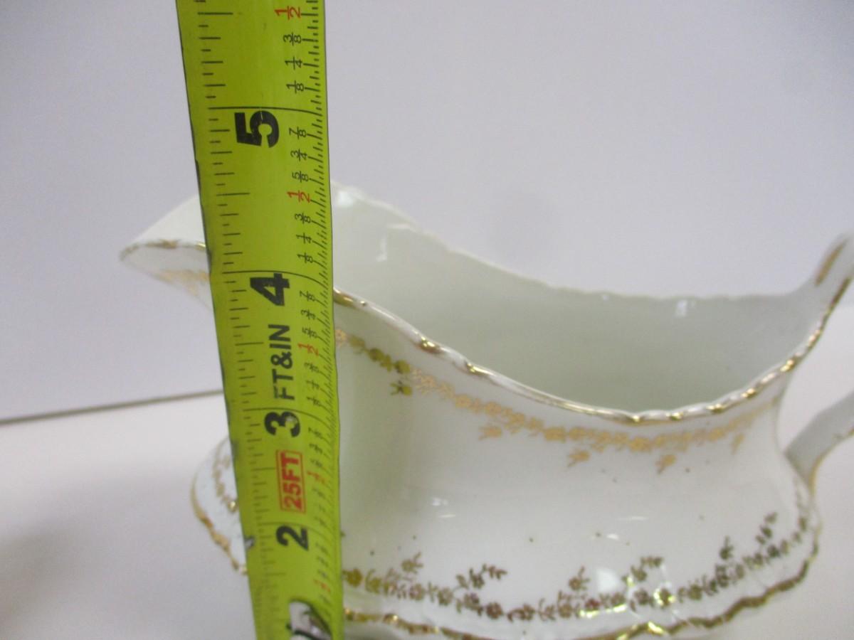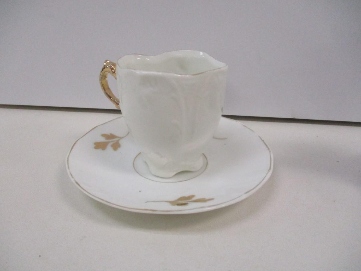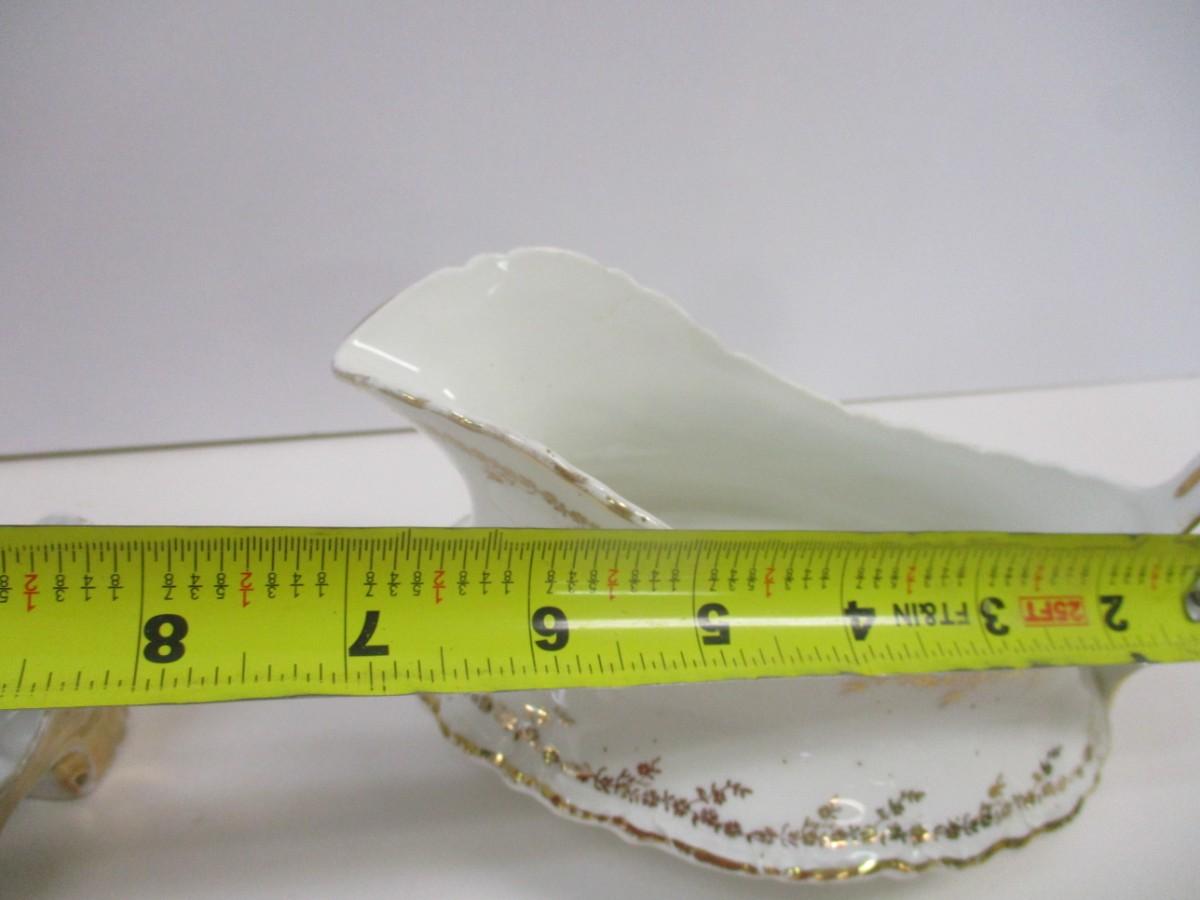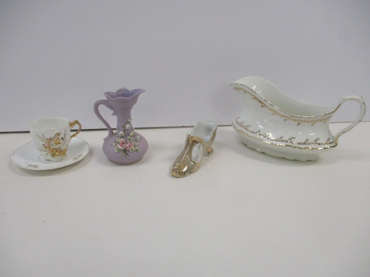 Vintage Lefton China Small Pitcher - Homer Laughlin Hudson Gravy Boat - White Gold Porcelain Victorian Shoe - White China Cup & Saucer Raised Gold Grapes