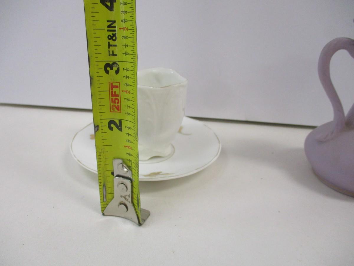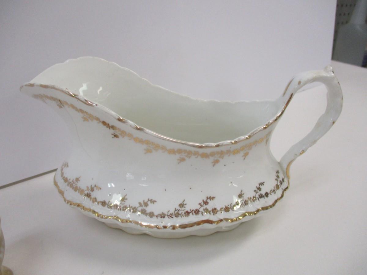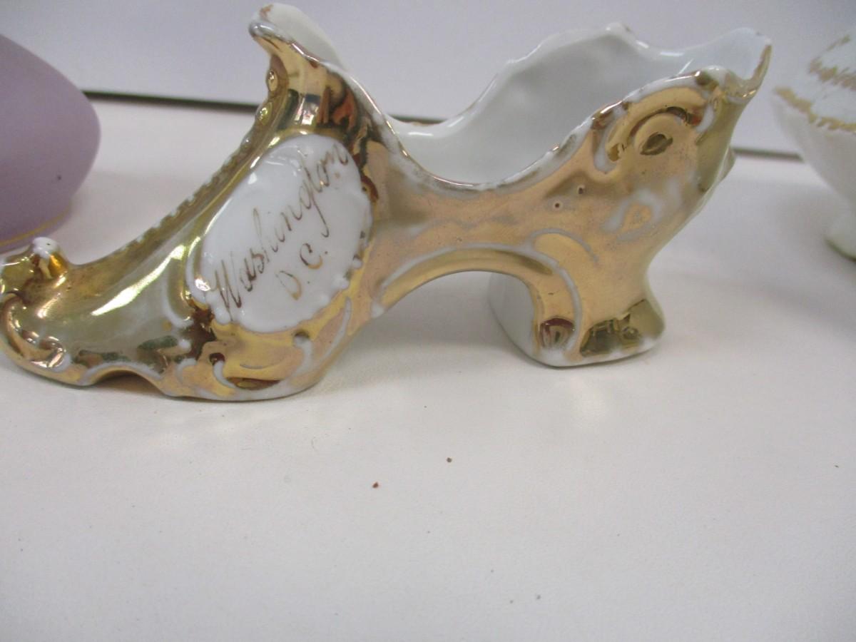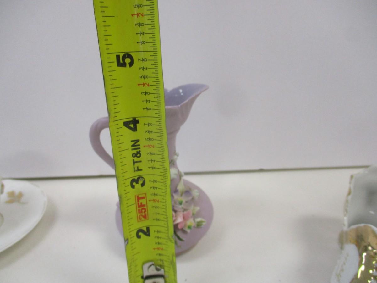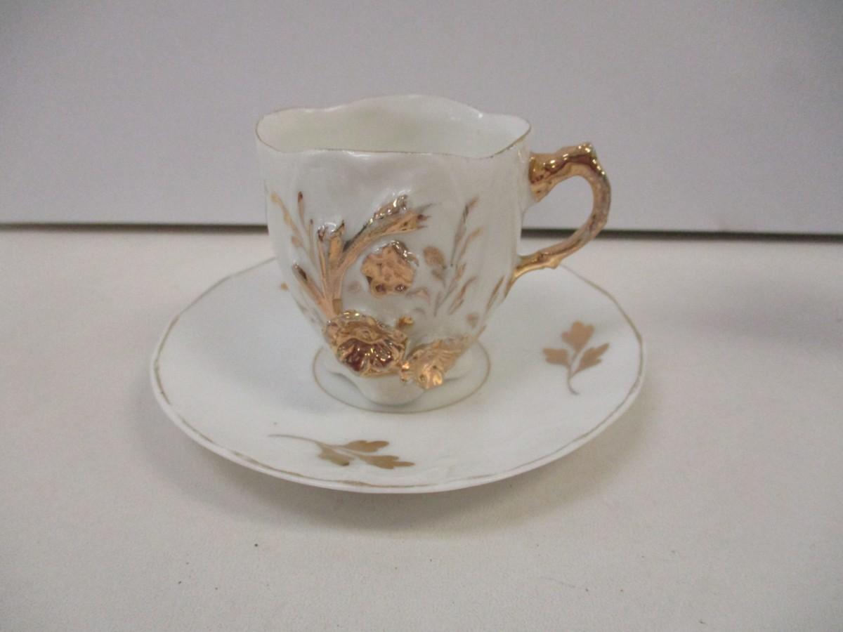 Vintage Lefton China Small Pitcher - Homer Laughlin Hudson Gravy Boat - White Gold Porcelain Victorian Shoe - White China Cup & Saucer Raised Gold Grapes