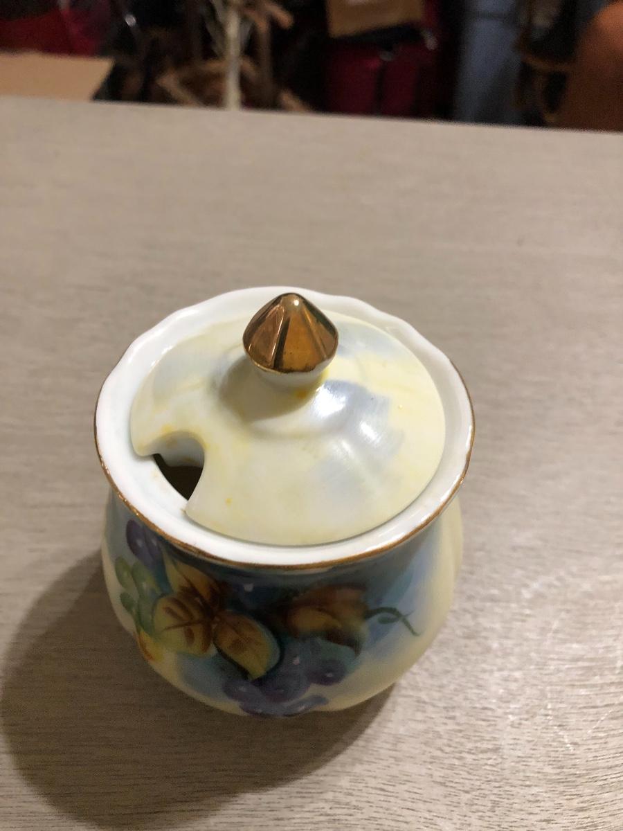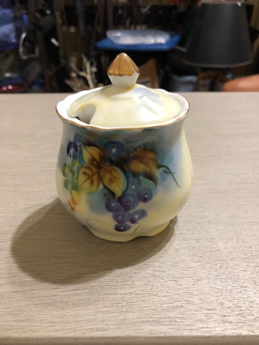 Vintage Lefton China Fruit Motif Covered Porcelain Sugar Bowl No spoon