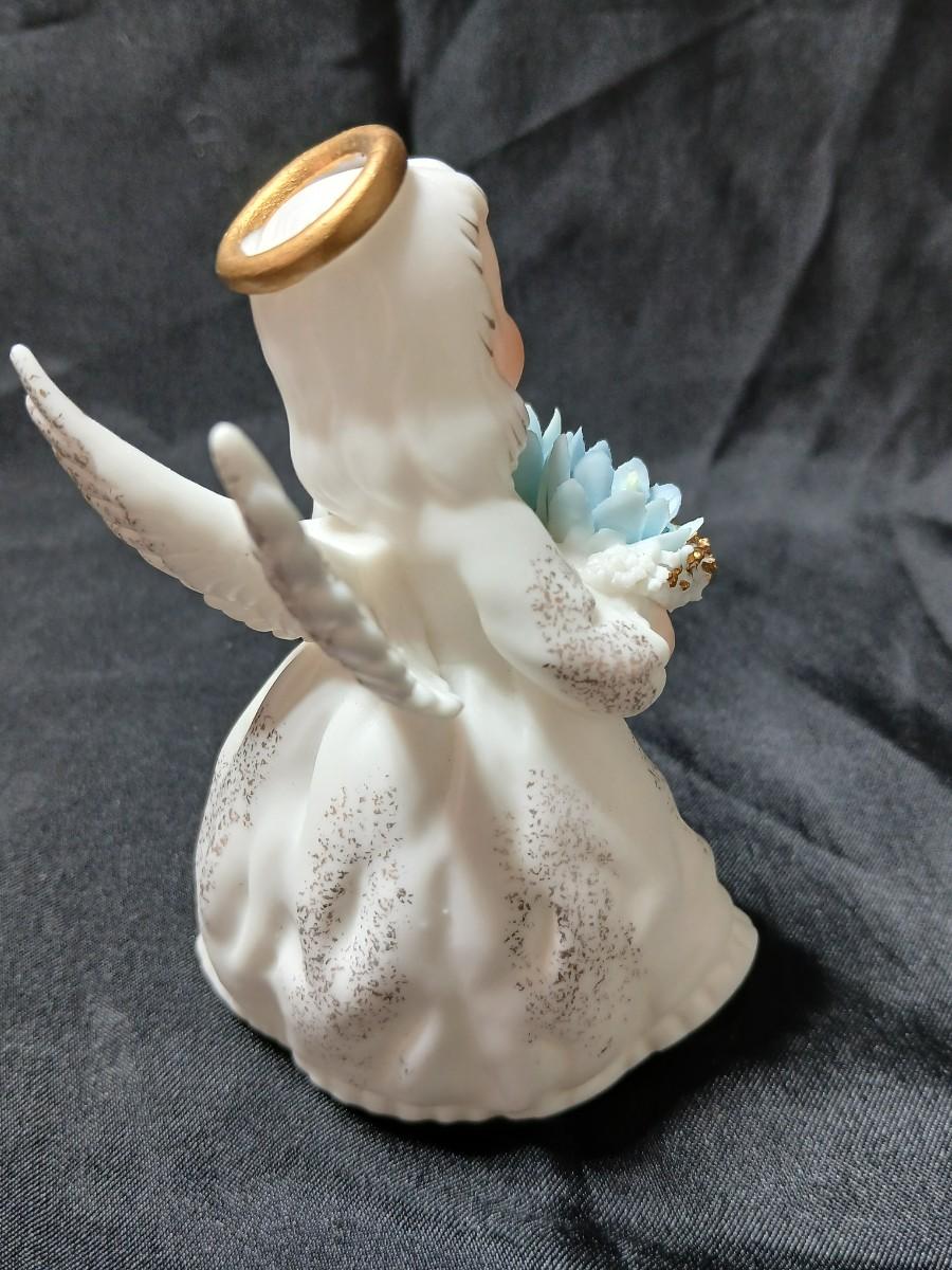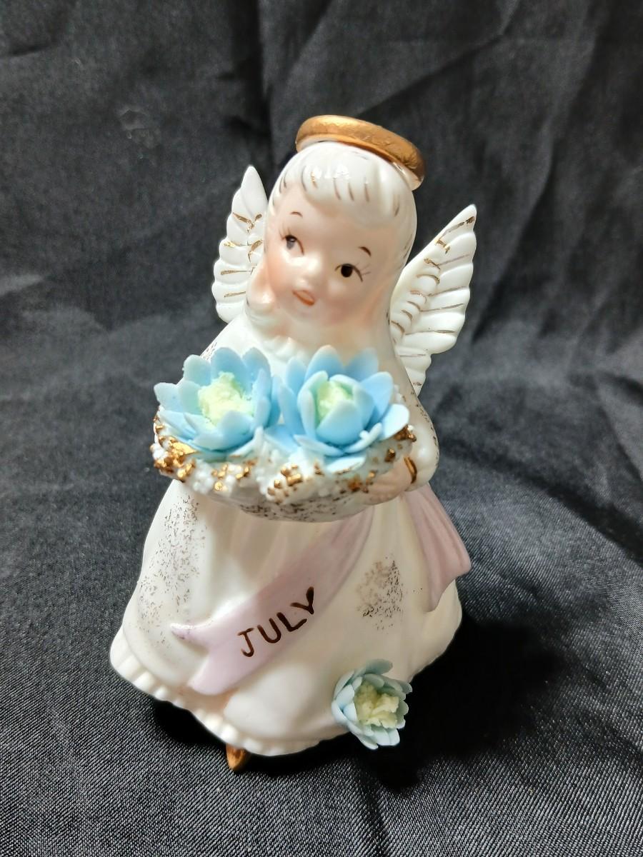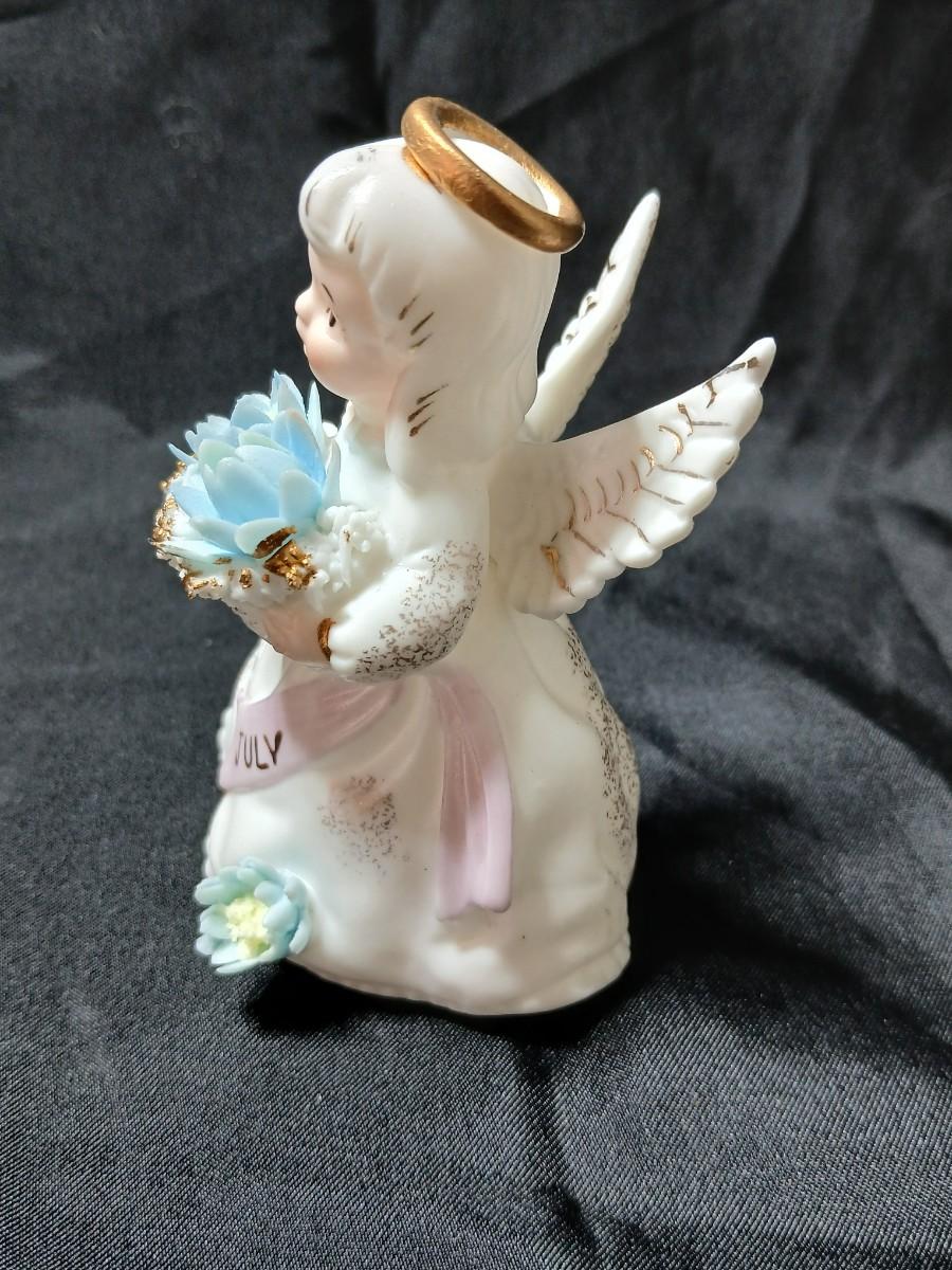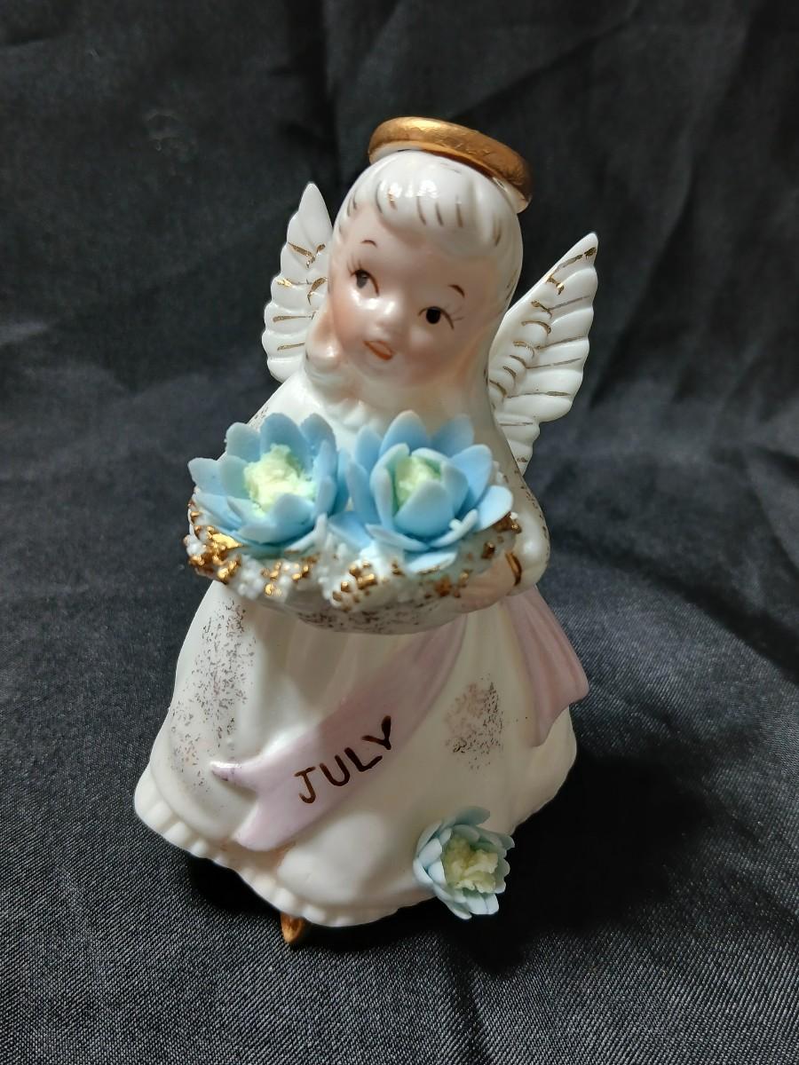 vintage Lefton July Birthday Angel figurine, holding blue flowers Lefton's 3332
