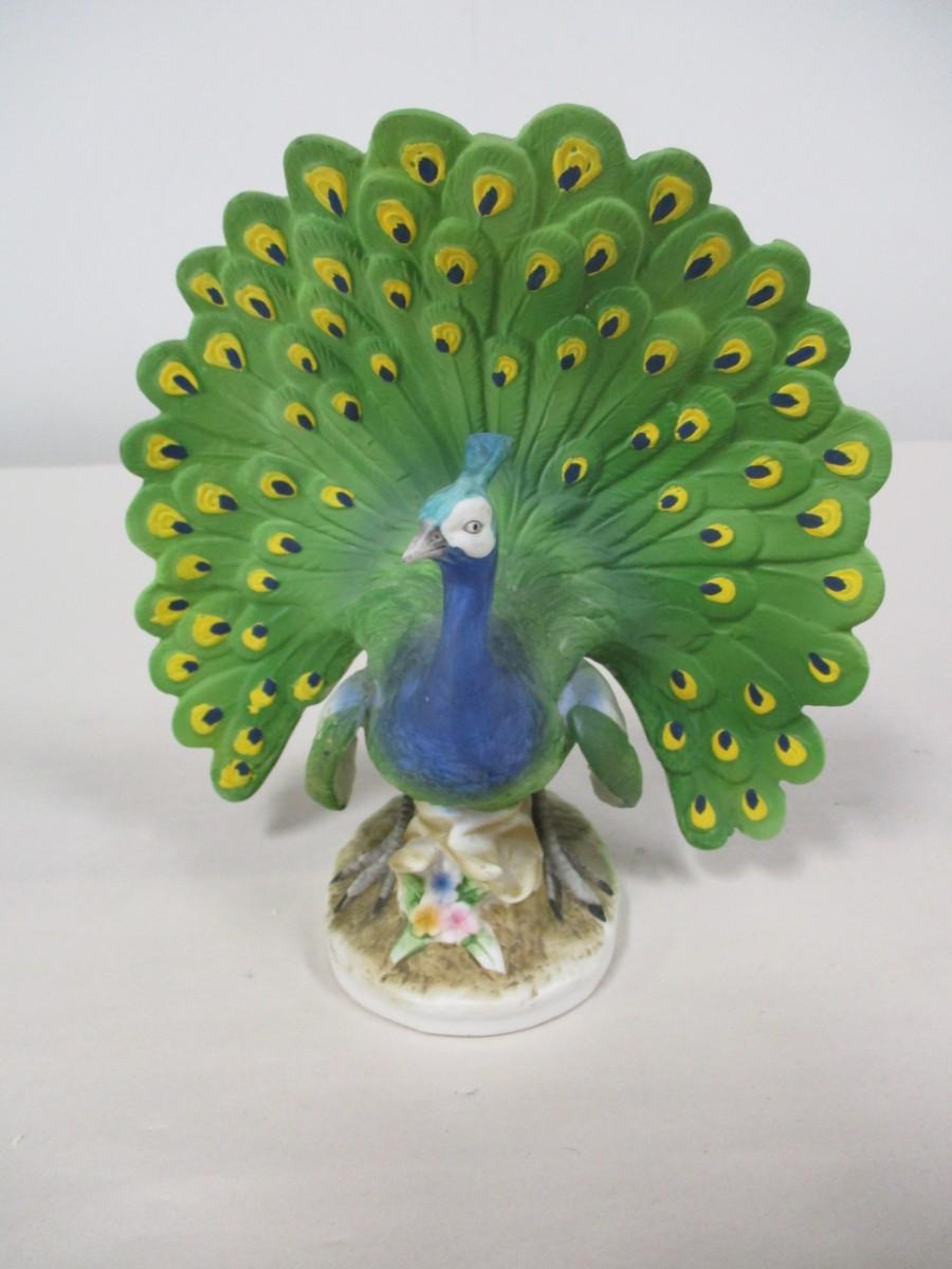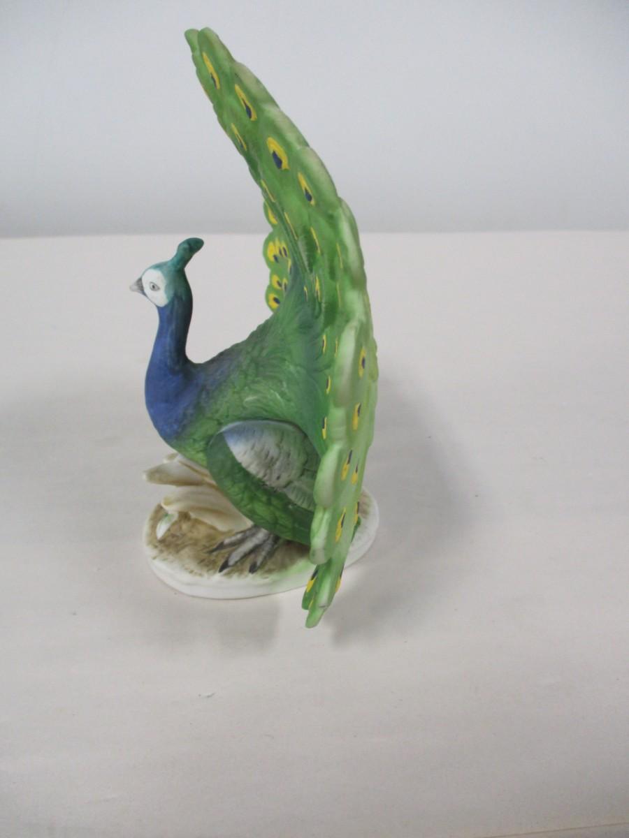 Vintage Lefton Peacock Ceramic Figurine Hand Painted 6”