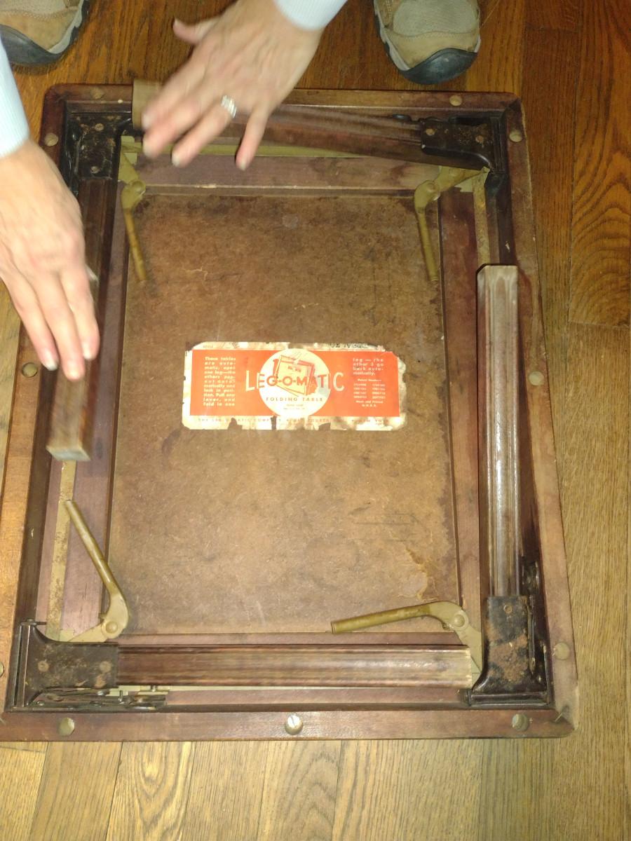 Vintage LegoMatic Wood Frame Folding Table- Approx 20" x 18" x 16" Tall. Finish has wear- please see all pictures.