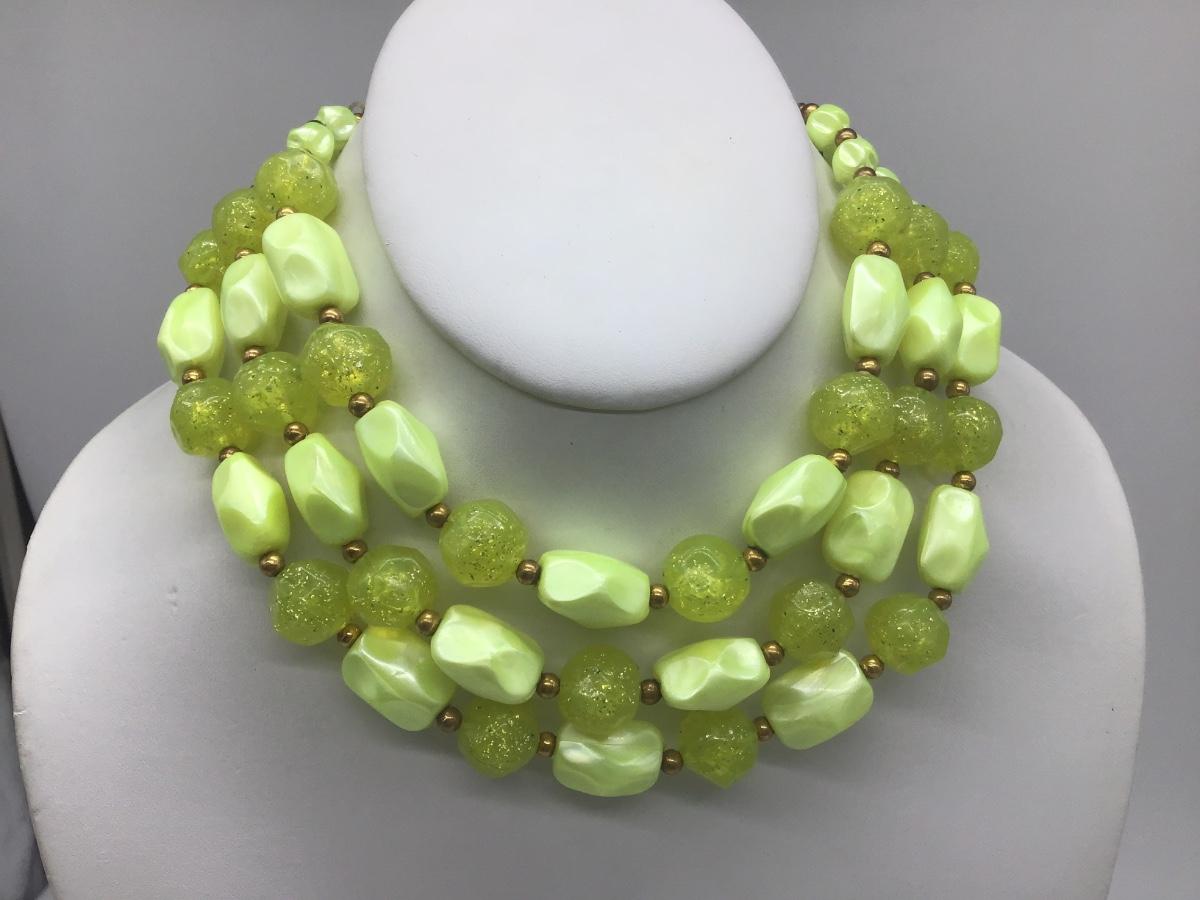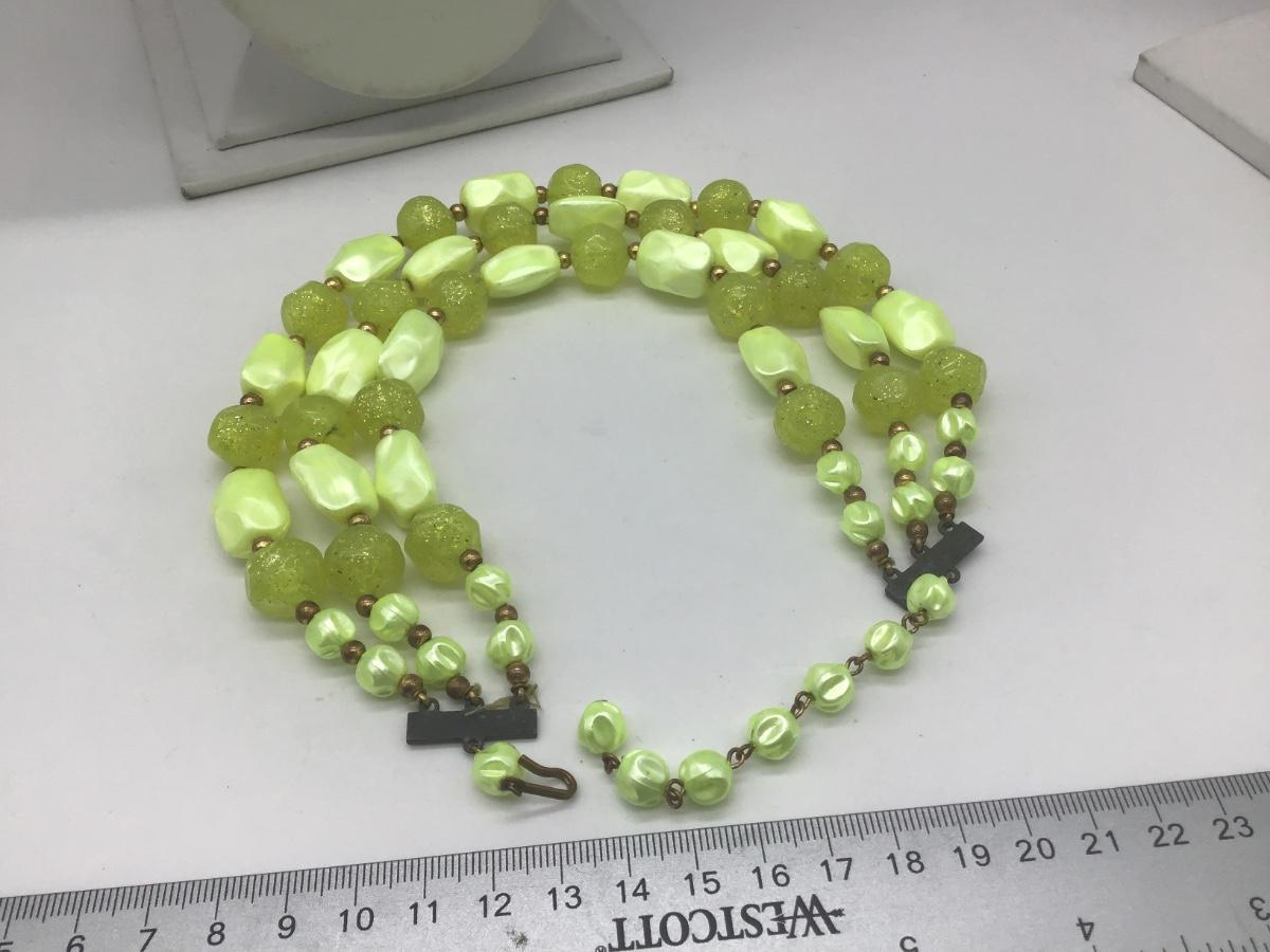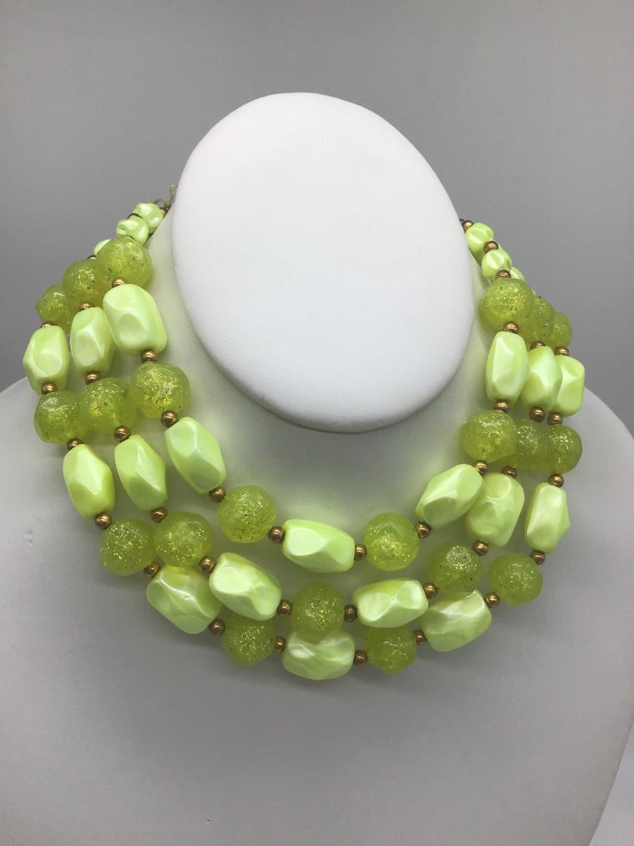 Vintage lemon yellow Lucite Type with glitter beaded necklace