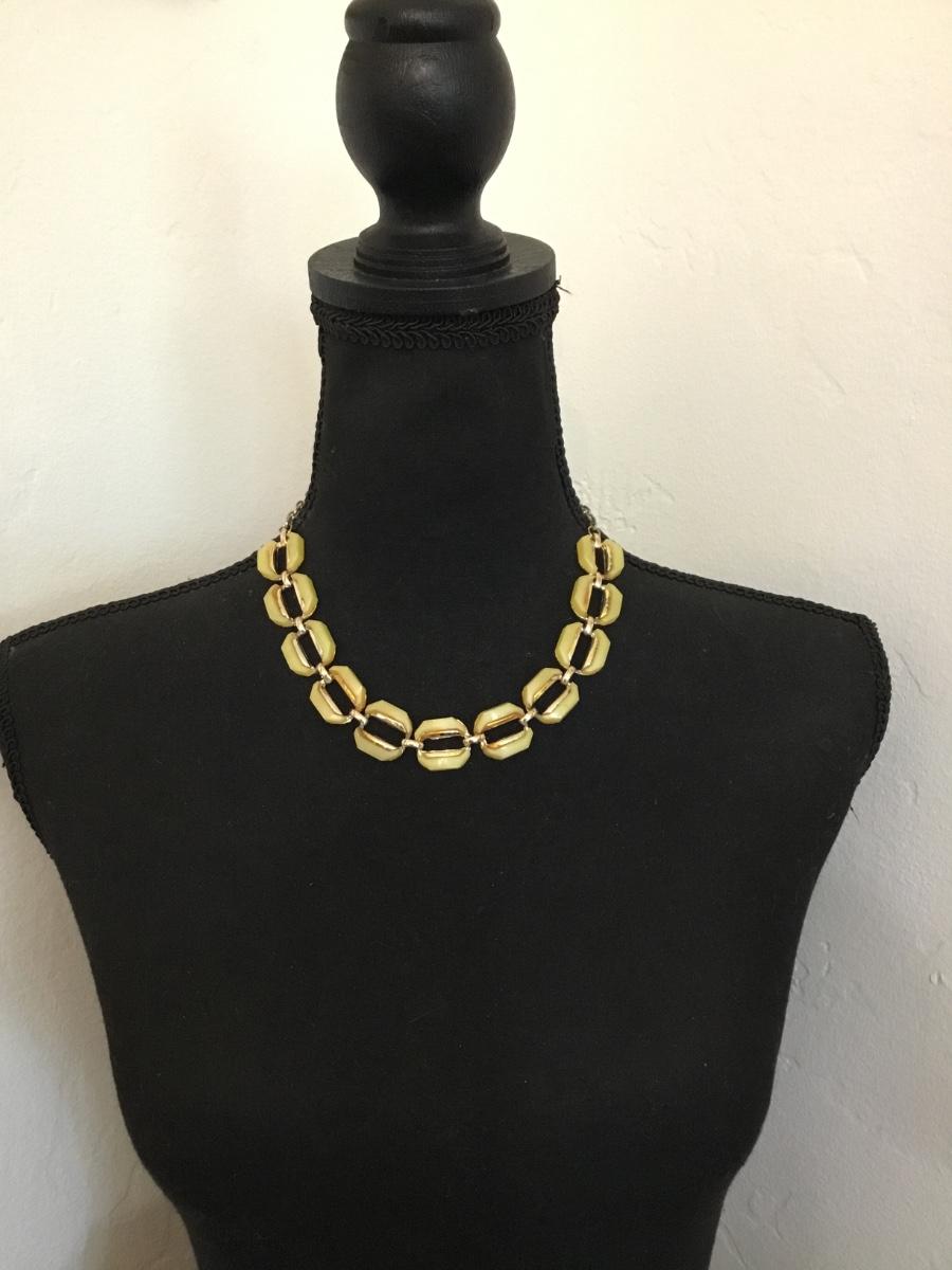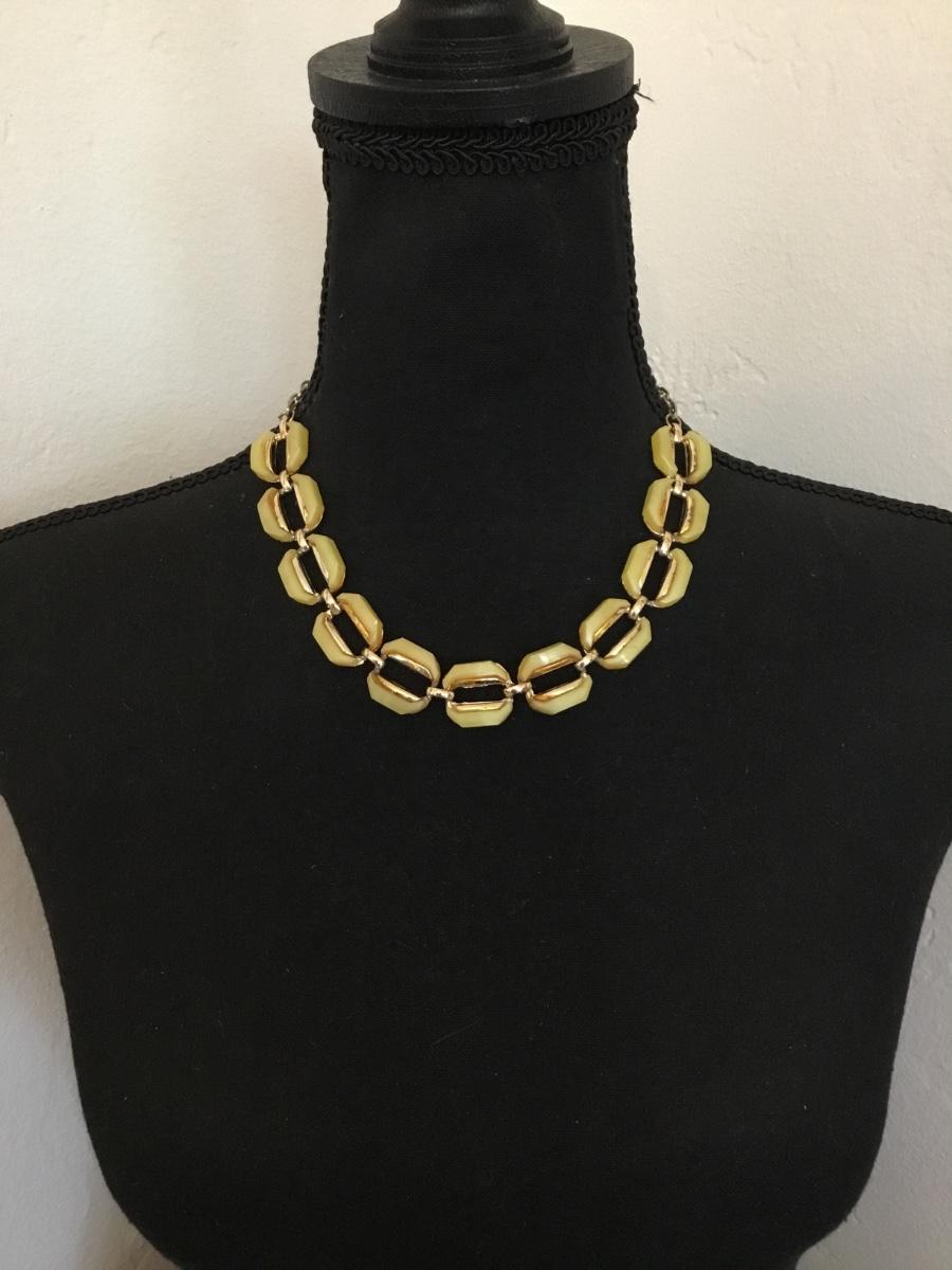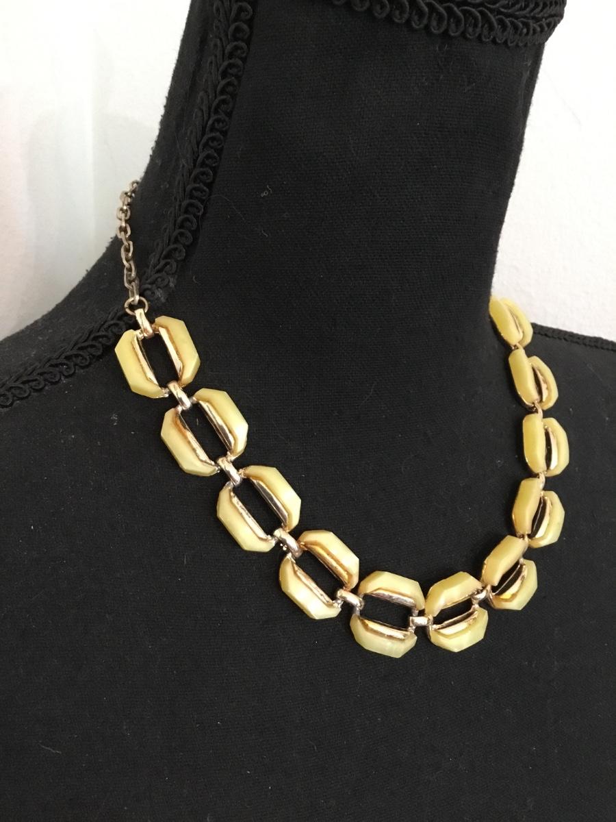 Vintage, lemon, yellow thermal set and silver toned necklace
